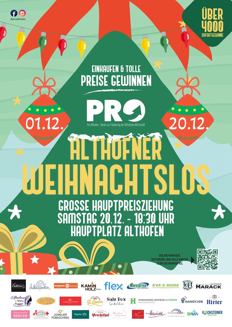 05.12.: Um 16:30 Uhr kommt der Nikolaus auf einem Schlitten, gezogen von den Althofner Altstadtteufeln und begleitet von Engelchen. Der Nikolaus bringt jedem Kind ein Nikolaussackerl. Danach Livemusik mit der Unplugged-Band plus|minus [+/-].