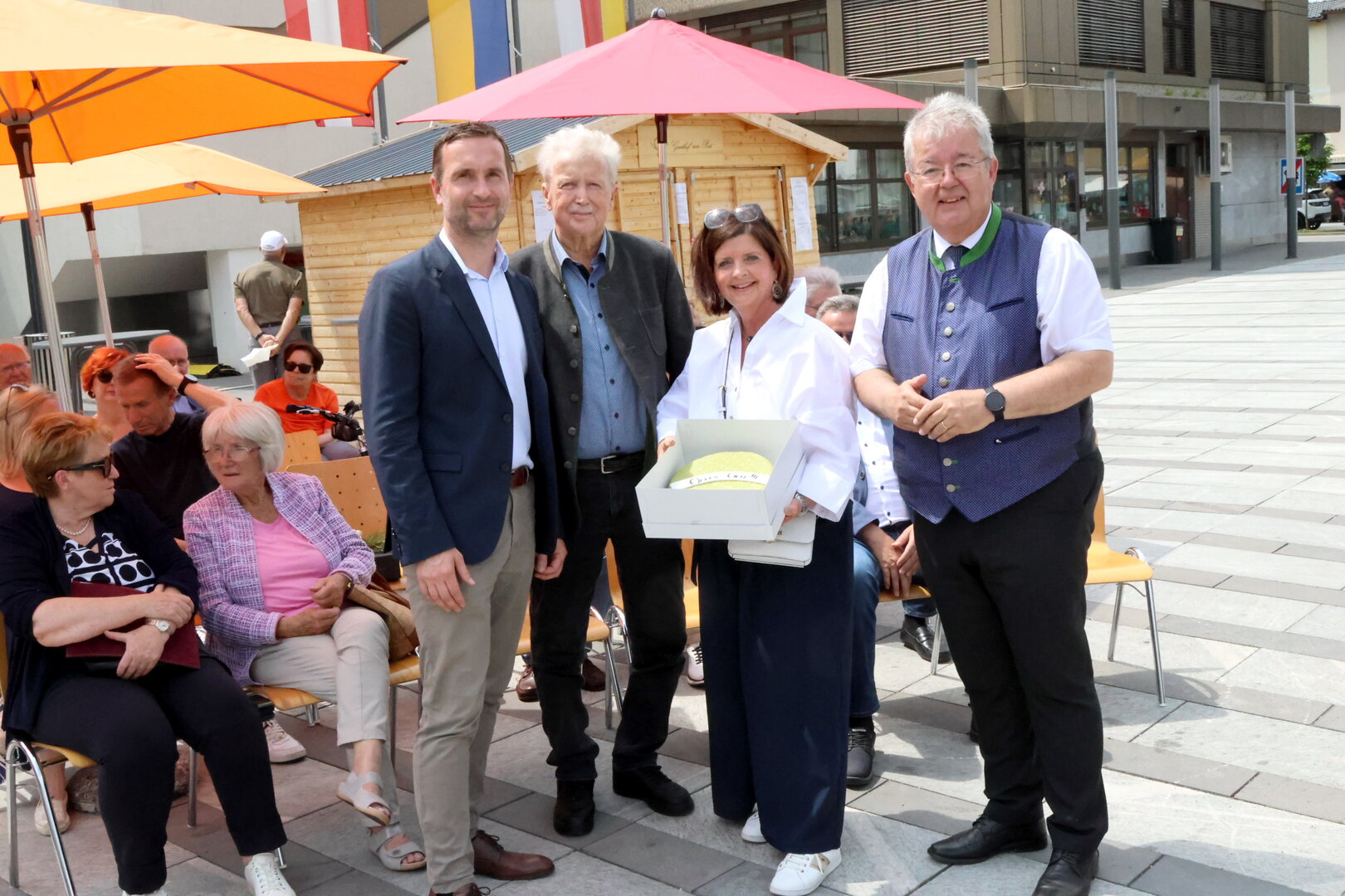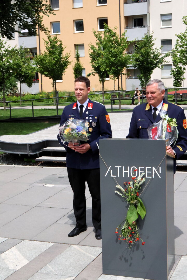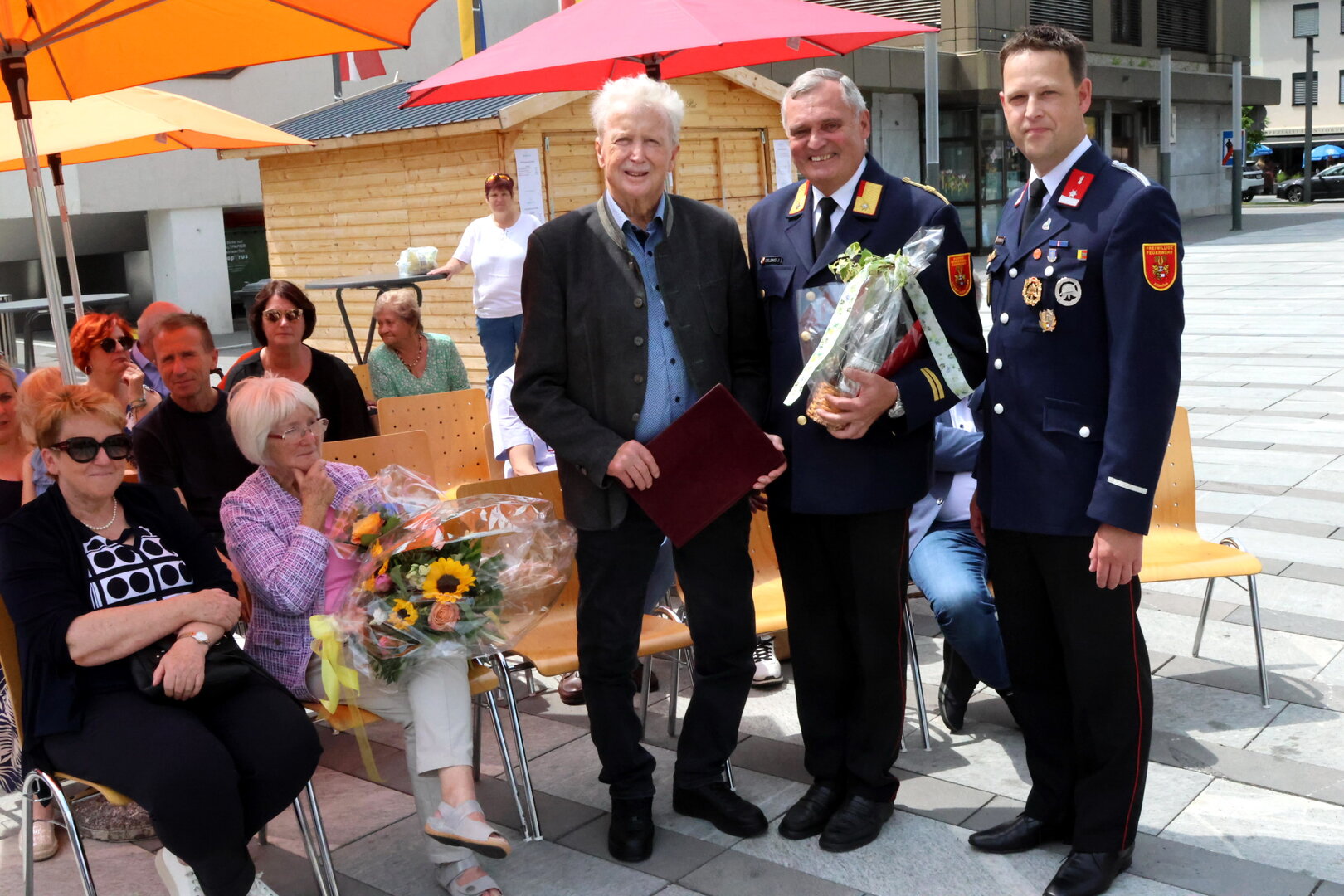 Bürgermeister Walter Zemrosser würdigte in einer Ansprache das Geburtstagskind und gratulierte ihm im Namen des gesamten Gemeinderats sowie der Mitarbeiterinnen und Mitarbeiter des Rathauses. Auch Feuerwehrkommandant Johann Delsnig und Kameradschaftsführer Willi Mitterdorfer ließen es sich nicht nehmen, dem langjährigen Unterstützer der Feuerwehr persönlich zu gratulieren. Von der von Manfred Mitterdorfer gegründeten Gemeinderatsfraktion „Liste für Alle“ gab es eine „Althofen-Torte“, überreicht von den Vizebürgermeistern Doris Hofstätter und Michael Baumgartner. Im Anschluss wurde mit einem Gläschen Sekt angestoßen – auf einen Jubilar, der das öffentliche Leben in Althofen über Jahrzehnte maßgeblich geprägt hat.