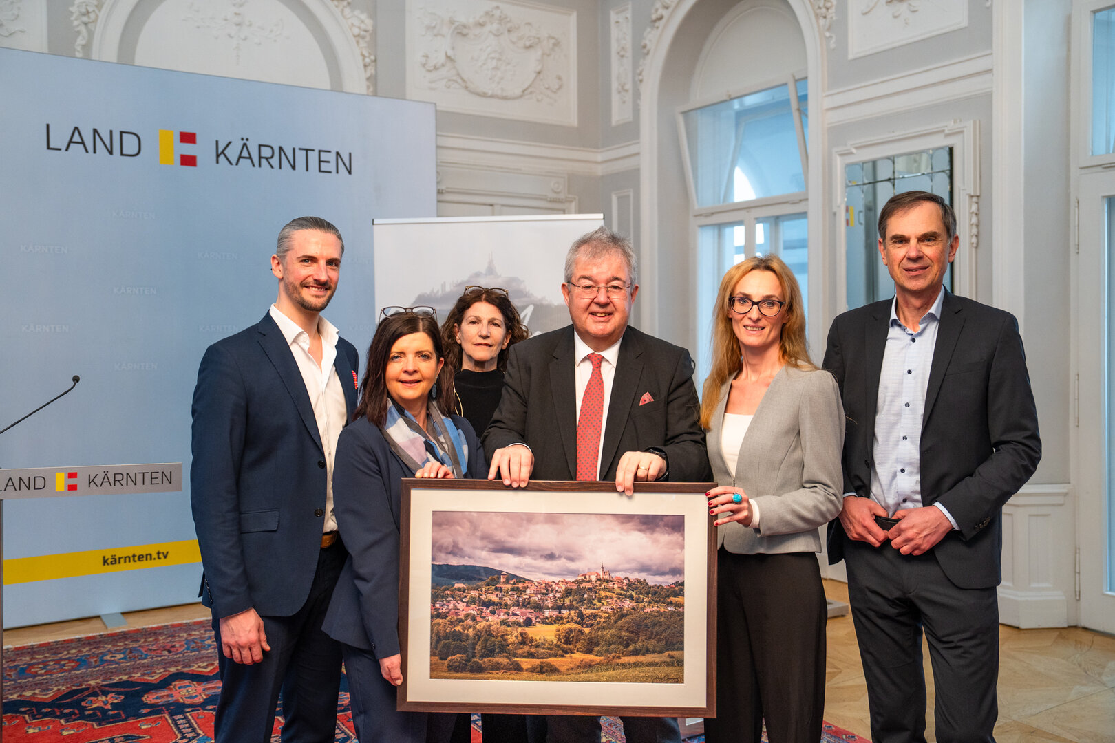 Im Anschluss übergaben Johannes Fleischmann und die organisatorische Leiterin der Althofener Meisterklassen, Gabriele Fenkart, an Bürgermeister Walter Zemrosser, Vize-Bürgermeisterin Doris Hofstätter, Stadtamtsleiter Hubert Madrian und Bettina Knafl-Jannach, Öffentlichkeitsarbeit, ein fantastisches Althofen-Foto, aufgenommen von Maria Wawrzyniak (marygoodfoto), als Dankeschön für die Unterstützung seitens der Stadtgemeinde Althofen.
