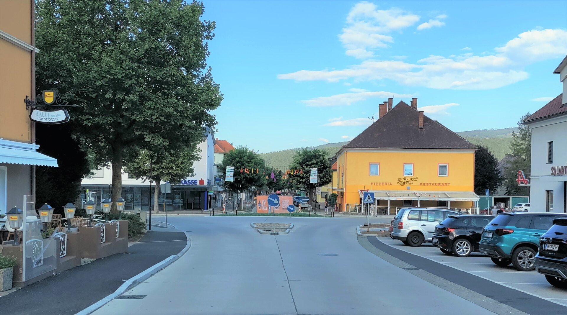 Beim Kreisverkehr sowie der Neugestaltung des Hauptplatzes wird aktuell fleißig gearbeitet.