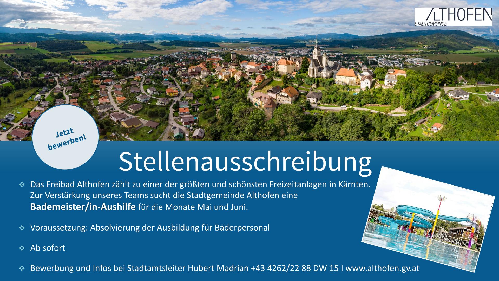 Die Stadtgemeinde Althofen sucht Verstärkung im Freibad Althofen.
