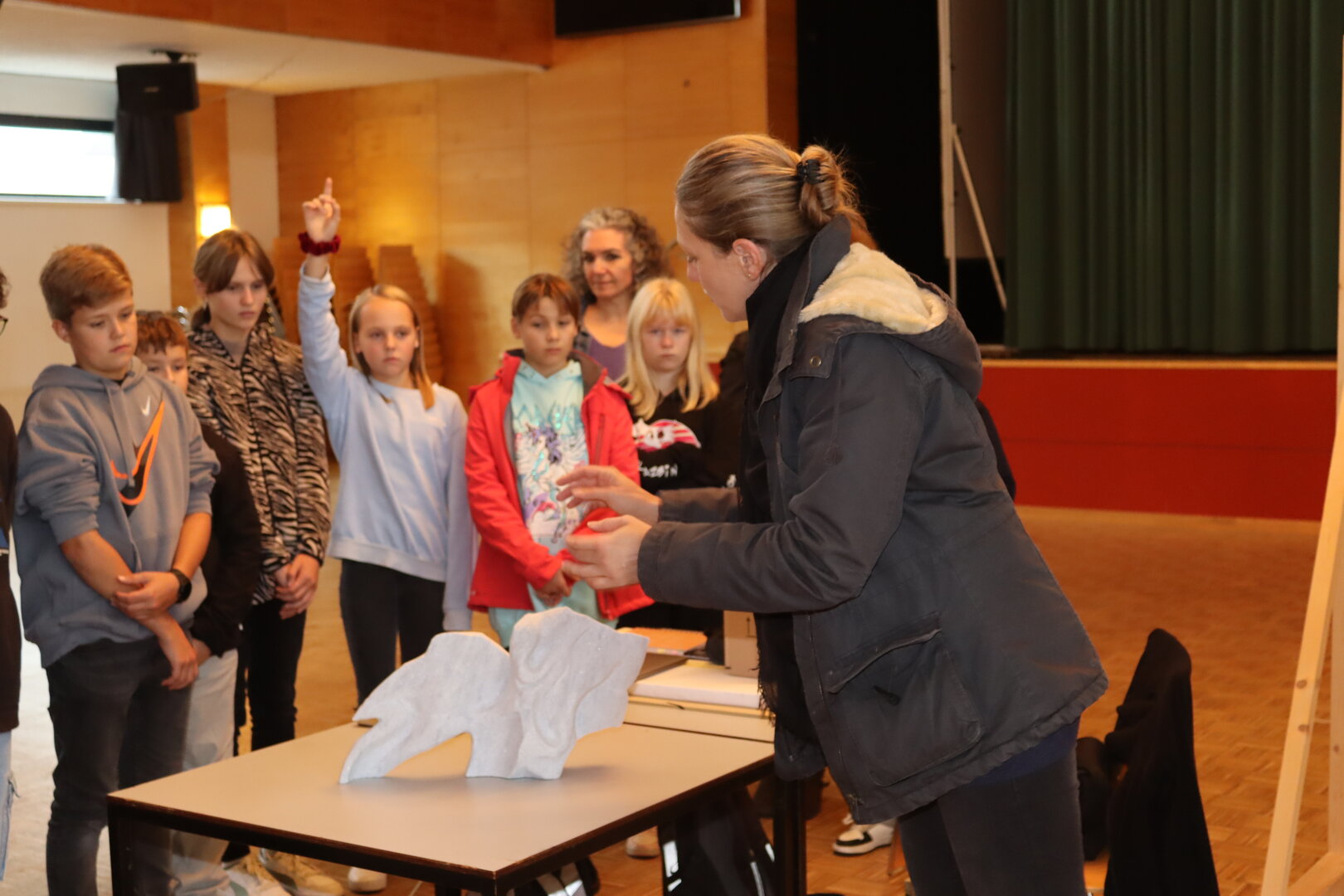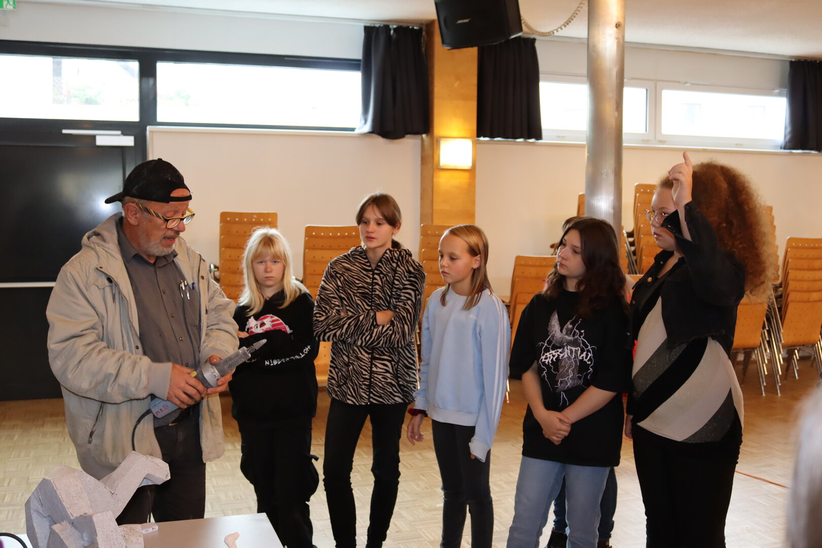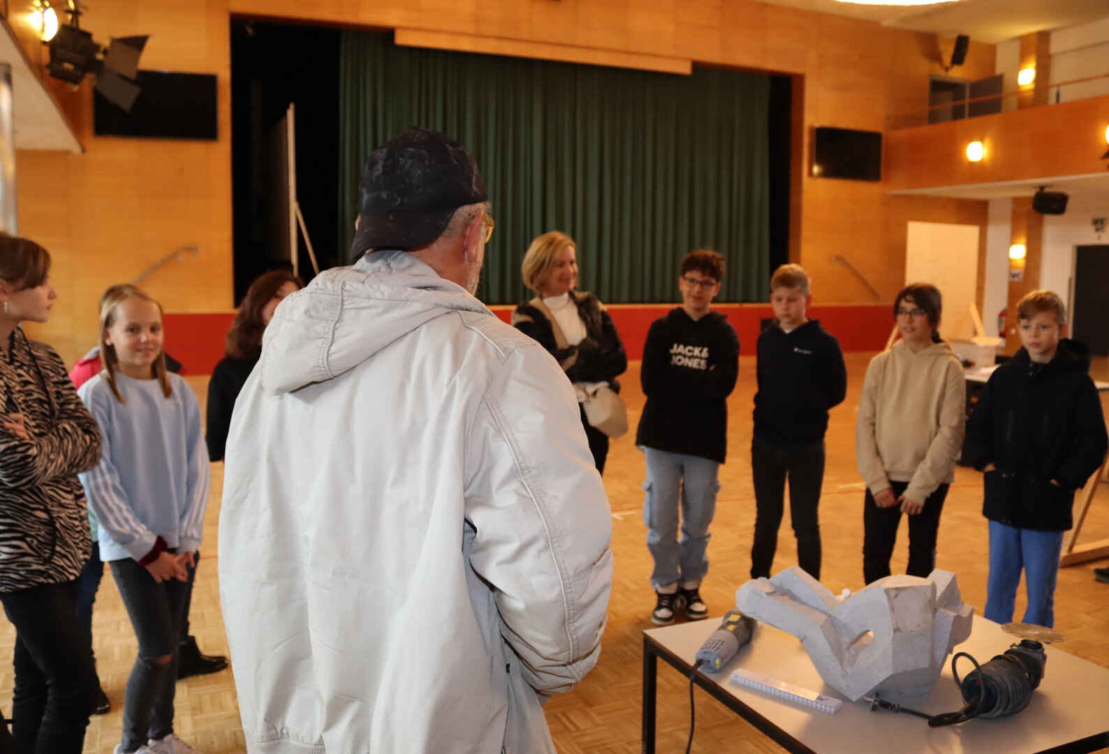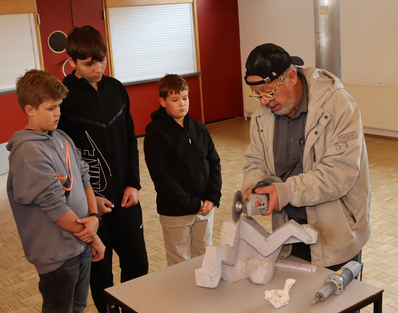 Auch Klassen der Mittelschule Althofen besuchten die Bildhauer. Dort erfuhren sie beispielsweise, wie man Konzepte für ein Kunstwerk erstellt, das richtige Material auswählt und vieles mehr. Außerdem hatten die Jugendlichen jede Menge Fragen an die vier Künstler.