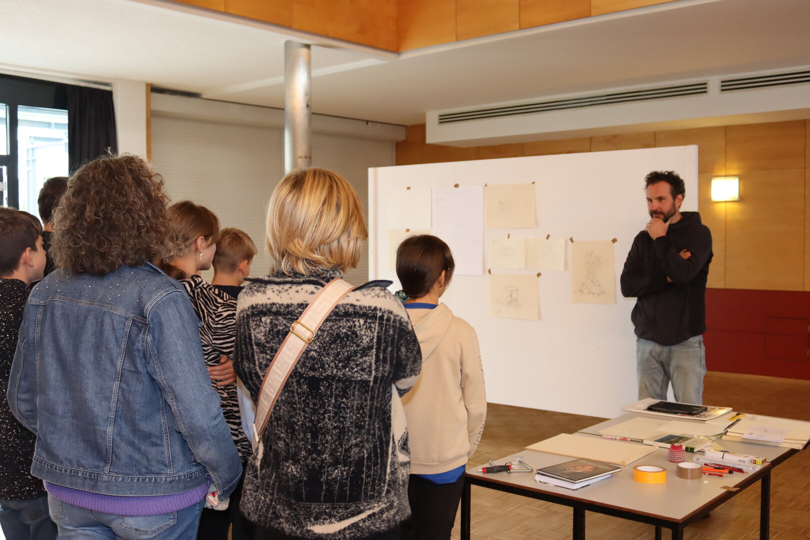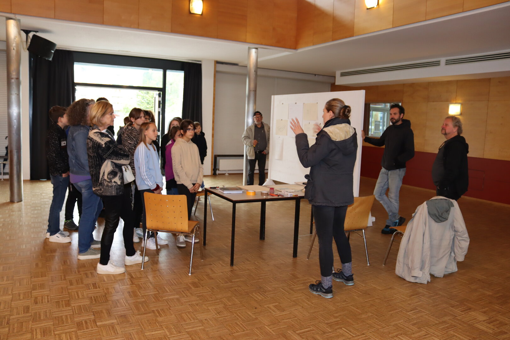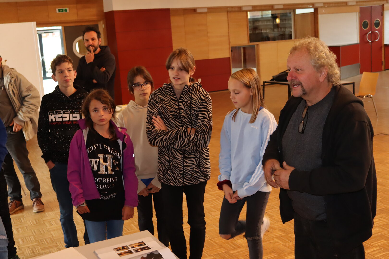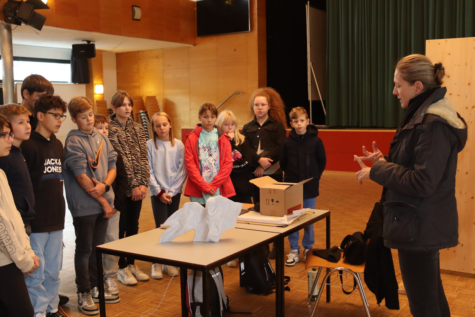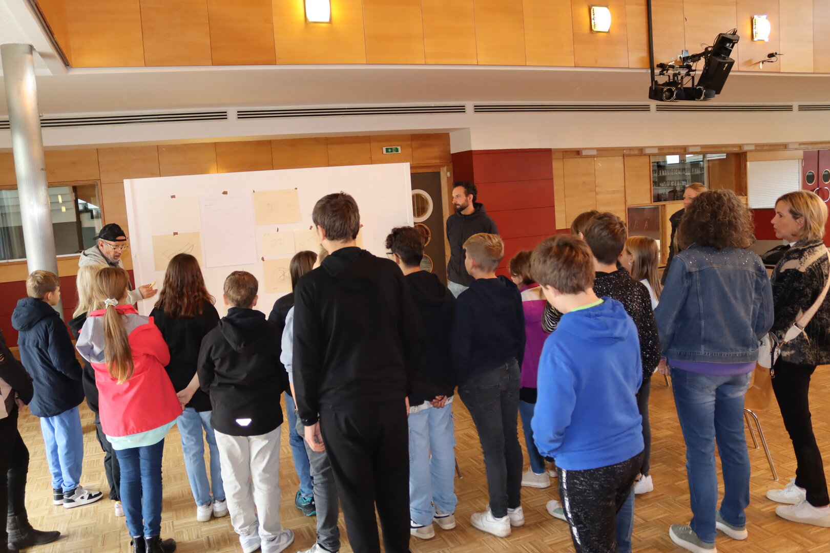 Auch Klassen der Mittelschule Althofen besuchten die Bildhauer. Dort erfuhren sie beispielsweise, wie man Konzepte für ein Kunstwerk erstellt, das richtige Material auswählt und vieles mehr. Außerdem hatten die Jugendlichen jede Menge Fragen an die vier Künstler.