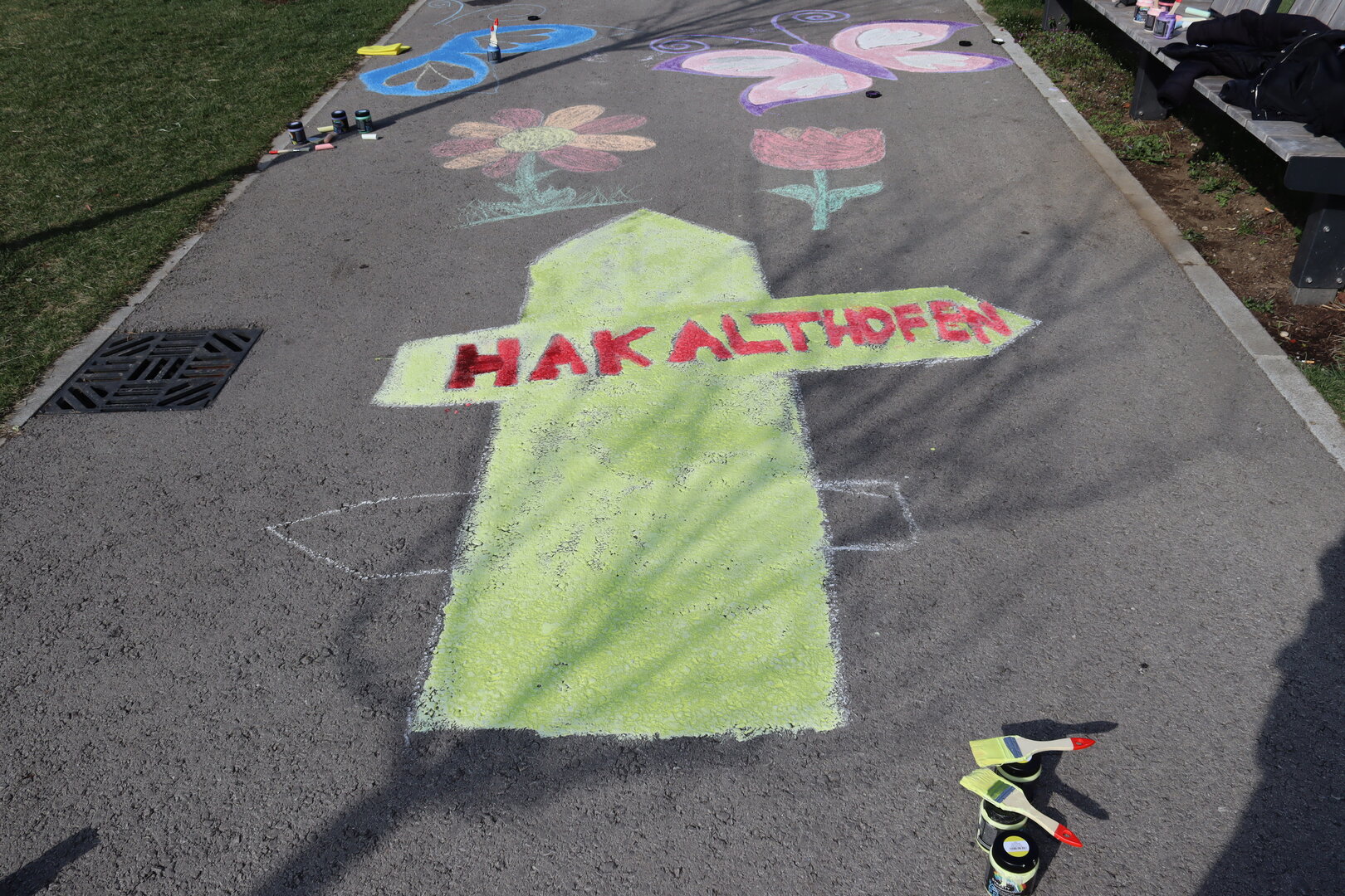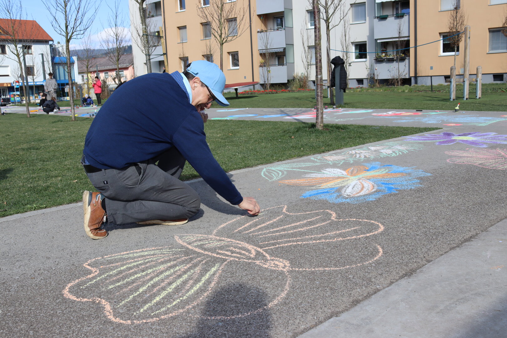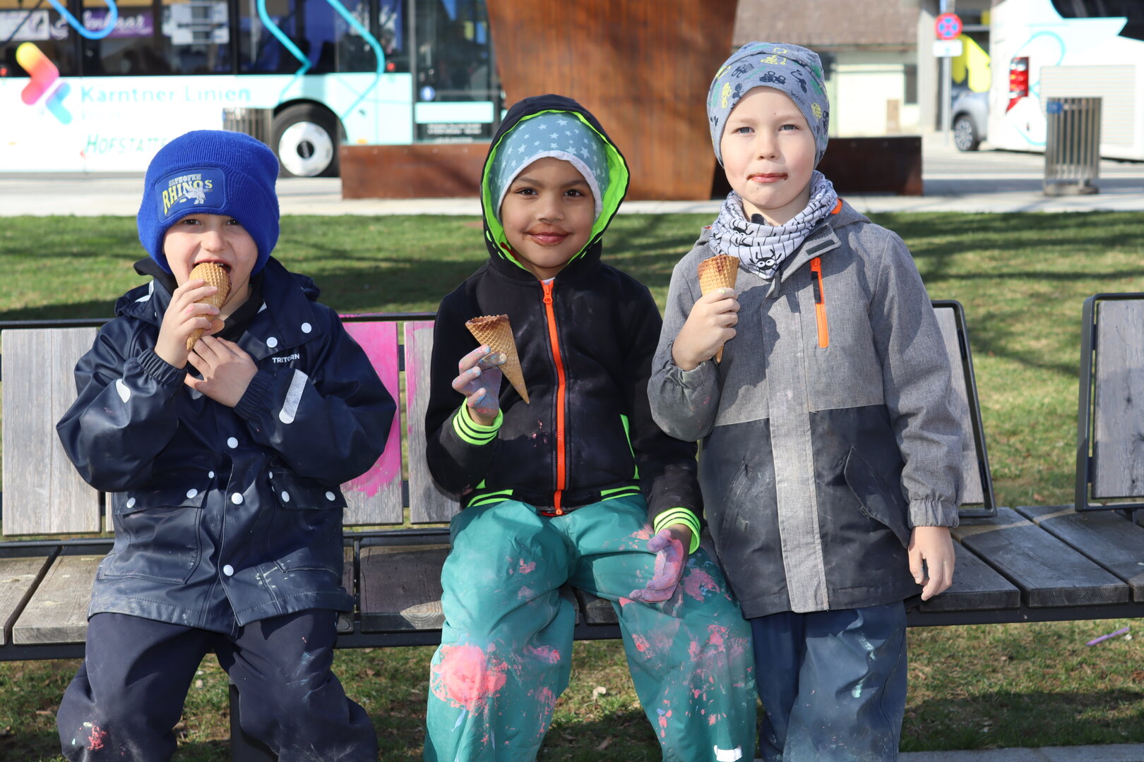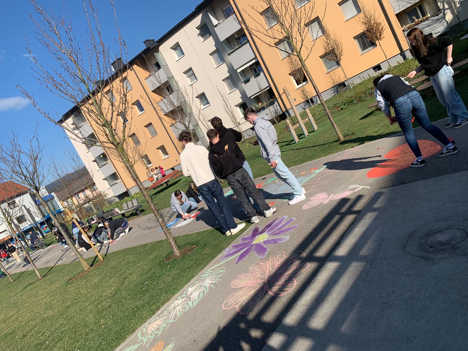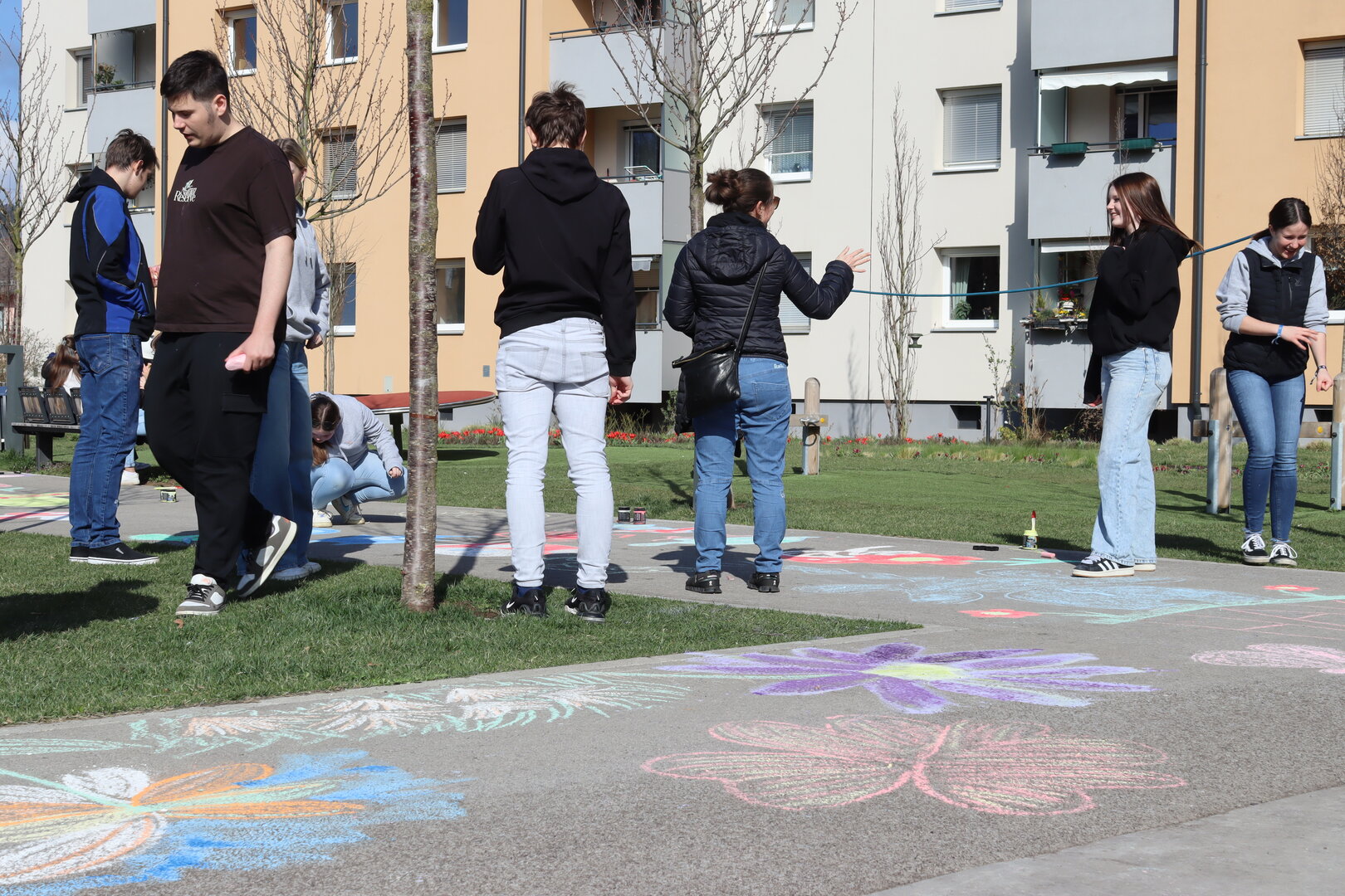 Im Stadtpark malten bei traumhaften Frühlingswetter Jugendliche der HAK Althofen sowie Kinder des Kindergartens Althofen wunderbare Kunstwerke auf den Asphalt. Umweltreferent Stadtrat Wolfgang Leitner und KEM-Manager Markus Löcker, die den „Tag des Zu-Fuß-gehens“ in Althofen organisiert hatten, beteiligten sich ebenfalls an der Schaffung von bunten Schmetterlingen, Ostereiern und vielem mehr. Zur Stärkung gab es für die begeisterten Malerinnen und Maler Krappfelder Eis der Familie Petra und Bernd Pobaschnig, Müsliriegel sowie Semmel. Mitgezeichnet haben unter anderem die Gemeinderäte Siegbert Schönfelder, Gernold Kloiber und Silvia Zeißler. Seht euch die „blühenden Wege“ im Stadtpark an, ihr werdet von den vielfältigen Zeichnungen begeistert sein!