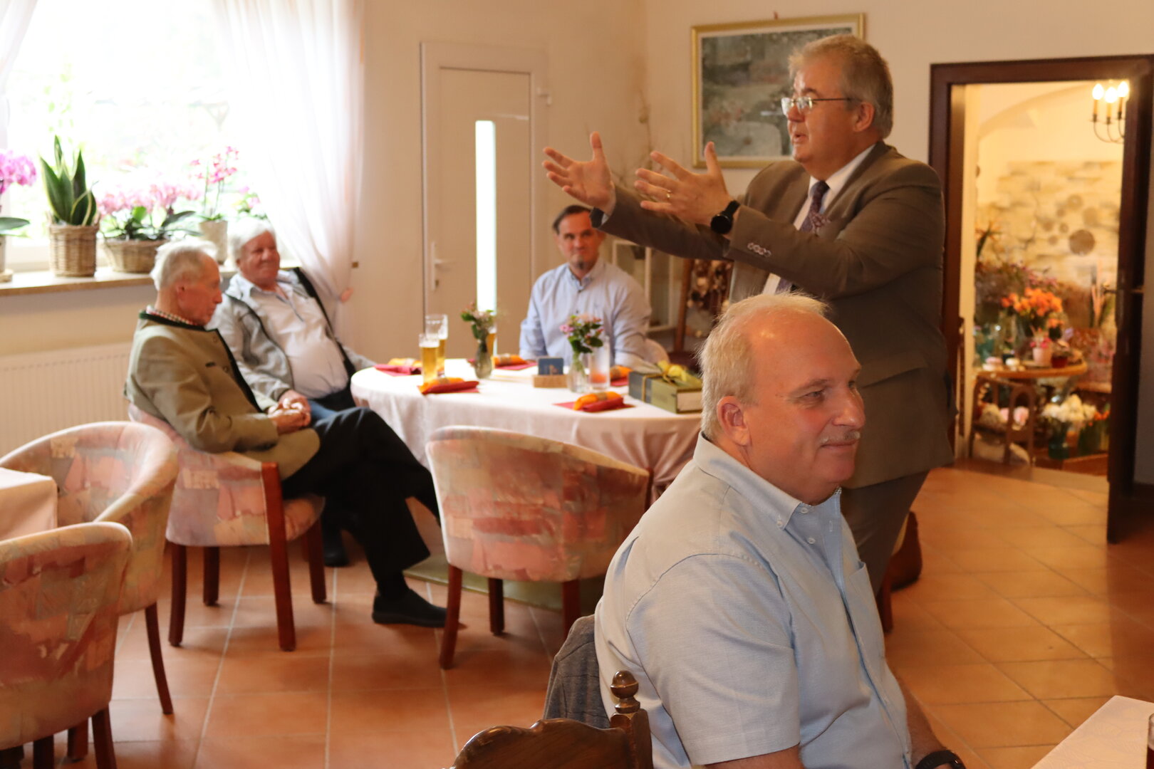 Eingeladen wurden alle, die im April ihren 50. Geburtstag gefeiert haben, sowie alle Althofenerinnen und Althofener ab 60 Jahren, die ein rundes oder halbrundes Jubiläum hatten. Ab dem 90. Geburtstag gibt es eine jährliche Einladung. Diesmal trafen sich die Geburtstagskinder im Café & Restaurant Blumen Michaela in Untermarkt, begleitet von Bürgermeister Walter Zemrosser und Seniorenbeauftragtem Ferdinand Schabernig. Bei gutem Essen entstanden viele tolle Gespräche und es wurden auch einige Anekdoten ausgetauscht.