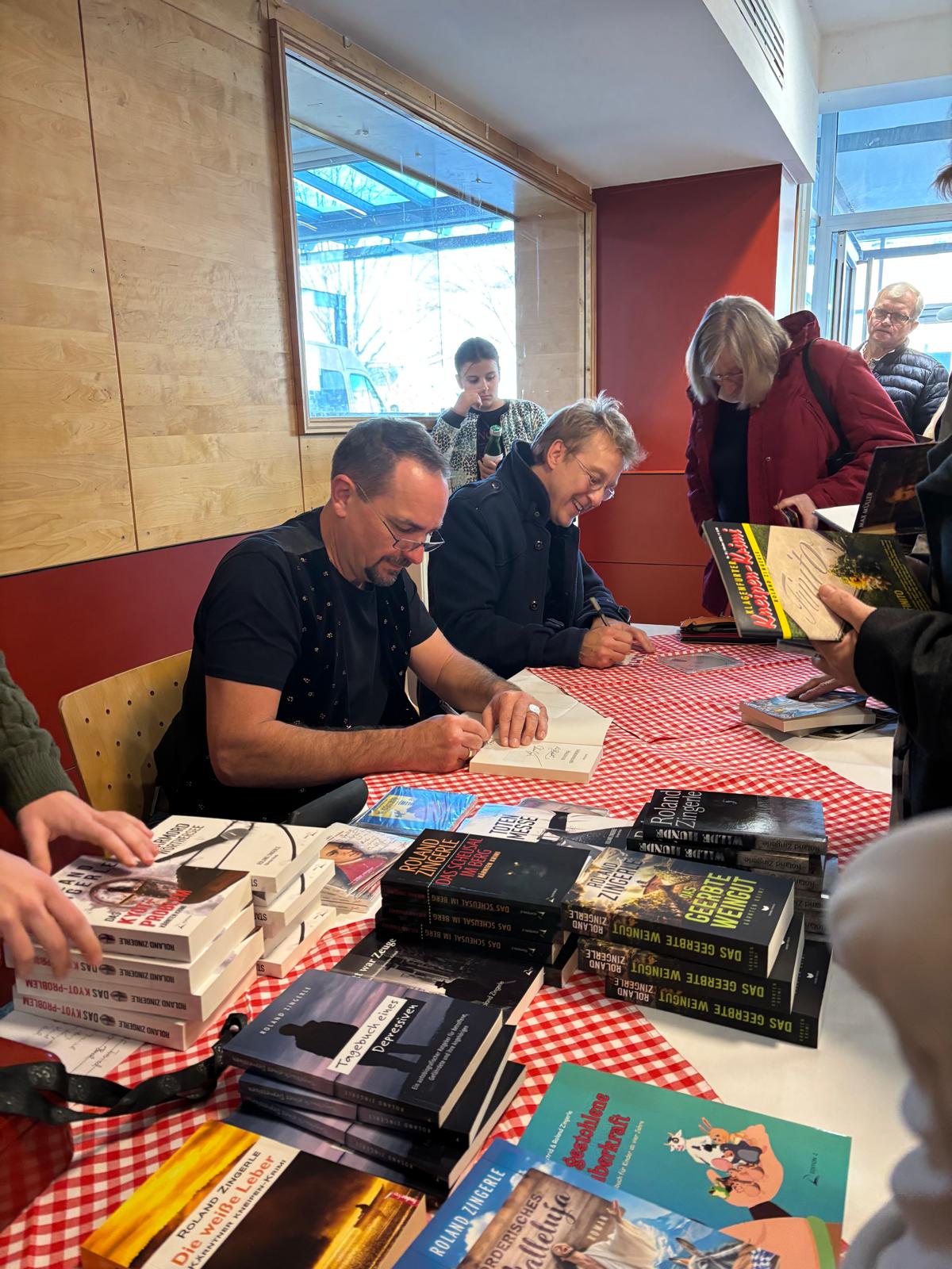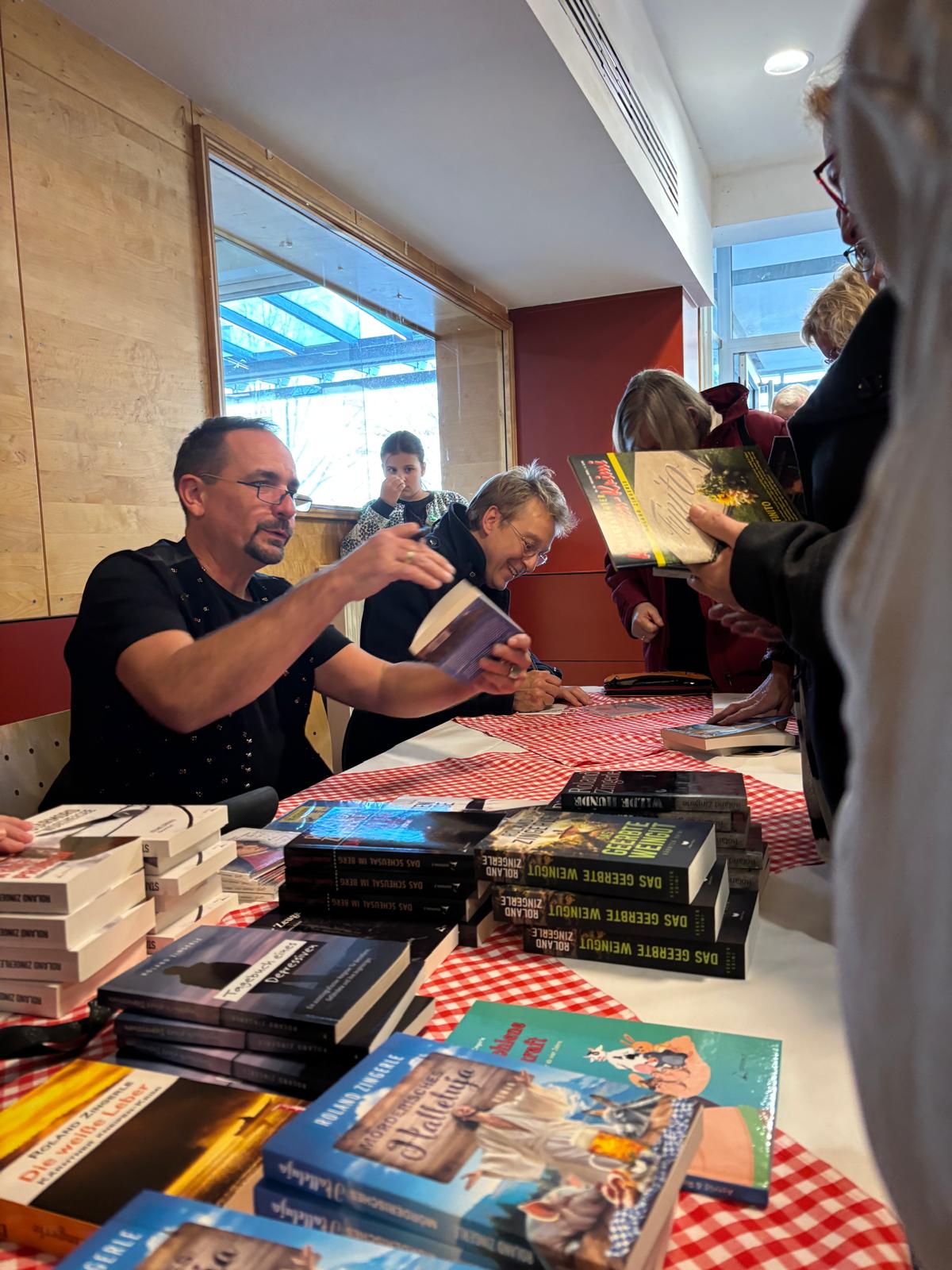 Im Anschluss gab es eine Signierstunde, in der Rosenheim-Cop Max Müller und Autor Roland Zingerle für Gespräche, Autogramme und natürlich Fotos zur Verfügung standen. Viele nutzten die Gelegenheit, mit den beiden ins Gespräch zu kommen und überzeugten sich von der sympathischen, herzlichen Ausstrahlung der beiden. Alles in allem war es ein äußerst gelungener Sonntagvormittag. Eine Veranstaltung, die den hunderten Besucherinnen und Besuchern aus Nah und Fern in Erinnerung bleibt – und eine Fortsetzung finden wird.