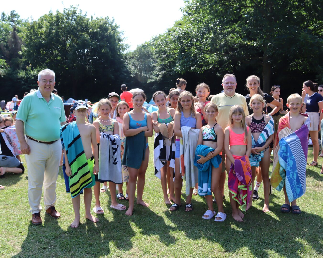 Vergangenen Freitag fand das Abschlussschwimmen des ersten zweiwöchigen Schwimmkurses für Anfänger und Fortgeschrittene statt, bei dem die Kinder ihren Eltern und Großeltern zeigten, was sie gelernt haben. In ihren Reden betonten Hauser und Bürgermeister Walter Zemrosser, wie wichtig das Schwimmenlernen ist.