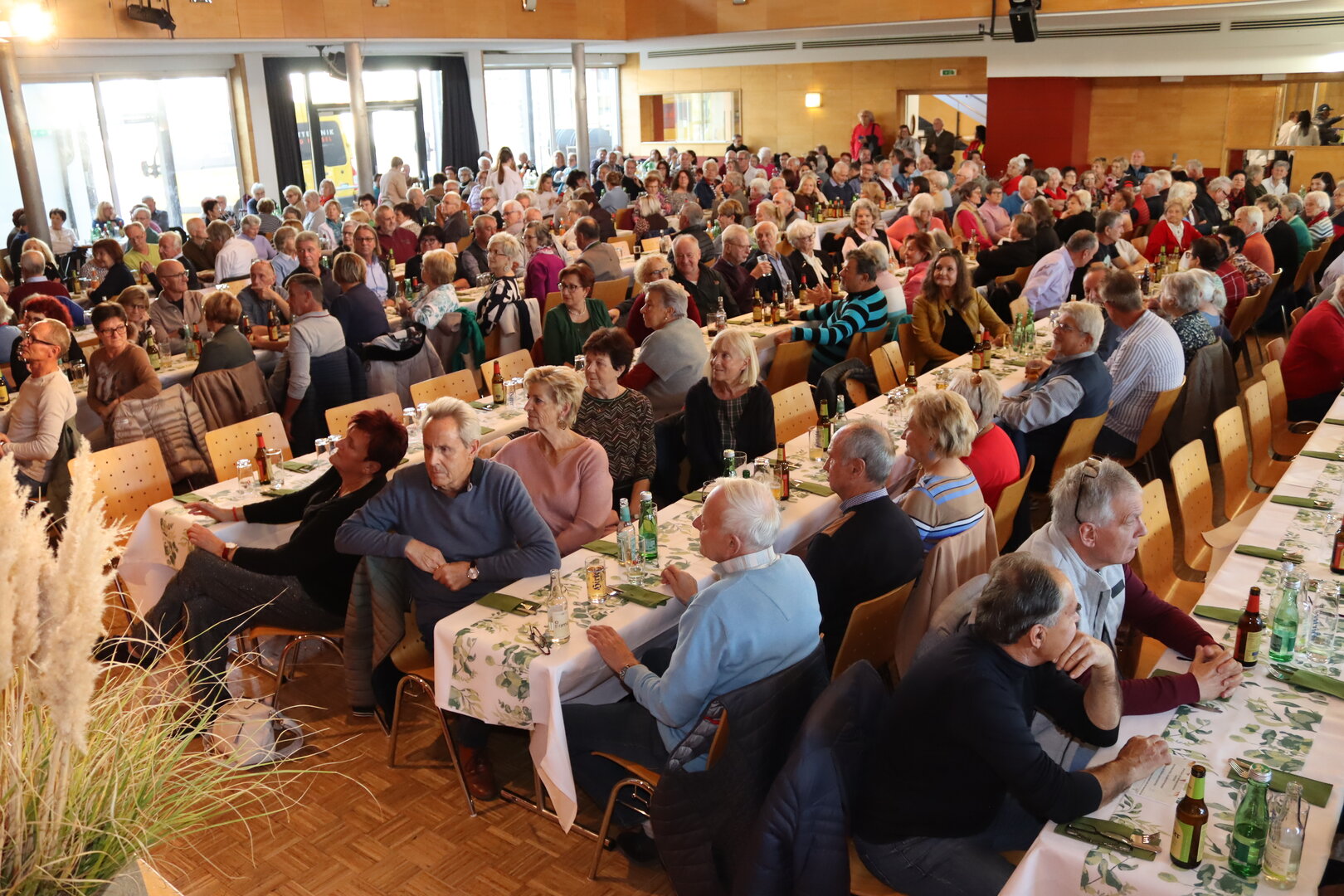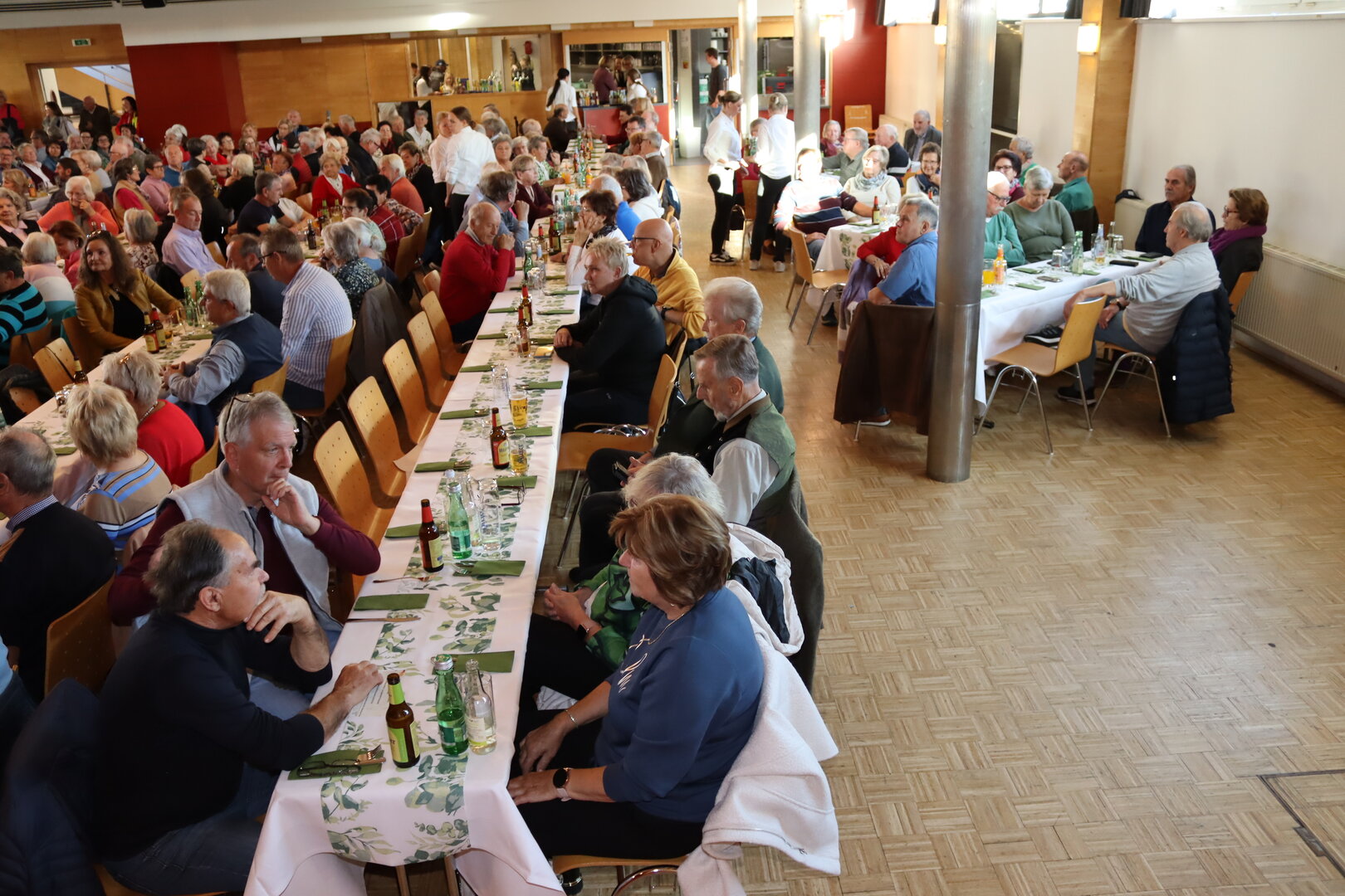 Dieser besondere Tag stand ganz im Zeichen des Miteinanders, des Austauschs und der Anerkennung für unsere älteren Mitbürgerinnen und Mitbürger. Kulinarisch wurden die Gäste hervorragend verwöhnt: Zur Auswahl standen Gulasch mit Spätzle sowie Gemüselasagne mit Pesto. Als süßer Abschluss folgte ein köstlicher Kaiserschmarrn mit Apfelmus. Zubereitet wurde das gesamte Menü vom engagierten Team des „Schloss Töscheldorf“. Für den freundlichen und professionellen Service sorgten die Schülerinnen und Schüler der Landwirtschaftlichen Fachschule Althofen, die sich mit großem Einsatz um das Wohl unserer Gäste kümmerten. Ein besonderer Höhepunkt war der Auftritt von Udo Wenders. Mit bekannten und beliebten Schlagern, Charme, Humor und jeder Menge Schmäh begeisterte er das Publikum und sorgte für ausgelassene Stimmung bis in die Abendstunden. Im Anschluss nahm er sich zudem Zeit für Fotos und Autogramme – sehr zur Freude seiner zahlreichen Fans. Alles in allem war es ein wunderschöner Nachmittag, der von vielen netten Begegnungen geprägt war.