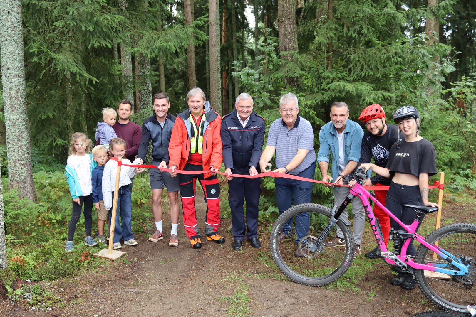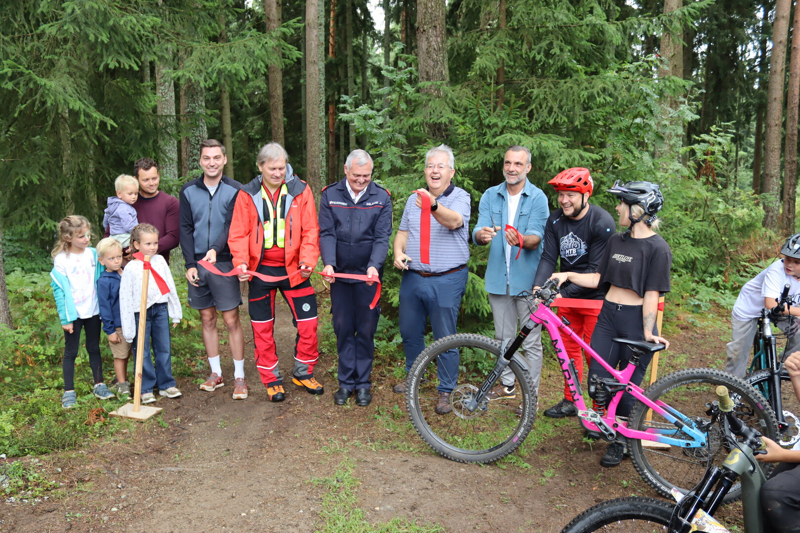 Die offizielle Eröffnung nahmen Bürgermeister Walter Zemrosser und Stadtrat Philipp Strutz gemeinsam mit Vereinsobmann David Mucher, Grundbesitzer Harald Knafl, Gemeinderat Gernold Kloiber, Feuerwehr-Kommandant Johann Delsnig, Werner Hörner, Ortsstellenleiter der Bergrettung Althofen-Hemmaland, sowie Marin-Bike-Botschafterin Sabrina „Brini" Puggl vor.