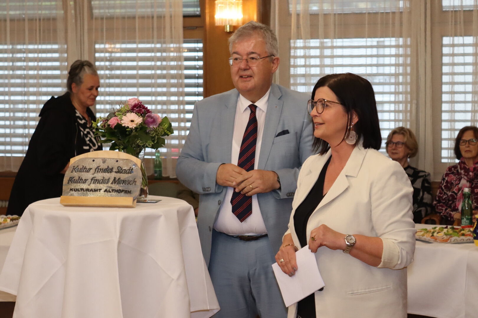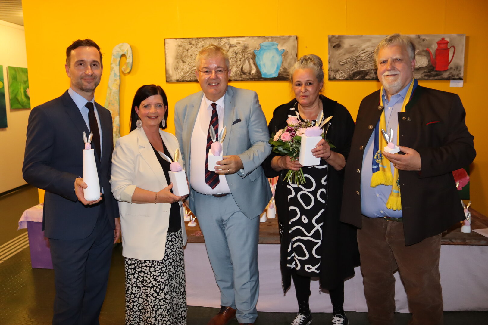 Von den kreativen Werken begeistert zeigten sich neben zahlreichen einheimischen Künstlerinnen und Künstlern auch Stadtpfarrer John Opara, Vize-Bürgermeister Michael Baumgartner, der Ehrenobmann des Kärntner Sängerbundes Herbert Obmann, BG Tanzenberg-Direktor Gerald Horn, Gabriele Fenkart, organisatorische Leiterin der Althofener Meisterklassen, Anneliese Burgstaller, Obfrau des Pensionistenverbandes Althofen-Treibach, die Friesacher Gemeinderätin Irene Buggelsheim sowie eine starke Abordnung des Lionsclubs Althofen-Hemmaland mit Präsident Erich Kejzar.