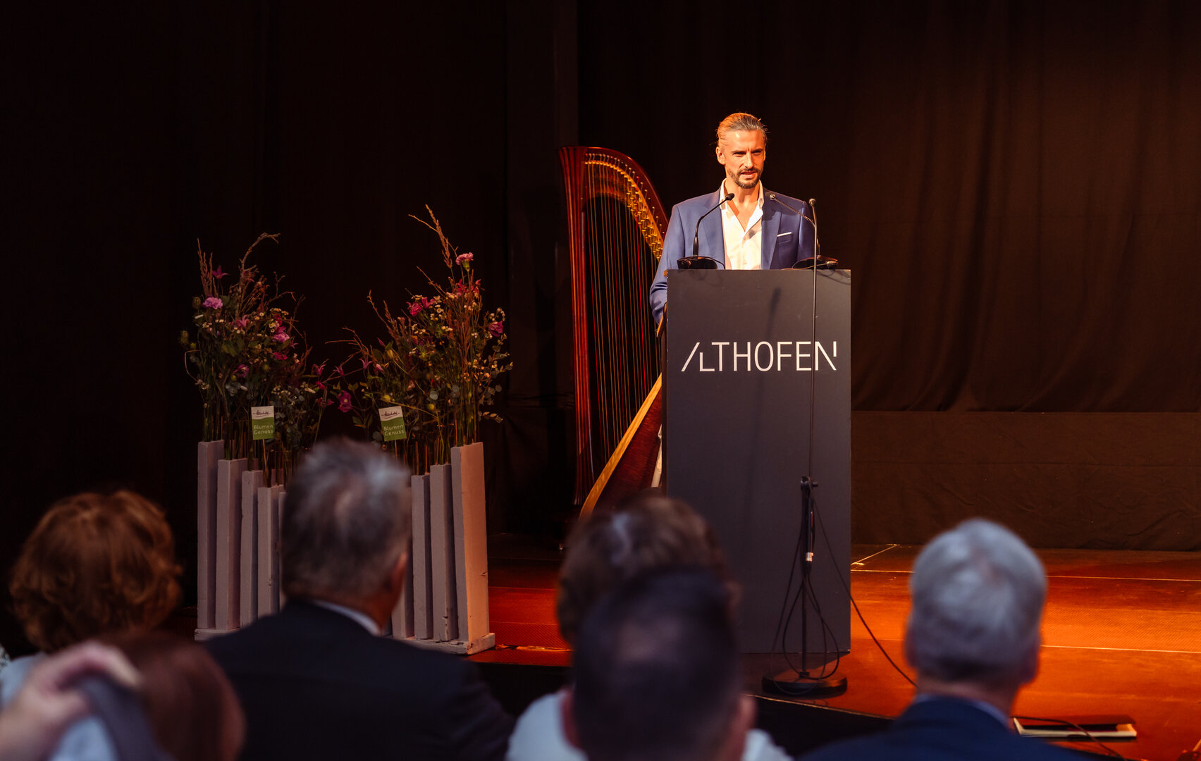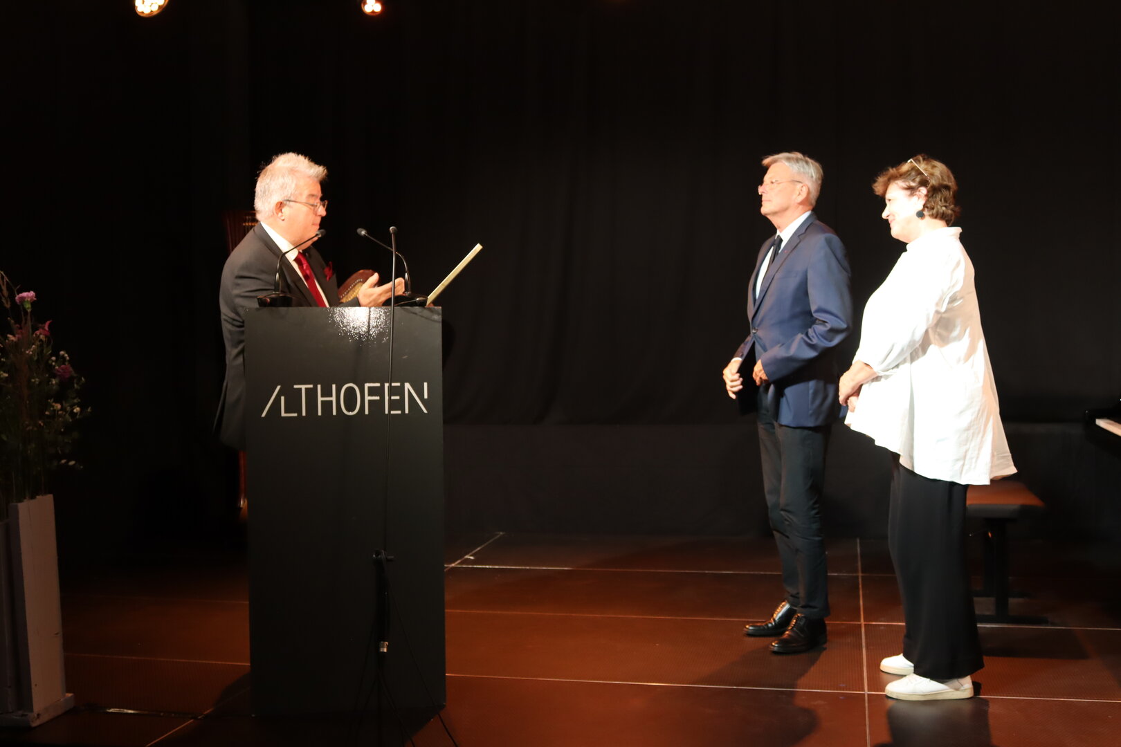 Grußworte an das Premierenpublikum richteten neben Bürgermeister Walter Zemrosser auch Astrid Legner, Vizepräsidentin der Wirtschaftskammer Kärnten, sowie Intendant Johannes Fleischmann. Die Festrede hielt Sparkassenstiftungs-Präsidentin Gabriele Semmelrock-Werzer. Die Moderation übernahm Gabriele Fenkart, organisatorische Leiterin der Althofener Meisterklassen.