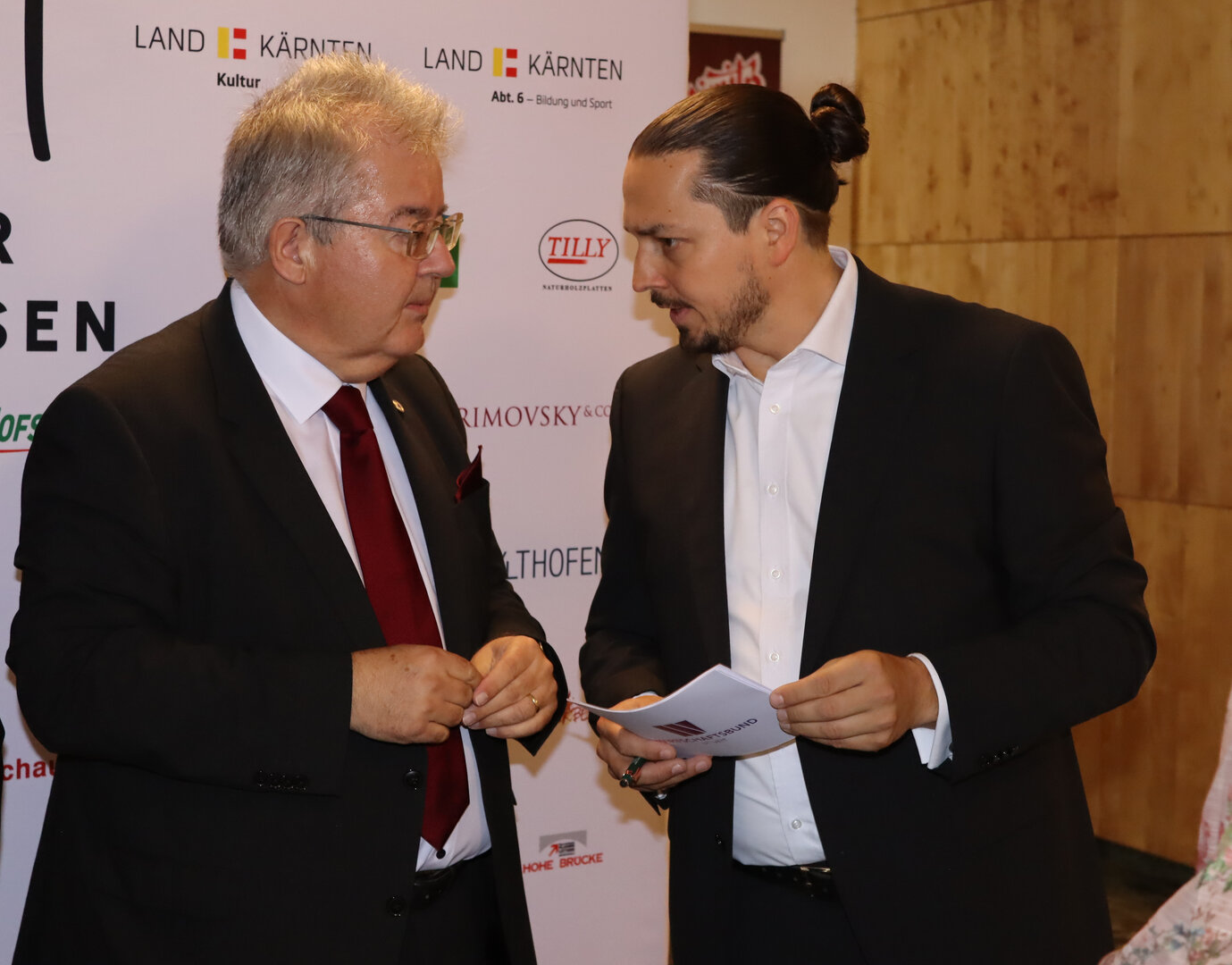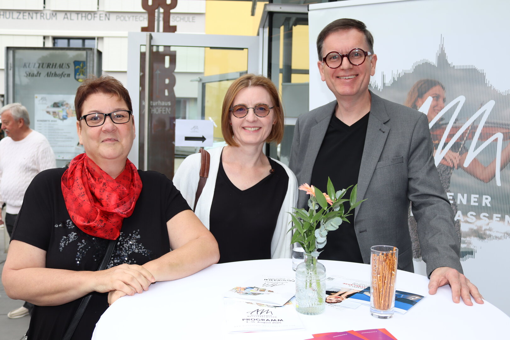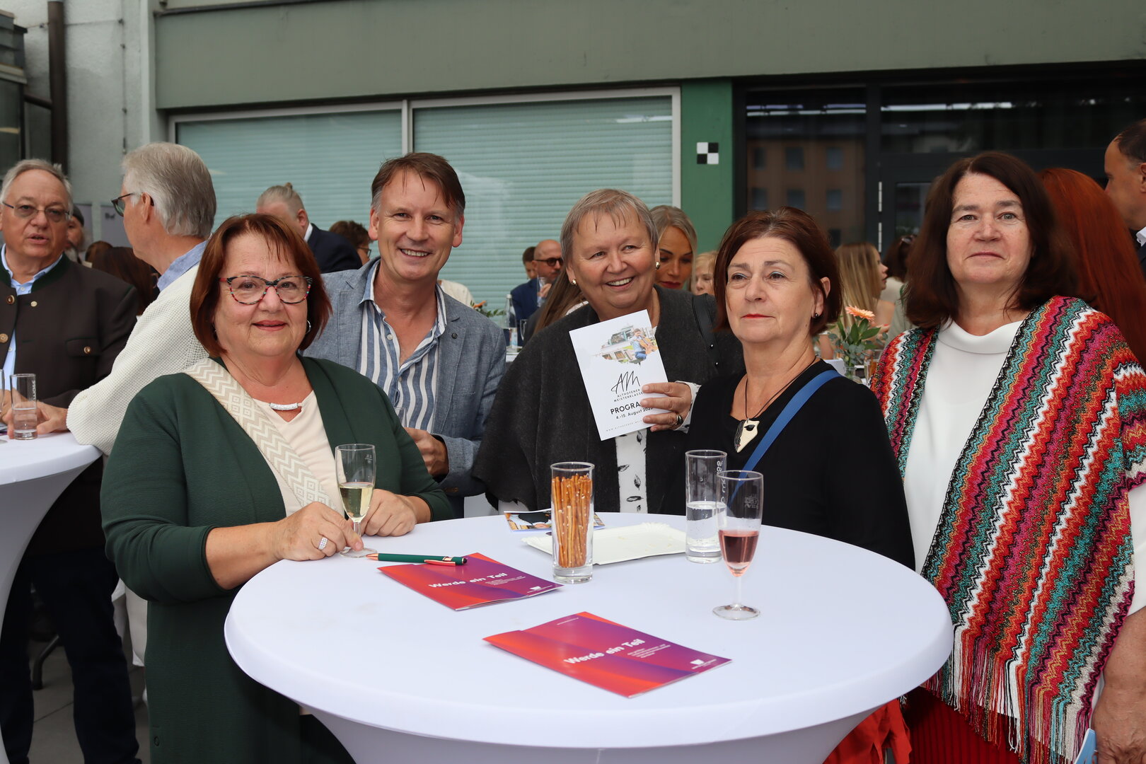 Die Stadtgemeine Althofen und der Wirtschaftsbund St. Veit luden im Vorfeld des ersten Konzertes zu einem Empfang. Bezirksobmann Walter Sabitzer und Bezirksstellenleiter Robert Schratt konnten neben vielen Unternehmerinnen und Unternehmern auch Carmen Goby, Vizepräsidentin der Wirtschaftskammer Österreich, begrüßen. Feine Weine kredenzte Romana Candussi, Vinum Virunum. Für das leibliche Wohl sorgte Gerlinde Rinner von der Buschenschenke Dachberger. Individuellen Schmuck aus künstlerischer Handarbeit präsentierten Werner und Susanna Pejrimovsky im Foyer des Kulturhauses.
