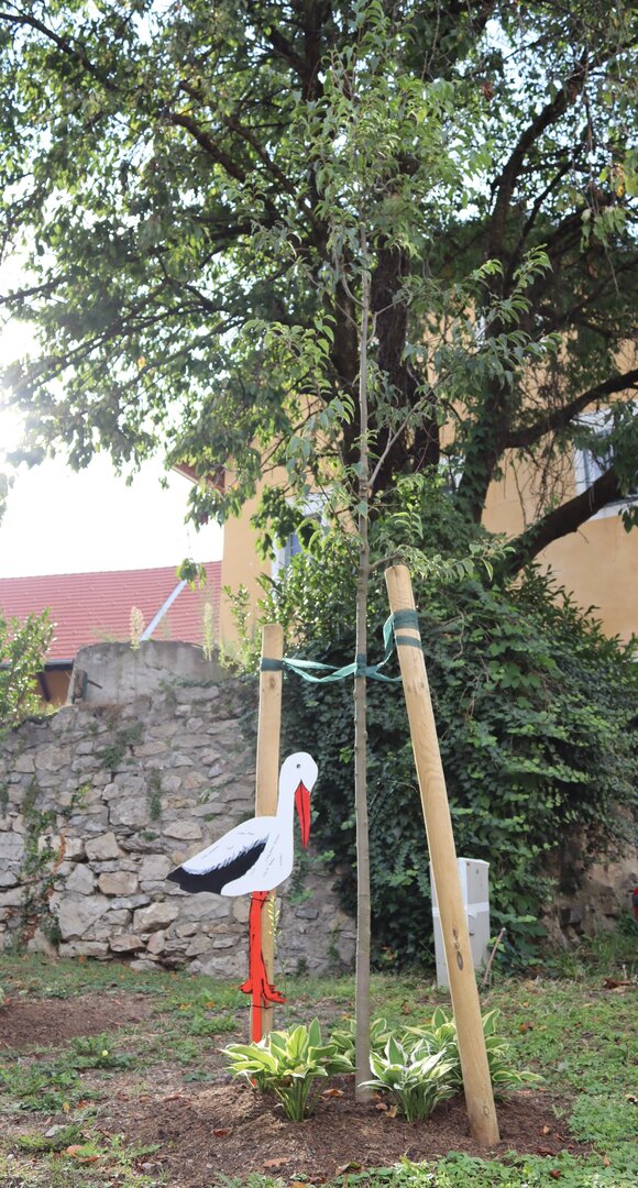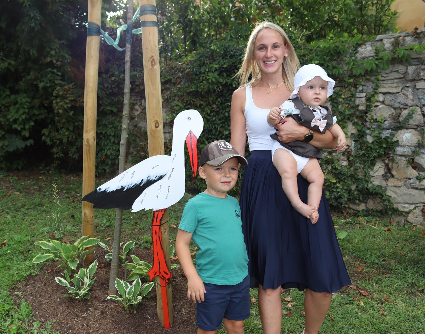 Besonders entzückend: Auf den Stämmen der beiden Bäume „sitzen“ Störche mit den Namen der Neugeborenen. Diese liebevoll gestalteten Störche wurden in der Werkstatt Benedikt von den dortigen Klientinnen und Klienten hergestellt. In seiner Ansprache sagte Bürgermeister Walter Zemrosser: „Wie ein Baum, der wächst, sollen auch die Kinder wachsen.“ Auch Vizebürgermeisterin Doris Hofstätter richtete Worte an die Anwesenden: „Ich wünsche den Eltern und den Kindern alles Gute für ihre gemeinsame Zukunft.“