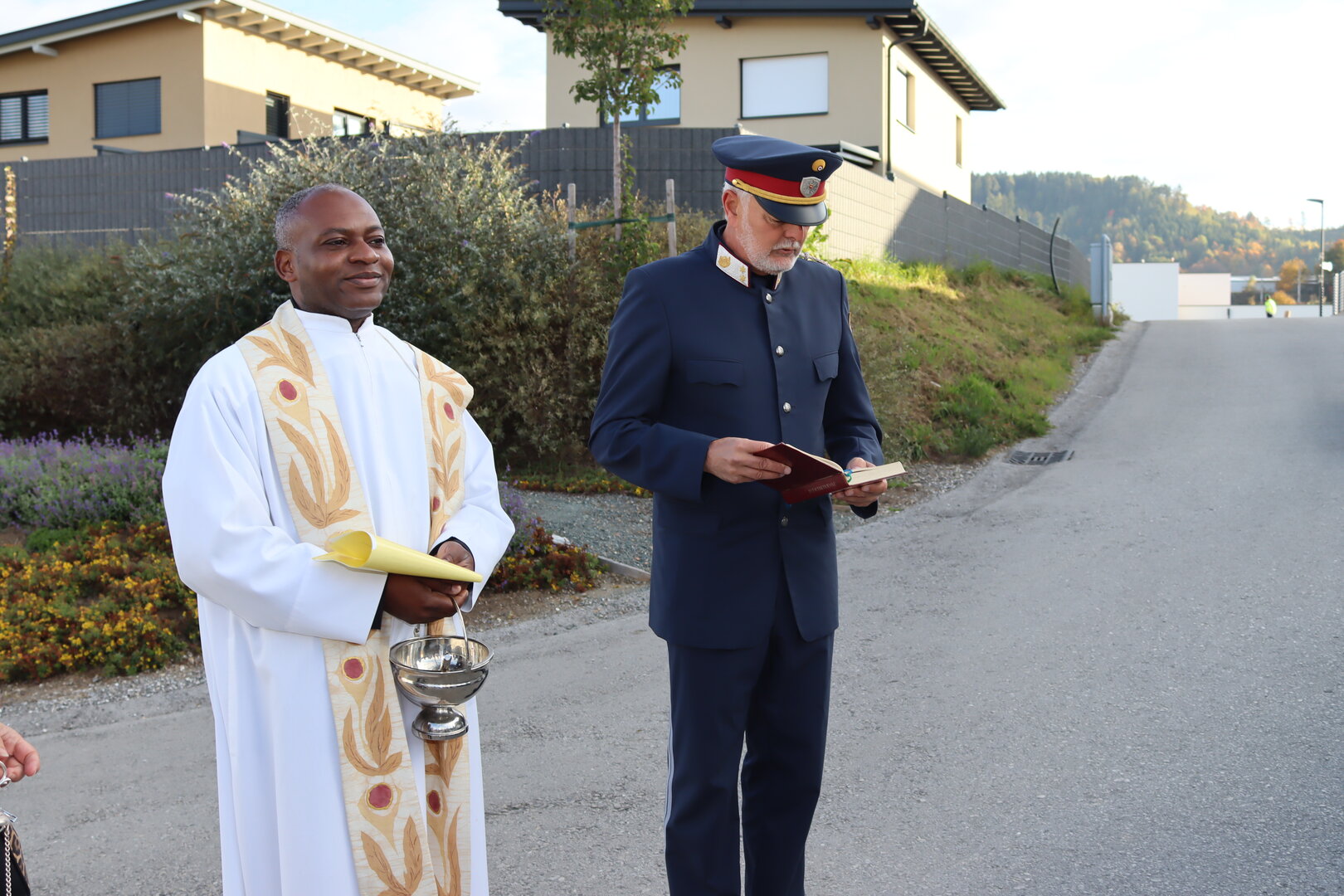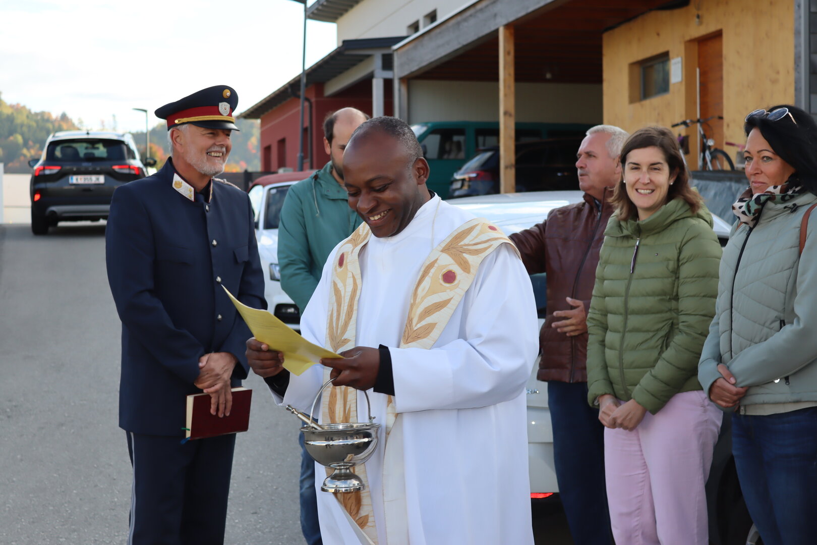 Die Weihe nahm Stadtpfarrer John Opara im Beisein von Nachbarinnen und Nachbarn vor. Auch Bürgermeister Walter Zemrosser, Vizebürgermeisterin Doris Hofstätter, Stadtrat Klaus Trampitsch, die Gemeinderäte Robert Dolzer und Silvia Zeißler, Stadtamtsleiter Hubert Madrian, die Alt-Bürgermeister Heinz Niedermessner und Alexander Benedikt, Susanne Egger, Direktorin der Mittelschule Althofen, sowie Sandra Benedikt, Leiterin der Kindertagesstätte „Frechdax“, wohnten der Feier bei.