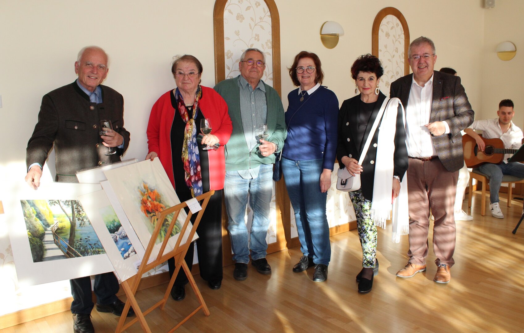 Für Begeisterung sorgte neben ihren eindrucksvollen Aquarellbildern die Musikgruppe „Tonband“. Nach einleitenden Worten von Bürgermeister Walter Zemrosser, der mit Gattin Ingrid die Vernissage besuchte, und Vize-Bürgermeisterin Doris Hofstätter, erzählte Katharina Schuhmeyer über ihre Leidenschaft fürs Malen. Von den vielfältigen und ansprechenden Kunstwerken angetan zeigten sich unter anderem Auer von Welsbach-Museumsleiter Roland Adunka, Seniorenbeauftragter Ferdinand Schabernig, Lionsclub Althofen Hemmaland-Pressechefin Wilma Warmuth, Ministerialrätin Hannelore Kempel mit Gatten Gerhard sowie die Künstler Ernst Wagner und Christine Kenda.