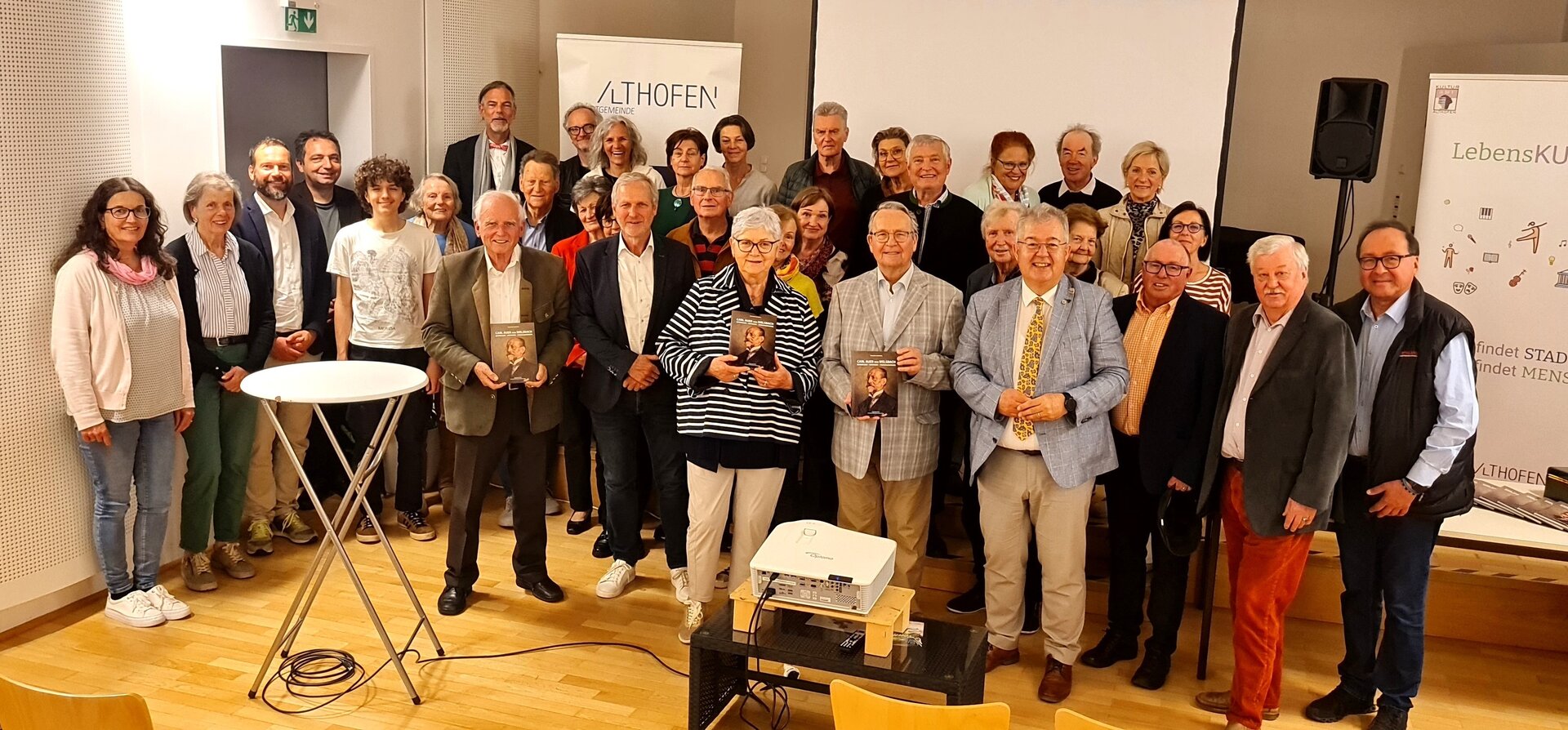 Von der ansprechenden Präsentation und den interessanten Details aus dem Leben des Universalgenies begeistert zeigten sich unter anderem Bürgermeister Walter Zemrosser, Alt-Bürgermeister Manfred Mitterdorfer, die Stadträte a. D. Rüdiger Nagy und Dietmar Schwarz, Seniorenbeauftragter Ferdinand Schabernig, Gertrud Auer von Welsbach als Vertreterin der Familie des Erfinders, Buchautor Gert Löffler, Künstler Geza Balint, Mitglieder des Auer-von-Welsbach-Museumsvereins und des Stadtarchivs Althofen sowie Familie, Angehörige und Freunde des Buchautors mit Gattin Irmgard an der Spitze.