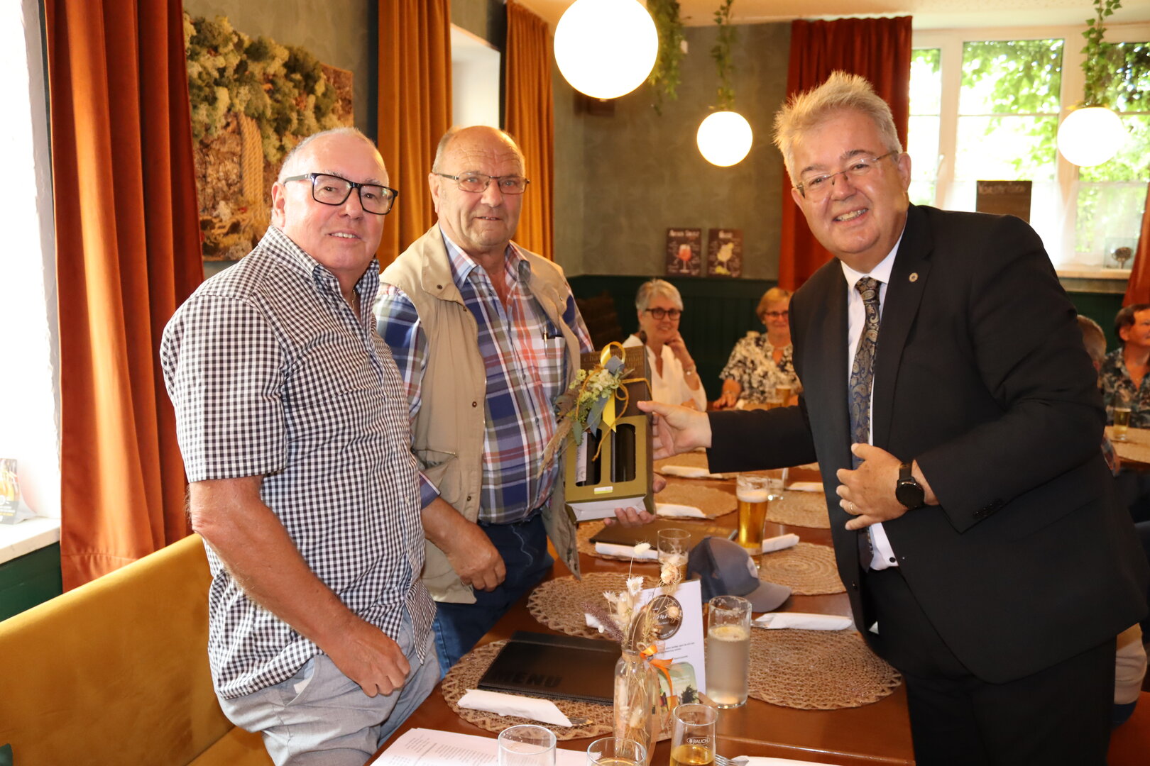 Am Tag der Einladung hatten diesmal sogar zwei Geburtstagskinder ihr Jubiläum: Herbert Lackner und Günther Zamernik feierten ihren 75. Geburtstag und erhielten aus den Händen des Bürgermeisters einen edlen Tropfen.