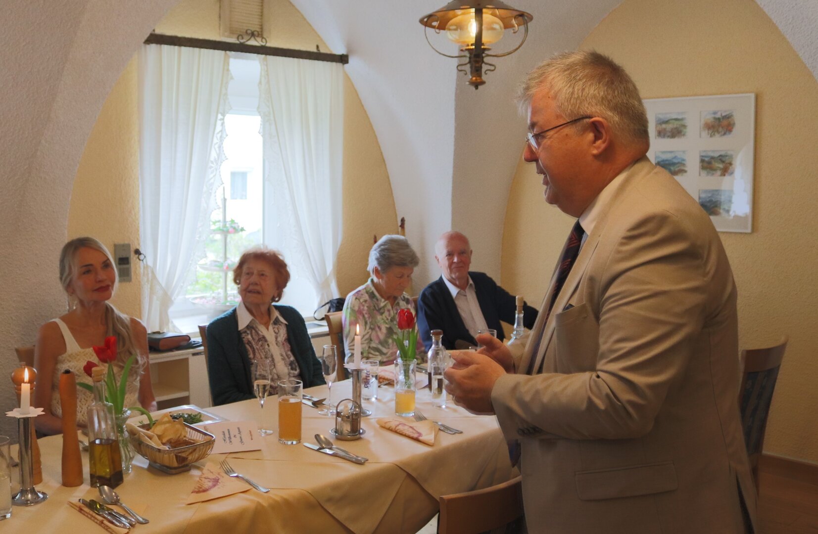 Diesmal fand das Beisammensein der Geburtstagskinder des Monats April mit Bürgermeister Walter Zemrosser und Seniorenbeauftragten Ferdinand Schabernig im Hotel-Restaurant Prechtlhof statt. Angeregte Gespräche und jede Menge Anekdoten rundeten das gute Essen ab.