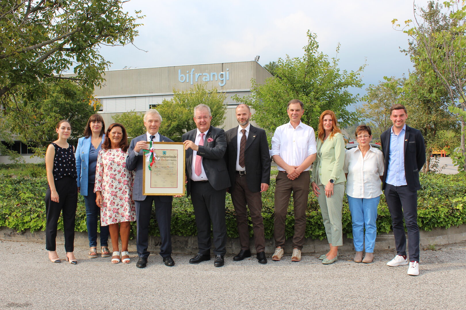 Die Verleihung des Wappenrings fand in Italien statt, da das Unternehmen seinen Stammsitz in Mussolente in der Provinz Vicenza hat. Der Kärntner Delegation gehörten neben Bürgermeister Walter Zemrosser, Stadtrat Philipp Strutz, Gemeinderat Gernold Kloiber, Ersatz- Gemeinderat Philipp Scheiflinger und Stadtamtsleiter Hubert Madrian auch Bezirkshauptfrau Claudia Egger-Grillitsch sowie die an der Bifrangi-Ansiedlung maßgeblich beteiligten Personen Natascha Zmerzlikar, zuständig für die Vermarktung des Wirtschafts- und Logistikstandortes Kärntens sowie Werner Ebner und Dietmar Klingspiegl von der örtliche Raumplanung Land Kärnten, an.