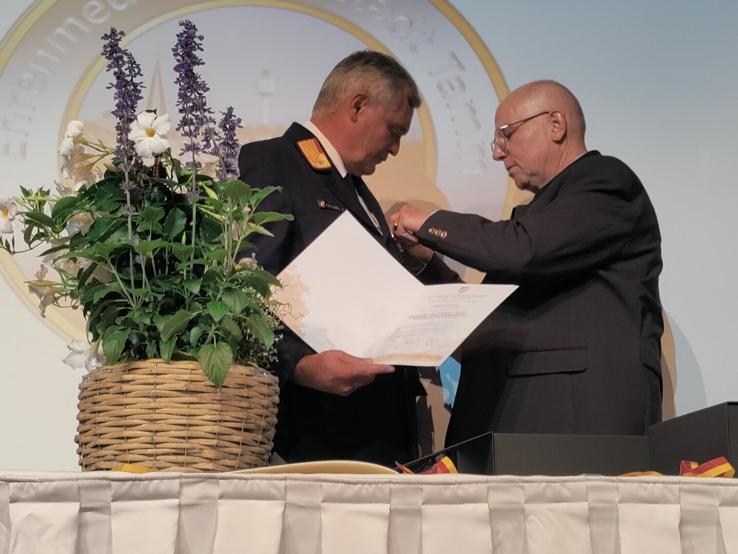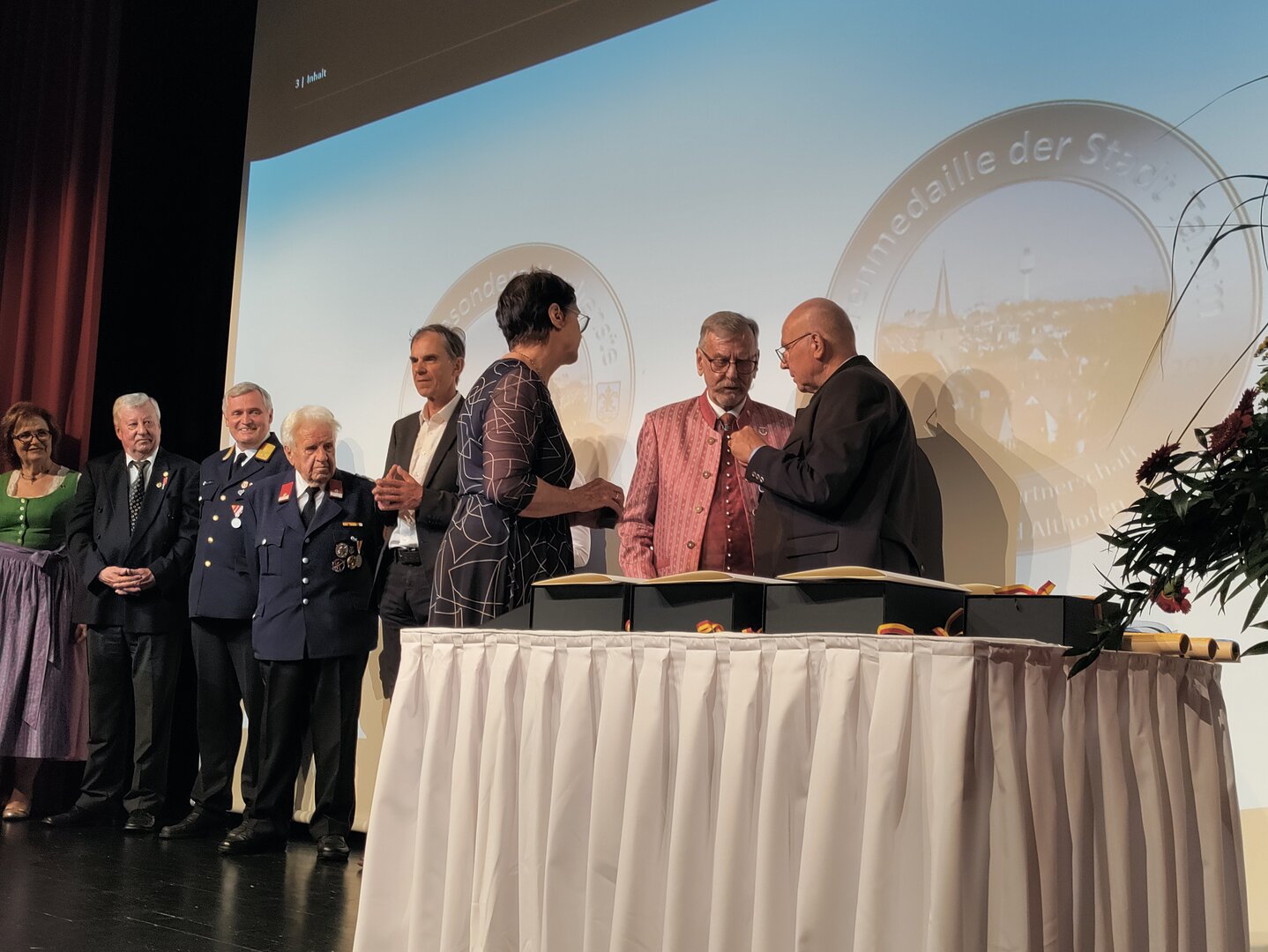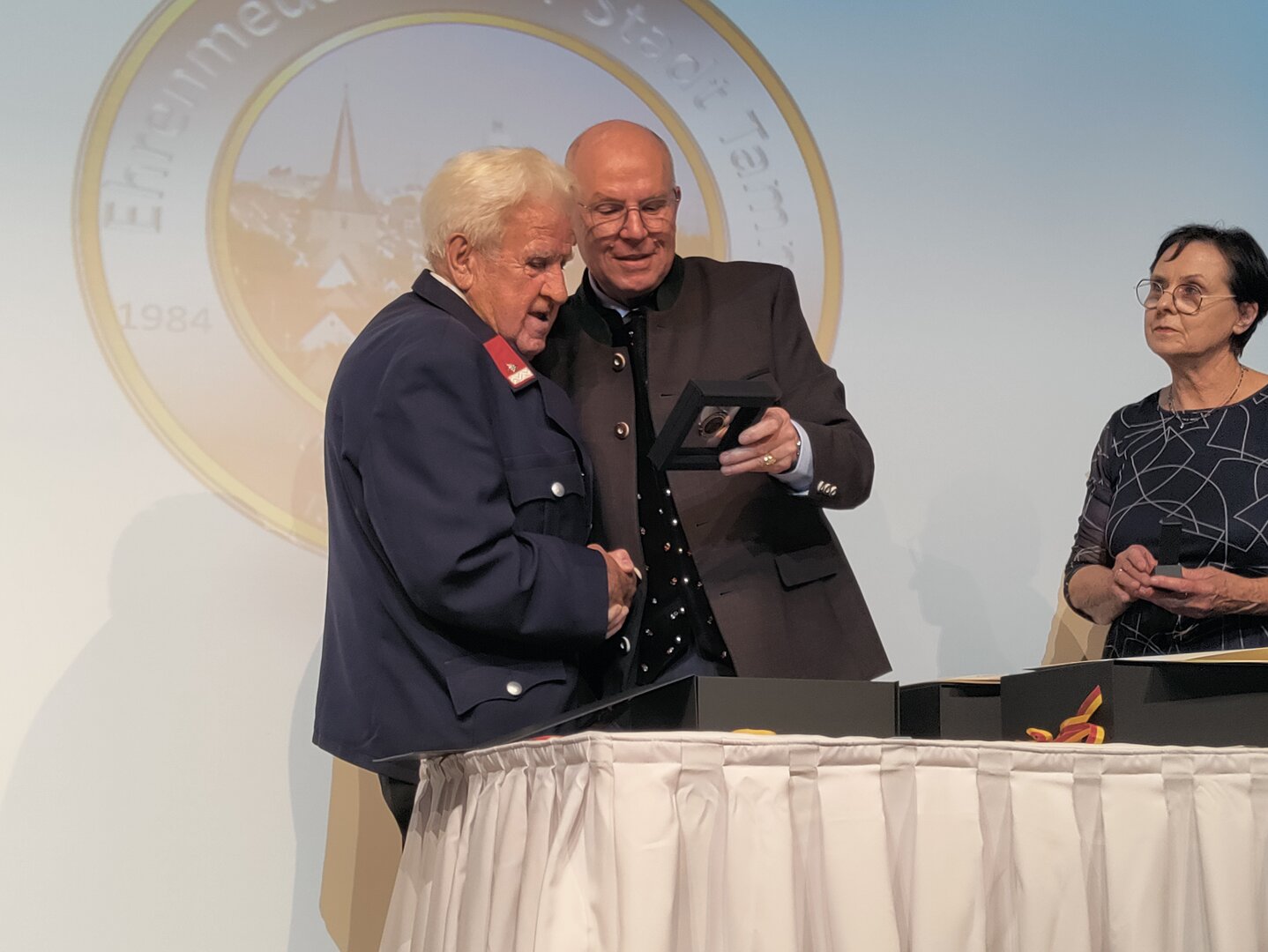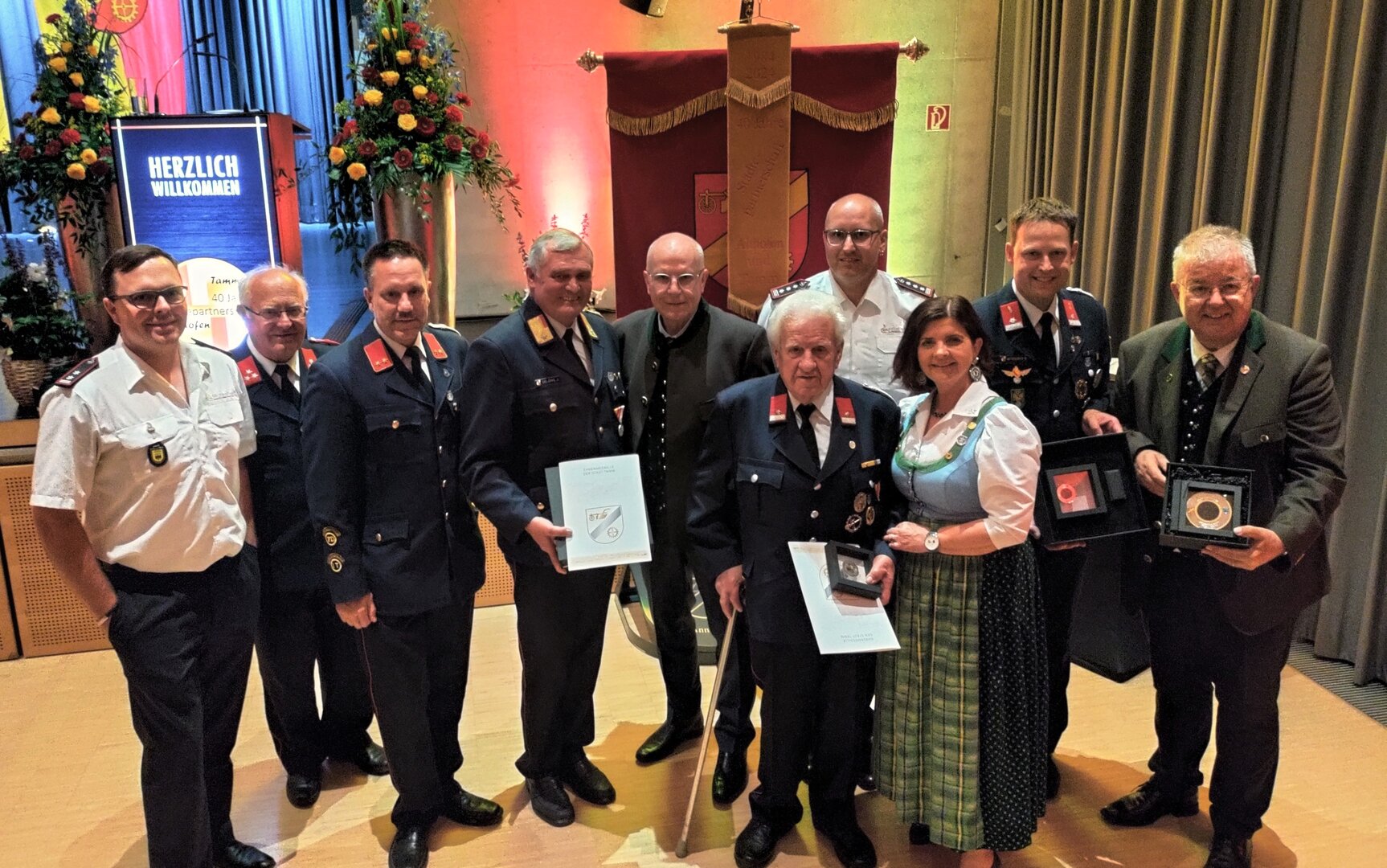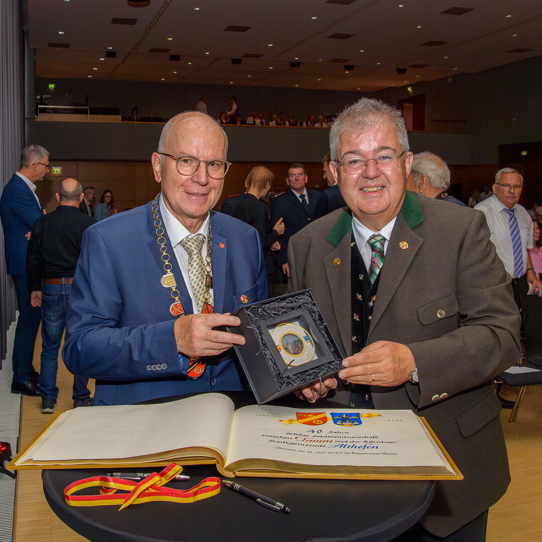 Für ihre besonderen Verdienste rund um die Städtepartnerschaft wurden Vize-Bürgermeisterin Doris Hofstätter, Stadtamtsleiter Hubert Madrian, die Tamm-Freunde Walter Seirer und Stadtrat a. D. Rüdiger Nagy sowie Johann Delsnig, Wilhelm Mitterdorfer und Michael Niszl von der FF Althofen geehrt.