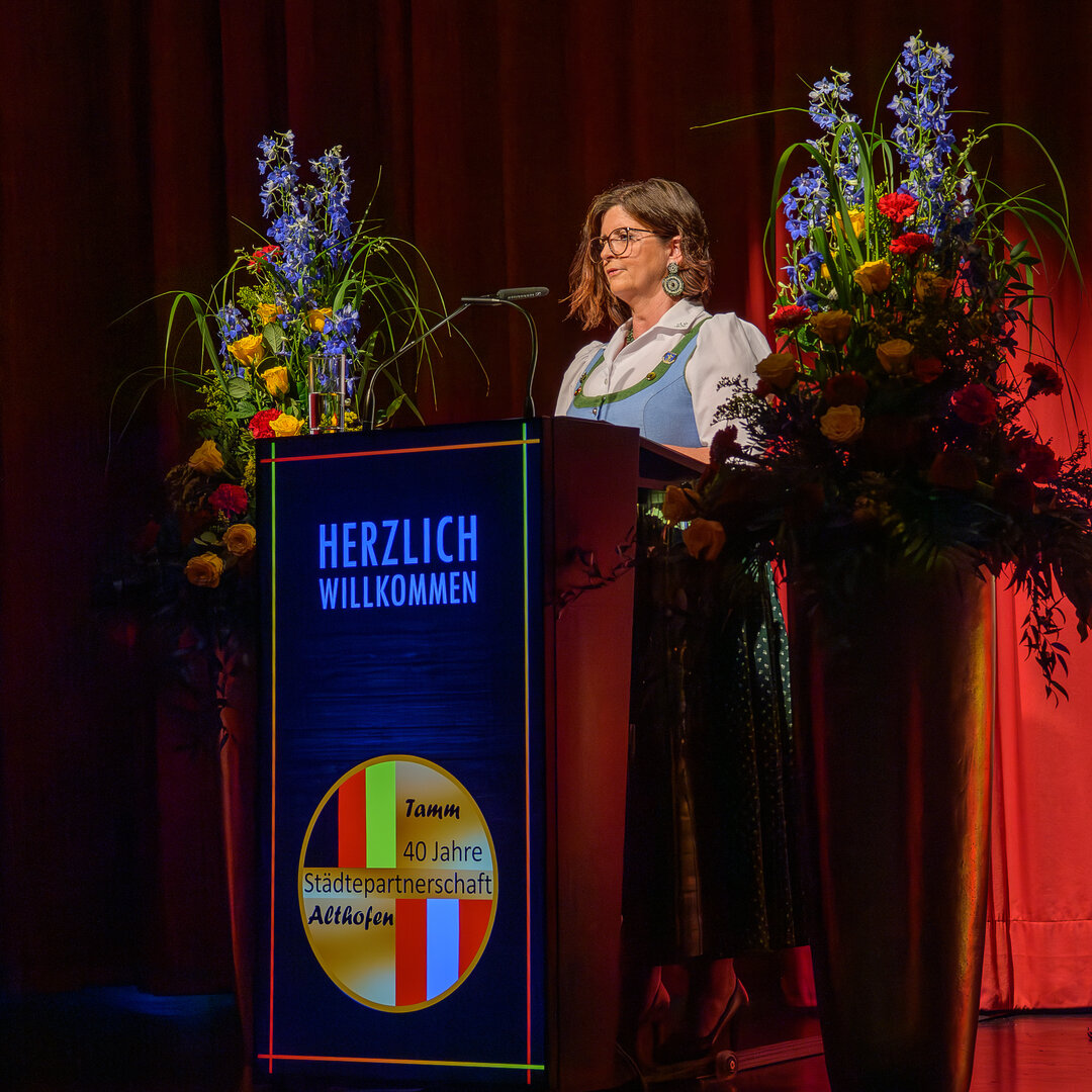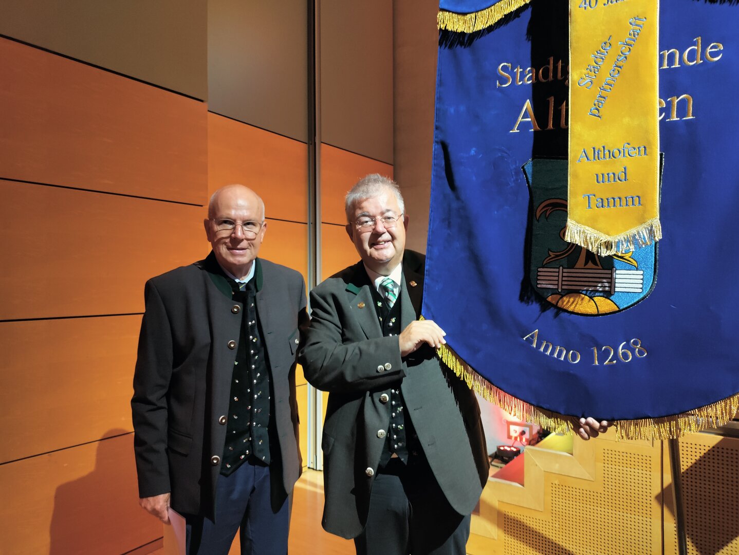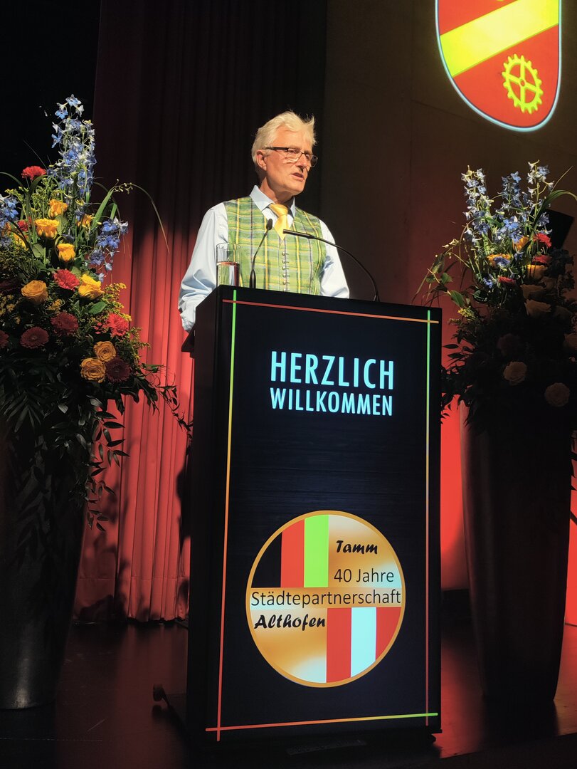 Zu den Feierlichkeiten anlässlich 40 Jahre Städtepartnerschaft reisten vergangenen Freitag an die 70 Personen aus Althofen nach Tamm. Eine Abordnung der FF Althofen, des Seniorenclubs, des Pensionistenverbandes, der Stadtkapelle, des Volksliedchores, der Trachtengruppe, der Band „Small Dragons“ sowie politische Vertreter erlebten ein besonderes Jubiläumswochenende. Freitagabend wurde im Bürgersaal Tamm mit einem feierlichen Festakt, den der Volksliedchor, die Stadtkapelle sowie die „Small Dragons“ mitgestalteten, die gelebte Städtepartnerschaft gebührend gewürdigt. Dem amtierenden Tammer Bürgermeister Martin Bernhard überreichten Bürgermeister Walter Zemrosser und Vize-Bürgermeisterin Doris Hofstätter, Referentin der Städtepartnerschaft, ein original Kärntner Sakko. Doris Hofstätter verlas außerdem eine Grußbotschaft von Alt-Bürgermeister Manfred Mitterdorfer, Ehrenbürger der Stadt Tamm, der bat, dass diese herzliche Partnerschaft auch in den nächsten Jahren ein Band der Freundschaft bleiben möge.