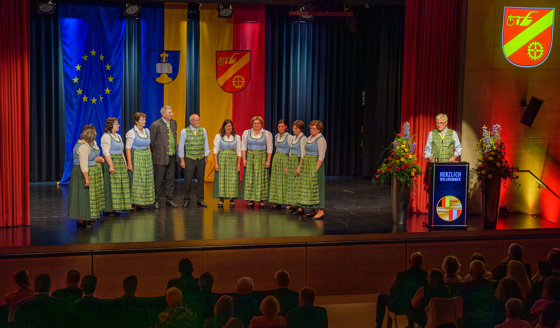 Seitens des öffentlichen Althofens feierten neben Bürgermeister Walter Zemrosser mit Gattin Ingrid auch Vizebürgermeisterin Doris Hofstätter, Stadtrat Klaus Trampitsch, die Gemeinderäte Gernold Kloiber und Markus Weghofer sowie die Ersatzgemeinderäte Walter Seirer, Philipp Scheiflinger und Alexander Steinwender 40 Jahre Städtepartnerschaft.