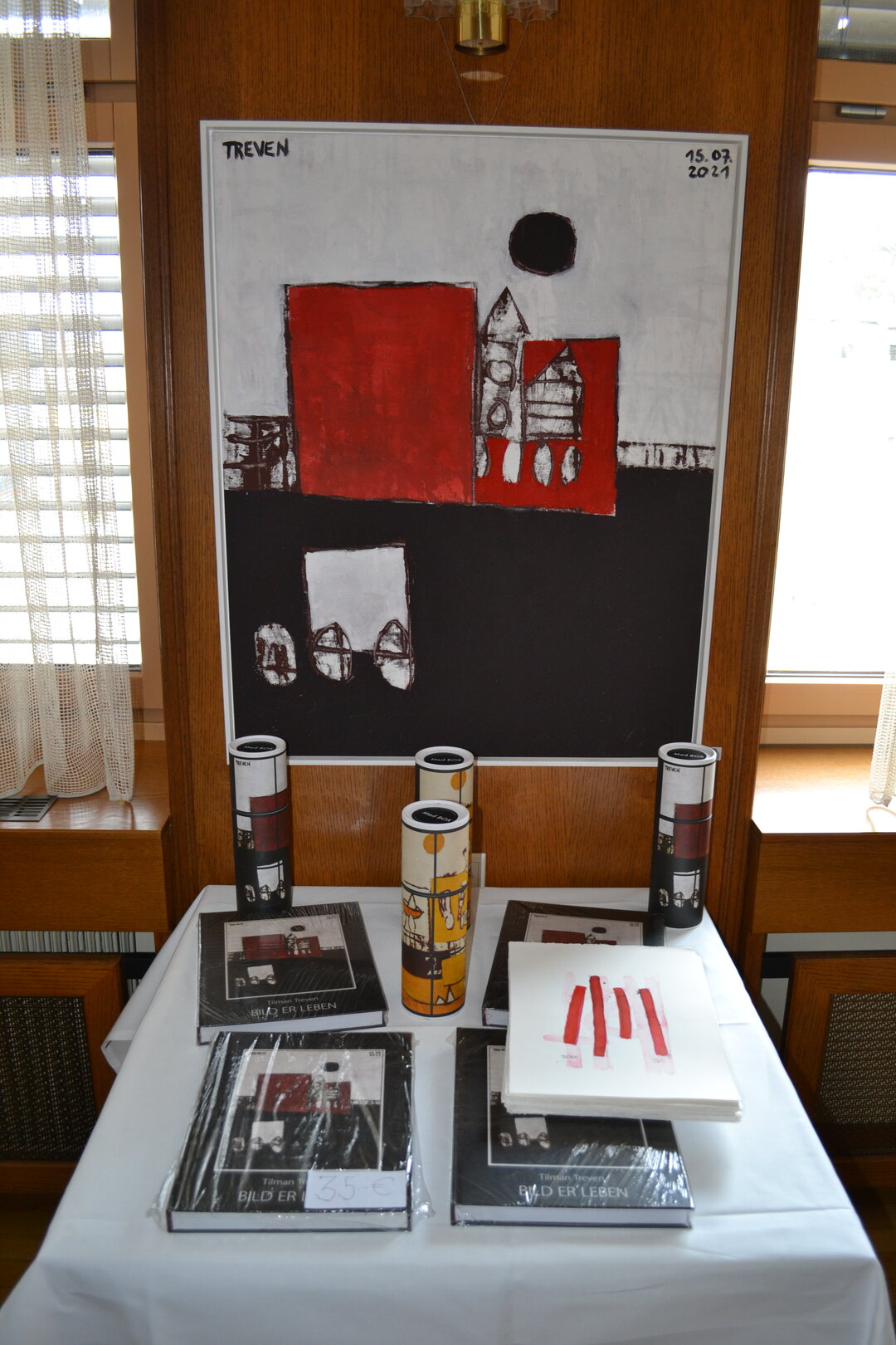 Der Kärntner Künstler Tilman Treven lud zur Eröffnung seiner Ausstellung. Gezeigt werden auch bedeutende Werke seines Vaters Reiner Treven, der dem BORG „Auer von Welsbach“ als Direktor vorstand. Zusätzlich zu den Kunstwerken bot Valentin Barac eine Edelbrandverkostung an. Bürgermeister Walter Zemrosser sowie Vize-Bürgermeisterin und Kulturstadträtin Doris Hofstätter hoben die hohe künstlerische Qualität der Familie Treven hervor und begrüßten den am weitesten angereisten Gast Andreas Maurer, Bürgermeister a. D. vom niederösterreichischen Trautmannsdorf. Als Hommage an die Direktorenzeit von Reiner Treven sorgte die Band des BORG „Auer von Welsbach“ mit Peter Prammerdorfer für beste Stimmung.