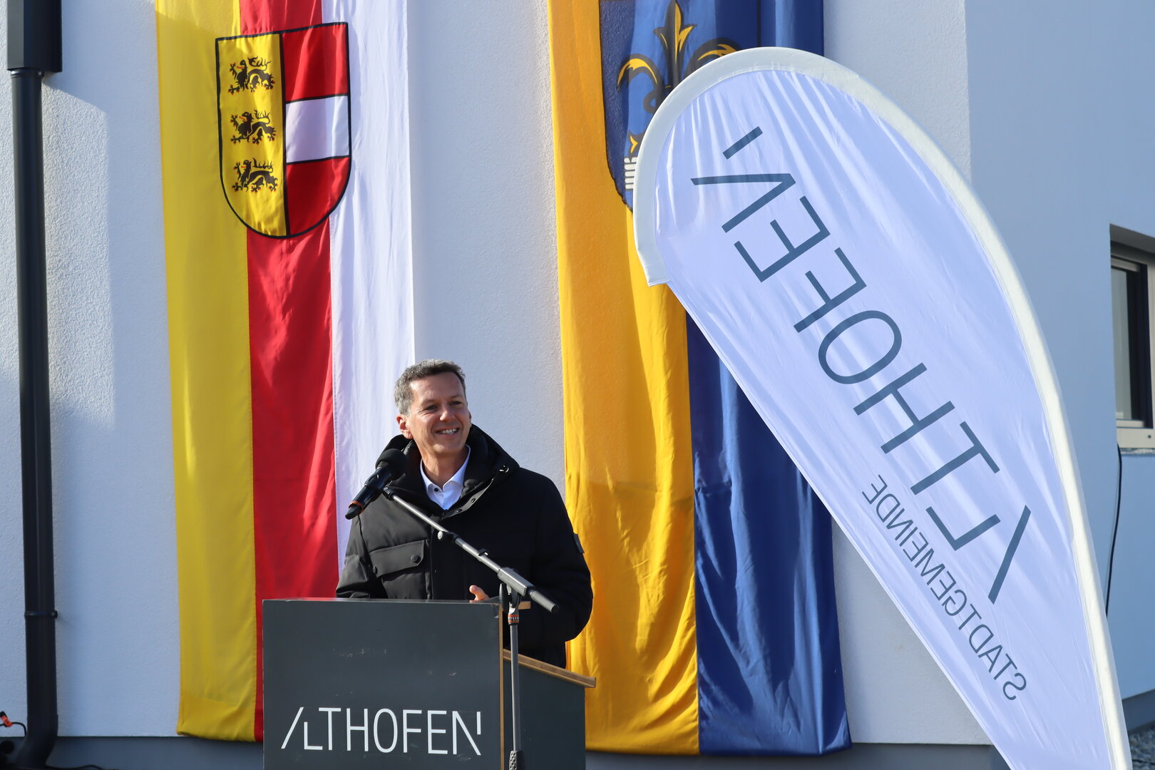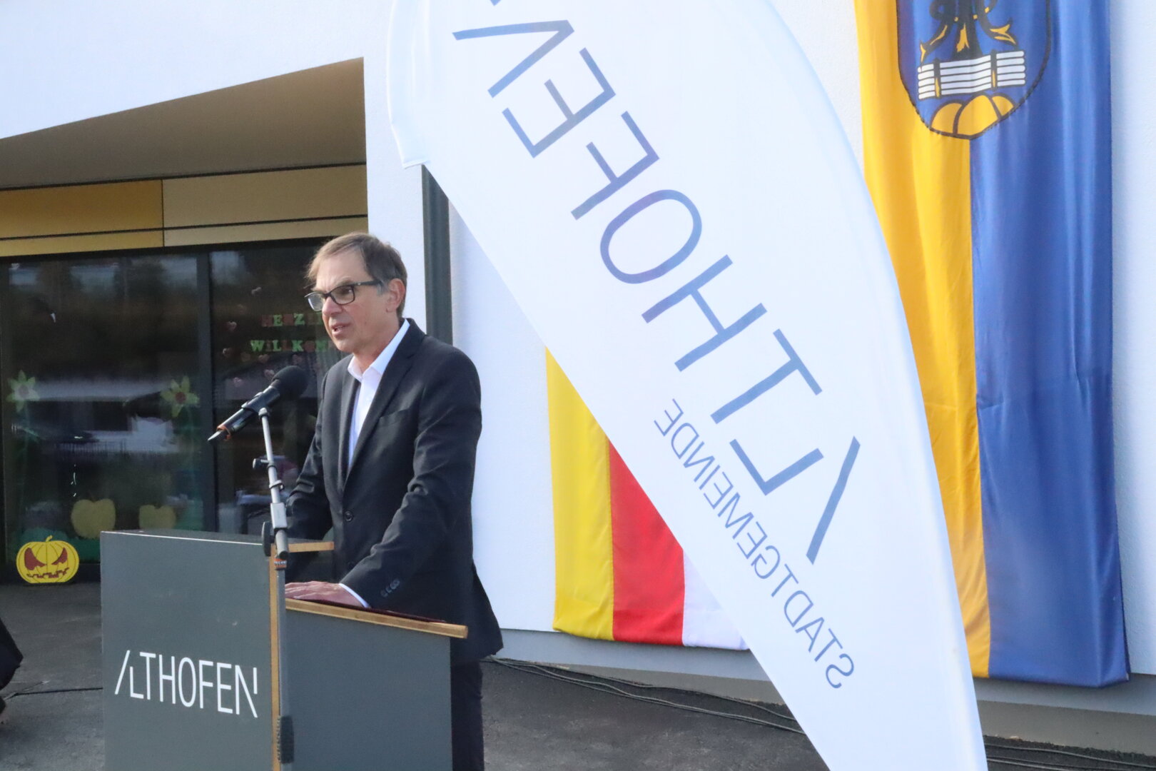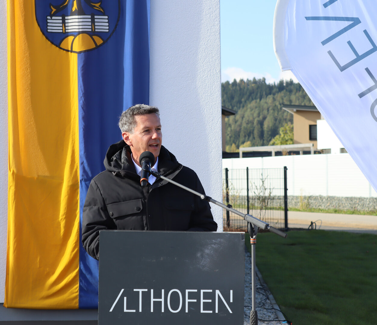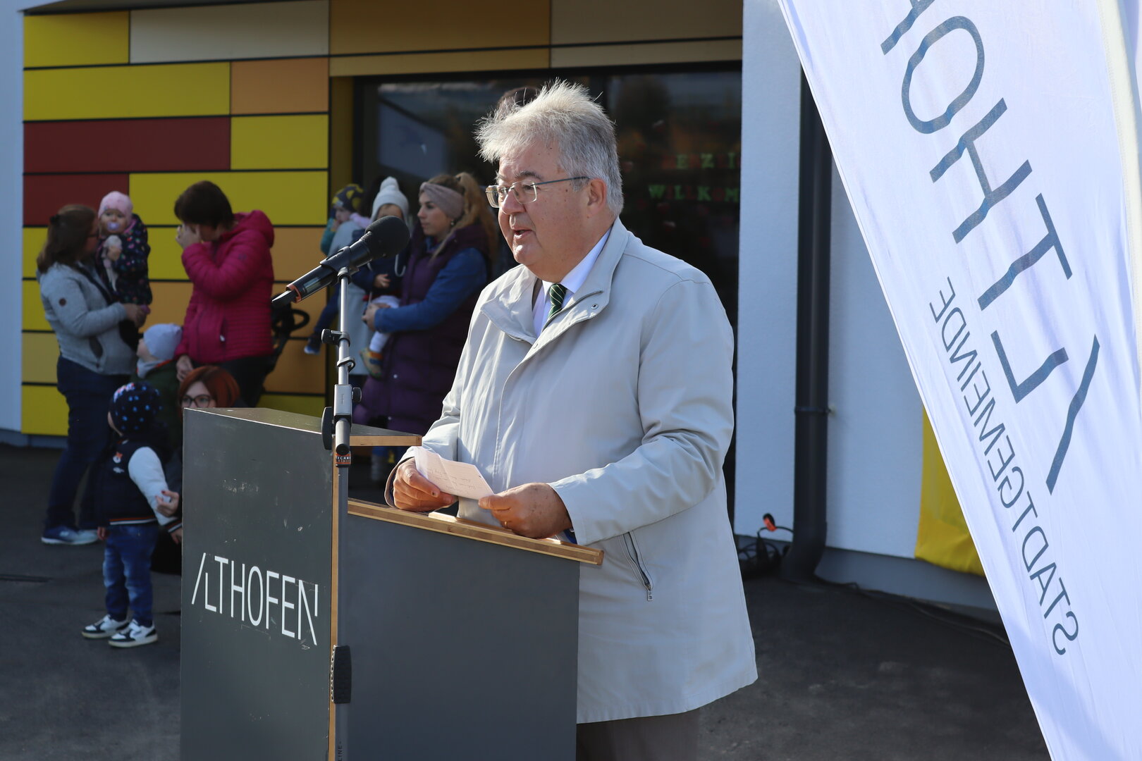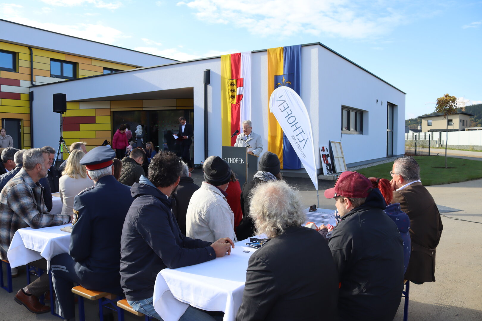 „Krumfelden: Eine Erfolgsgeschichte erreicht mit der heutigen Eröffnung der Kinderbetreuungseinrichtung ihren vorläufigen Höhepunkt“, so bezeichnete Stadtamtsleiter Hubert Madrian die offizielle Eröffnung der beiden neuen Kindergartengruppen und der zusätzlichen Kindertagesbetreuungsgruppe im stetig wachsenden Neubaugebiet Krumfelden. Der Neubau, der nach den Plänen des Althofener Architekten Günther Telsnig in moderner Holzbauweise errichtet wurde, konnte in Rekordzeit realisiert werden.