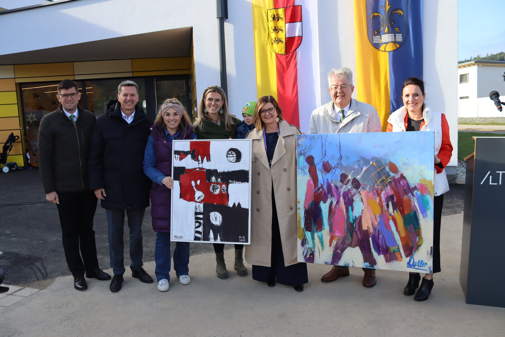 Zukunftsweisender Ausbau für Familien: In Althofen-Krumfelden wurde heute nach nur fünfmonatiger Bauzeit die neue Kinderbetreuungseinrichtung offiziell eröffnet. Zugleich wurde das Kunstprojekt „Meilensteine“ – gestaltet von vier Bildhauern – seiner Bestimmung übergeben.