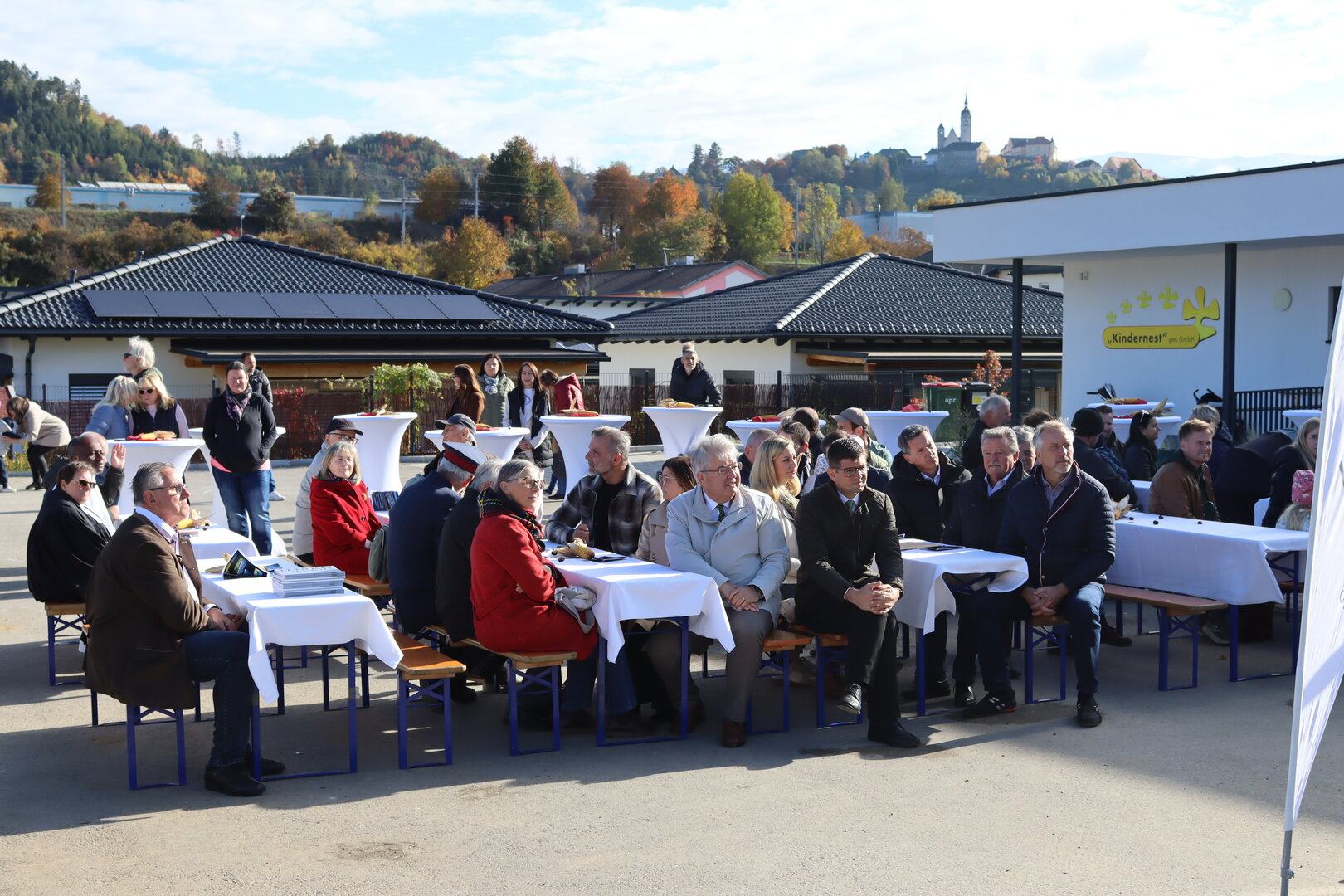1.200 Menschen wohnen derzeit in diesem Stadtteil, allein über 370 in unmittelbarer Umgebung der Neubauten. „In absoluter Rekordzeit konnte diese Kinderbetreuungseinrichtung errichtet werden – ein Tag der Freude und des Dankes“, betonte Bürgermeister Walter Zemrosser beim Festakt. Der Neubau sei eine vorausschauende Investition in die Zukunft und berücksichtige bereits jetzt die ab 2027 geplante Reduktion der Gruppengrößen in Kärntens Kinderbetreuungseinrichtungen. Claudia Untermoser, Geschäftsführerin der Kindernest gem. GmbH, hob in ihrer Festrede die „hervorragende Zusammenarbeit zwischen Stadtgemeinde, Land Kärnten und Trägerorganisation“ hervor.