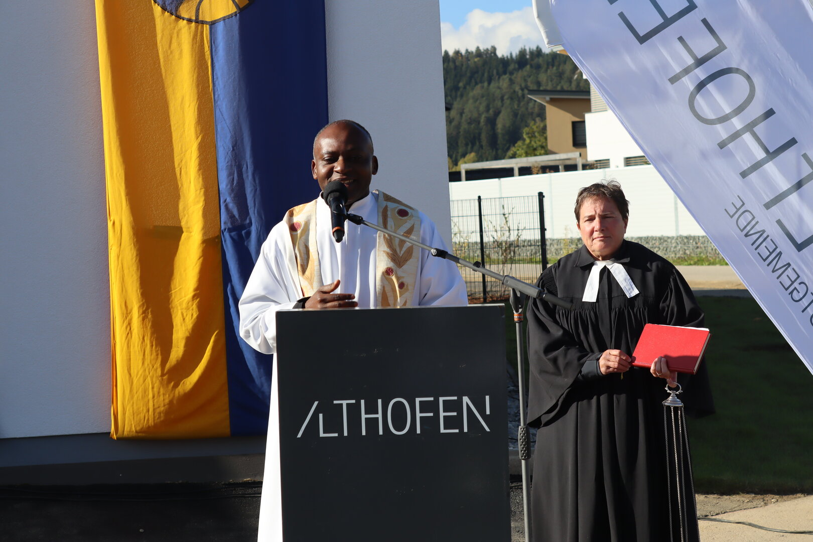 Die Segnungen des Gebäudes und der „Meilensteine“ nahmen Stadtpfarrer John Opara und evangelische Pfarrerin Renate Moshammer vor.