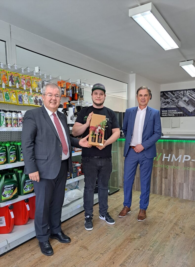Bürgermeister Walter Zemrosser ließ es sich nicht nehmen, Hendrik Pleschberger einen Besuch abzustatten. Dabei wünschte der Bürgermeister dem engagierten Neo-Unternehmer viel Erfolg und gute Geschäfte.