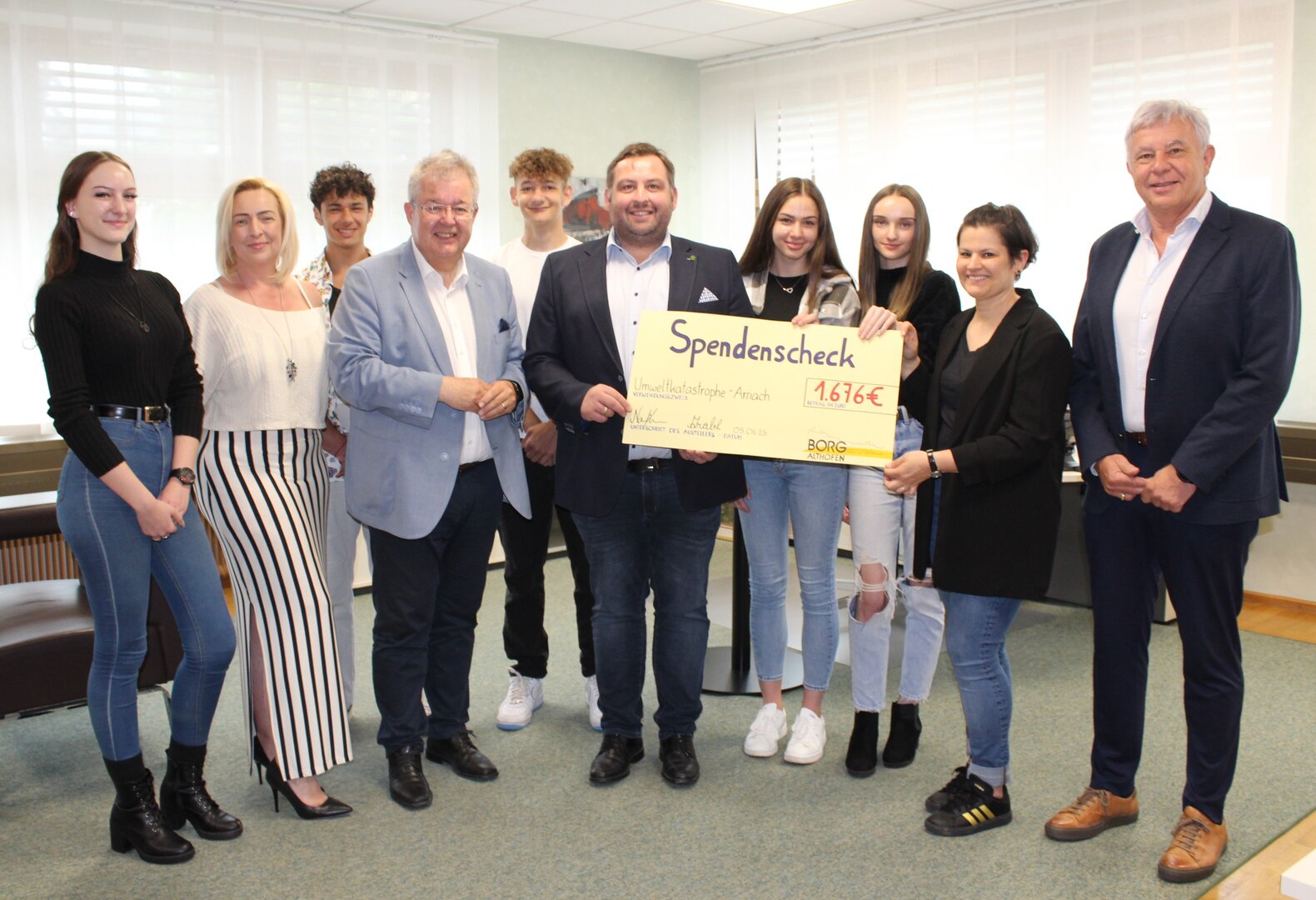 Großartige Aktion der Schülerinnen und Schüler des BORG „Auer von Welsbach“: Die Schülerinnen und Schüler stellten nicht nur einen sensationellen Borgball auf die Beine, sie stellten sich auch in den Dienst der guten Sache. So spendeten sie einen Teil des Kartenvorverkaufes an die Opfer der Unwetterkatastrophe in Arriach. Gestern übergaben die Schülerinnen und Schüler im Rathaus Althofen 1.676 Euro an den Arriacher Bürgermeister Gerald Ebner. „Das Unwetter suchte am 29. Juni 2022 Arriach heim und richtete innerhalb kürzester Zeit ein Schadensvolumen von 25 Millionen Euro an“, dankte Bürgermeister Ebner im Namen der Bevölkerung für die Spende. „Wir können sehr stolz auf unsere Jugend sein“, zeigte sich Althofens Bürgermeister Walter Zemrosser über die karitative Geste begeistert.