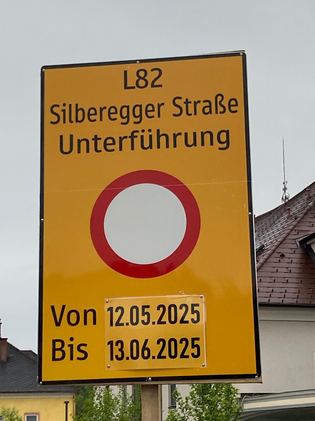 Weil die Straßenbezeichnung für Irritationen sorgt, zur Erklärung: Seitens der Baufirma wurde die Gemeindestraßenbezeichnung vernachlässigt und die Landesstraßenbezeichnung L82 Silberregger Straße herangezogen.