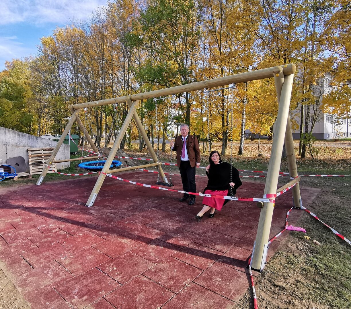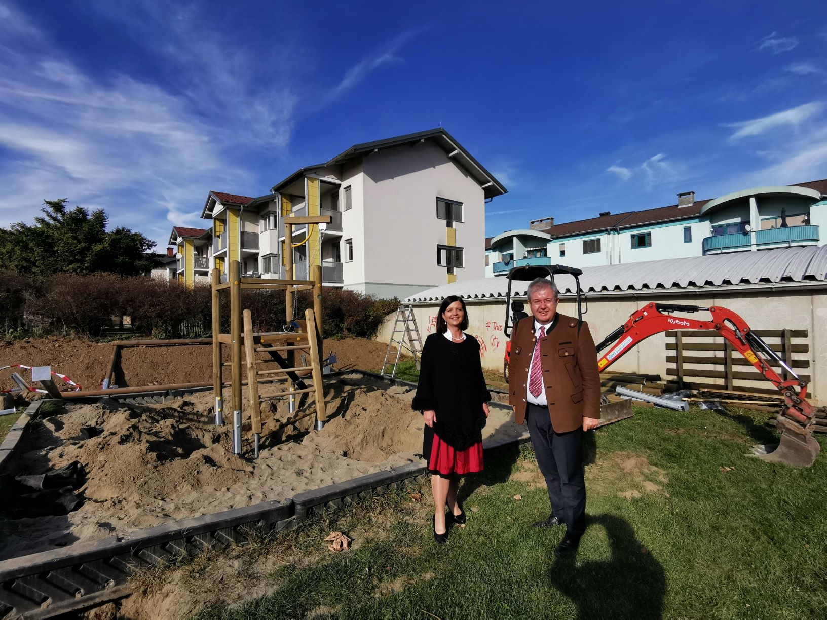 Keine Spielzeugbagger sondern echte Bagger rollen am Spielplatz im Bunsenweg – die Neugestaltung des Spielplatzes schreitet voran. Bei einem Lokalaugenschein haben Bürgermeister Walter Zemrosser und Vize-Bürgermeisterin Doris Hofstätter schon die neue Schaukel getestet. In wenigen Tagen sind die Bauarbeiten abgeschlossen und der neue, schöne Spielplatz im Bunsenweg gehört wieder ganz den Kindern.