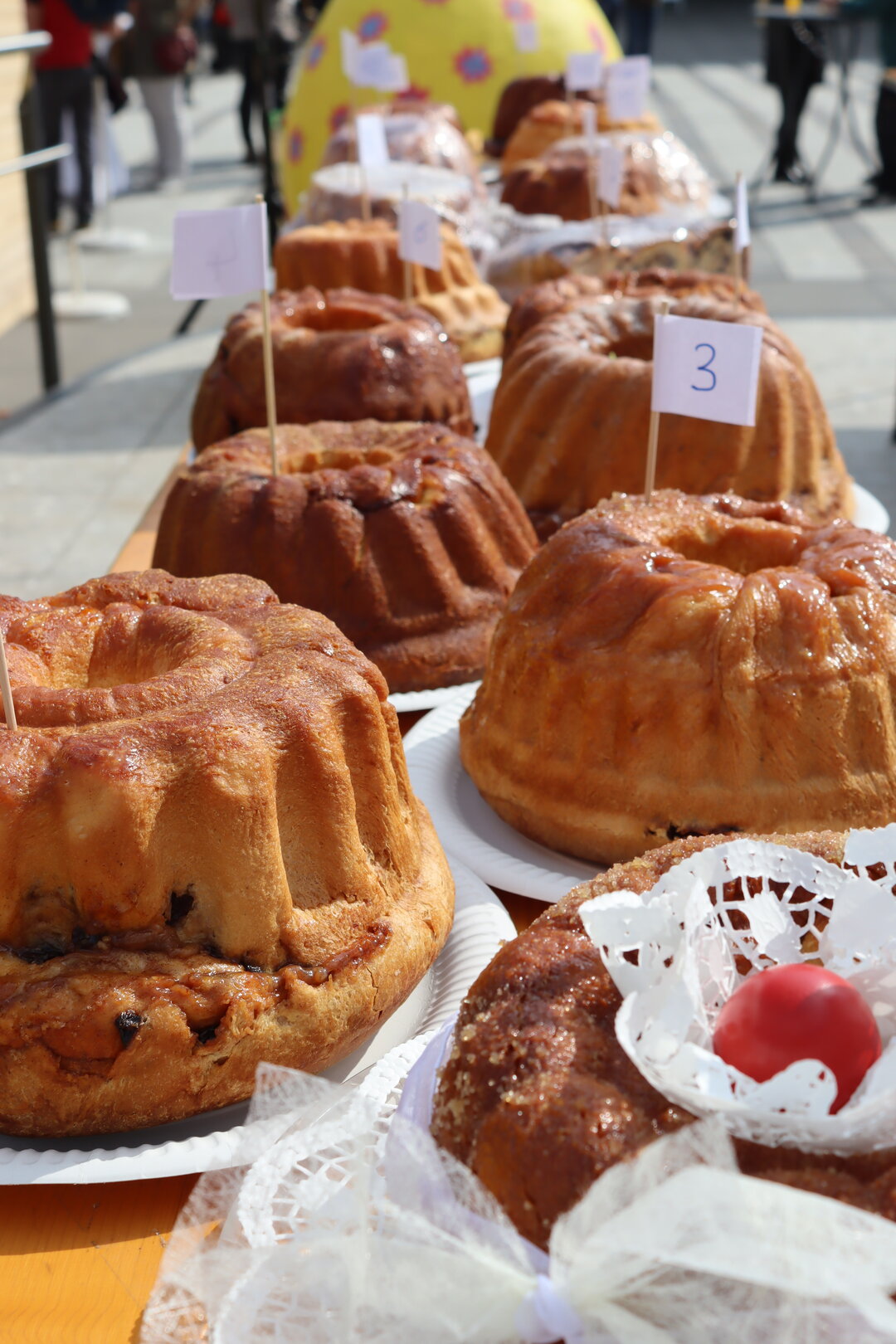 21 Teilnehmende brachten das österliche Gebäck zur Verkostung in den Stadtpark. Für ihre Mühen erhielten alle Bäckerinnen und Bäcker einen Althofener Taler im Wert von 25 Euro. Die Jury, bestehend aus dem Kärntner Bäcker-Innungsmeister Martin Vallant, Vize-Bürgermeisterin Doris Hofstätter, Stadtrat Wolfgang Leitner, Gemeinderätin Silvia Zeißler, Ostermarkt-Koordinator Gernold Kloiber sowie WOCHE St. Veit-Geschäftsstellenleiter Christopher Isopp und Redakteurin Astrid Siebert, prüfte jeden Reindling genau auf Aussehen, Geschmack, Fülle und Co. Redakteurin Katja Pagitz unterstütze tatkräftig die Durchführung des kulinarischen Wettbewerbes.
