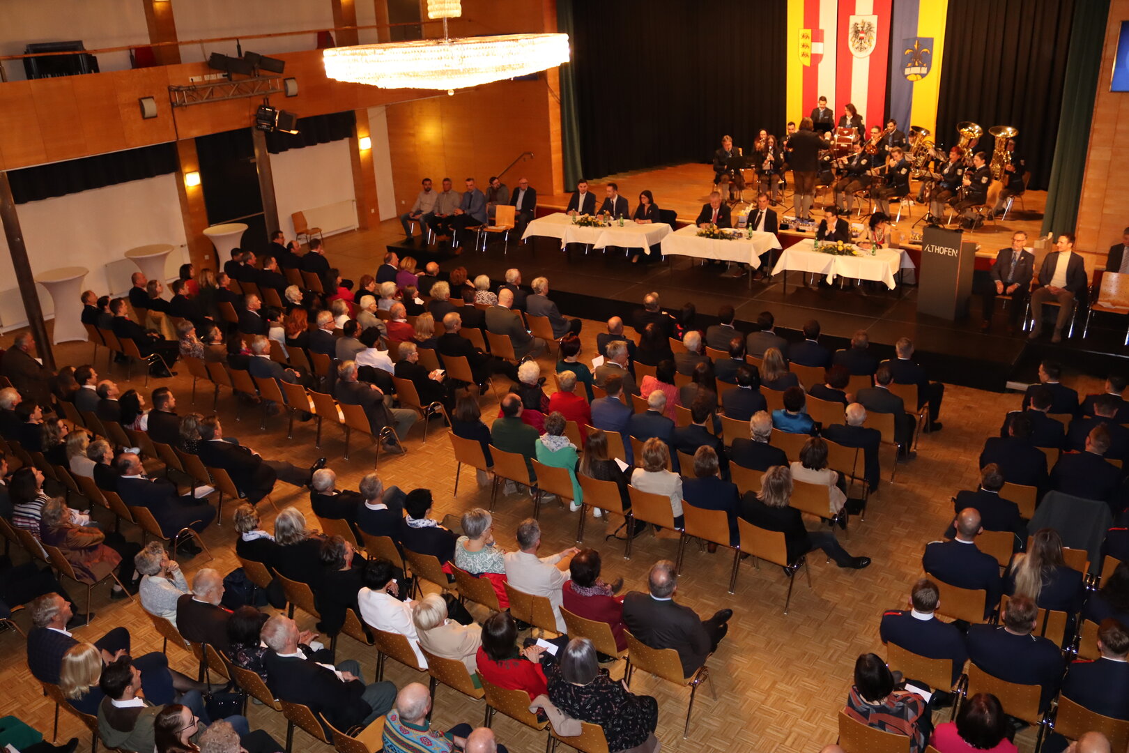 Das Kulturhaus Althofen war Austragungsort einer besonders würdevollen Veranstaltung. Die Stadtgemeinde Althofen verlieh vergangenen Donnerstag 86 verdienten Bürgerinnen und Bürgern Ehrenzeichen und Ehrennadeln. Den Wappenring in Gold erhielt Kommerzialrat Ing. Gerd Tilly.
