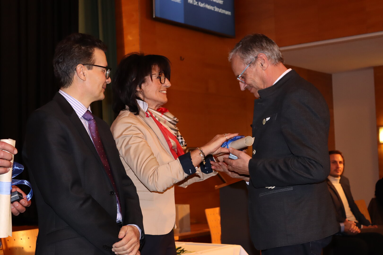 Ehrennadel in Gold für besondere Verdienste auf wissenschaftlichem Gebiet: Dr.in Waltraud Bergmann, HR Dipl.-Ing. Gerhard Luft, Mag. Franz Moser, Oberstudienrätin, Mag.a Waltraud Neuwirther, Militärdekan Dr. Christian Thomas Rachlé, Dr. Amod Sagar, Josef Schaffer, Oberstudienrätin, Mag.a Romana Schmiedmeier, Gert Schneider