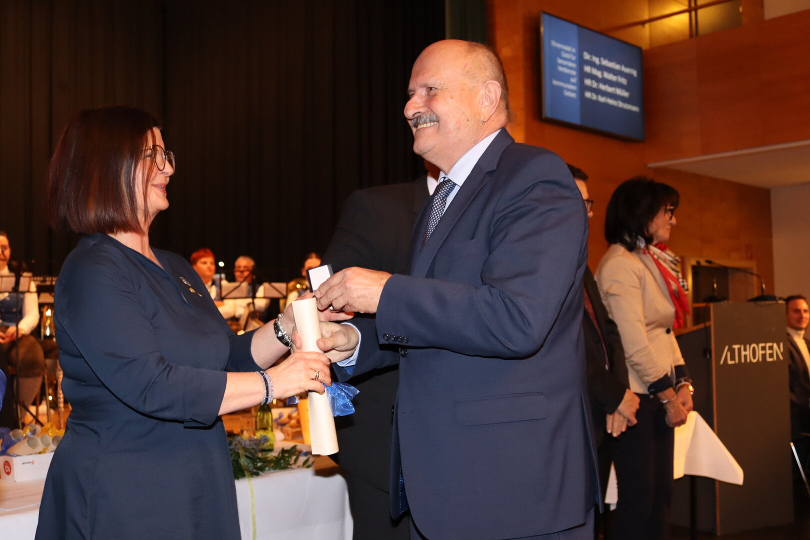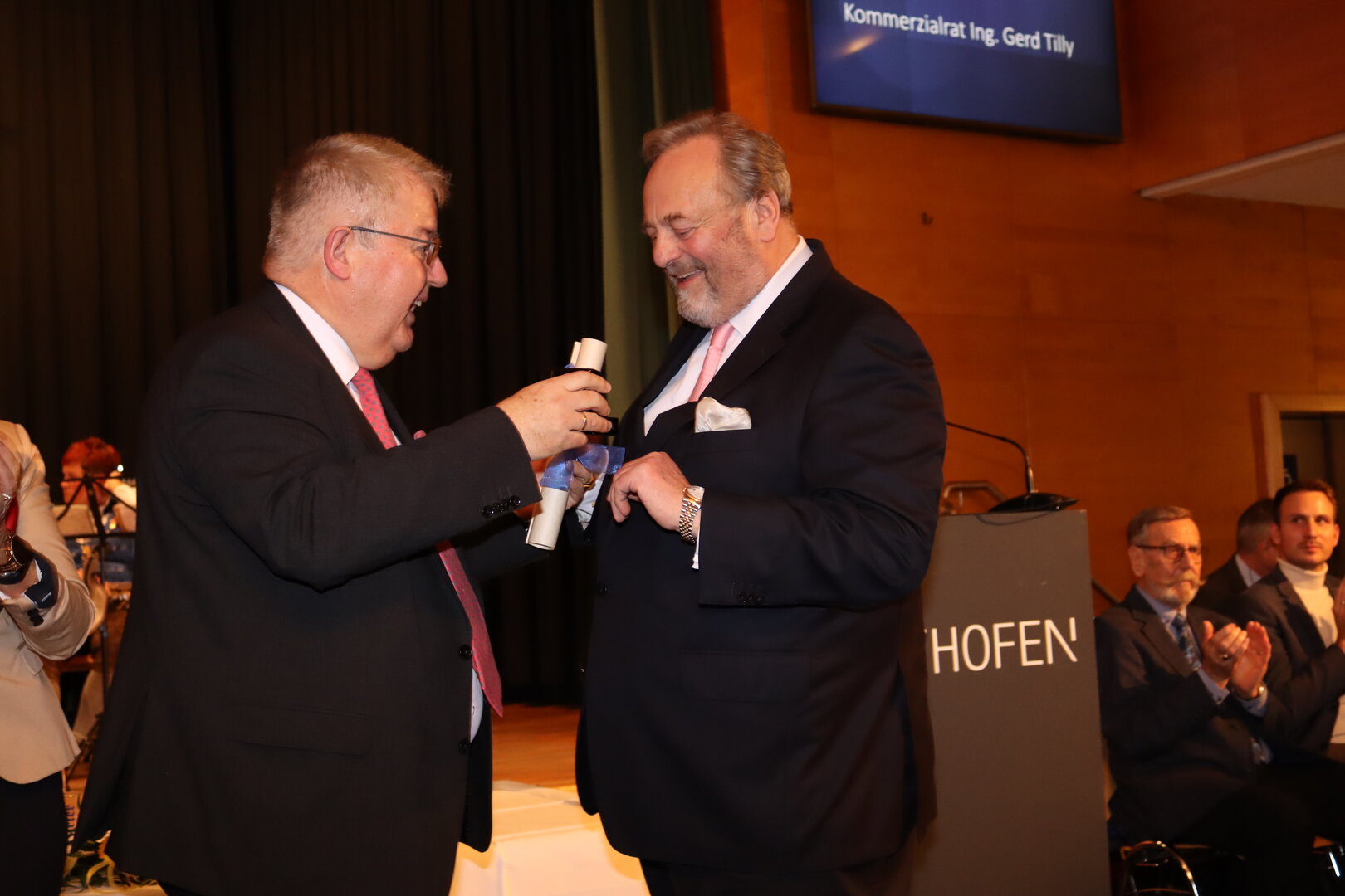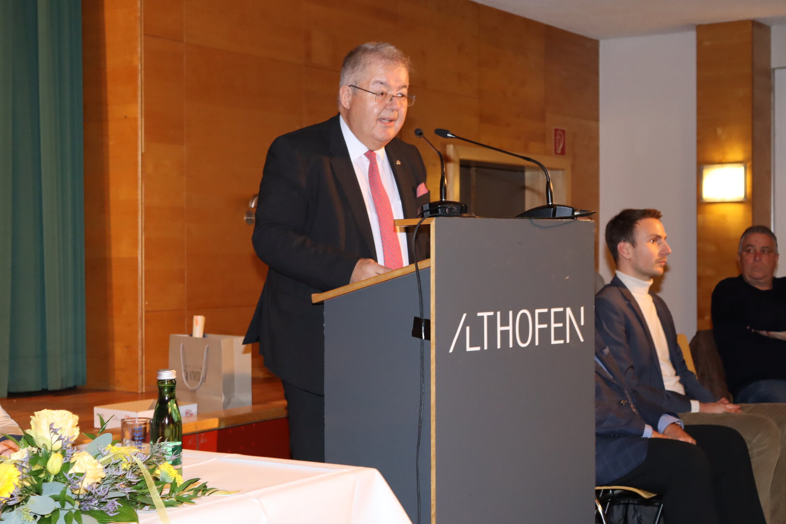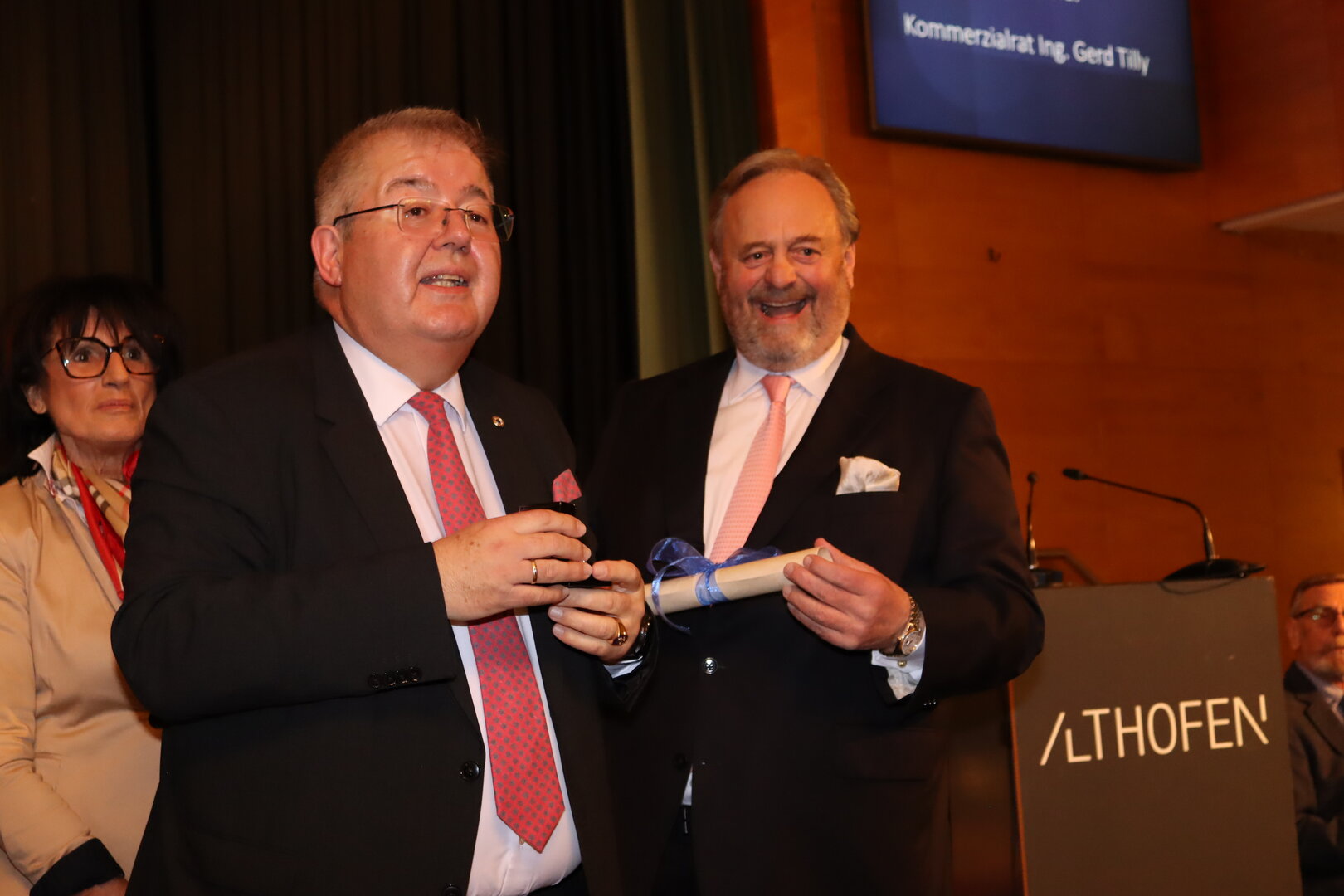 Einer der Höhepunkte des Abends war die feierliche Überreichung des Wappenringes in Gold an Kommerzialrat Ing. Gerd Tilly. In seiner Dankesrede zeigte sich der Unternehmer tief bewegt und sprach nicht nur den politisch Verantwortlichen der Stadtgemeinde Althofen seinen Dank aus, sondern auch seinen Mitarbeiterinnen und Mitarbeitern, die maßgeblich zu seinem Erfolg beigetragen haben.