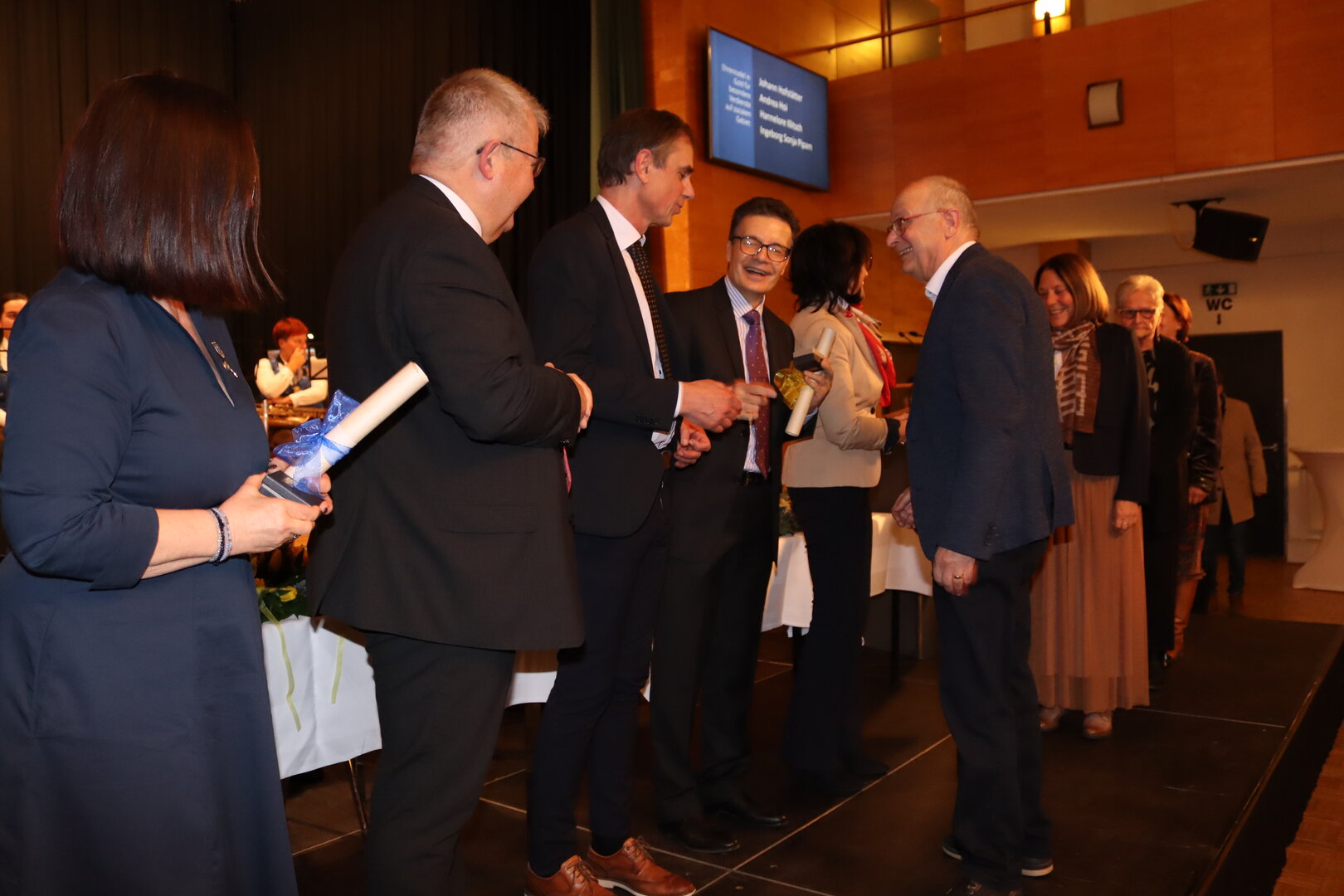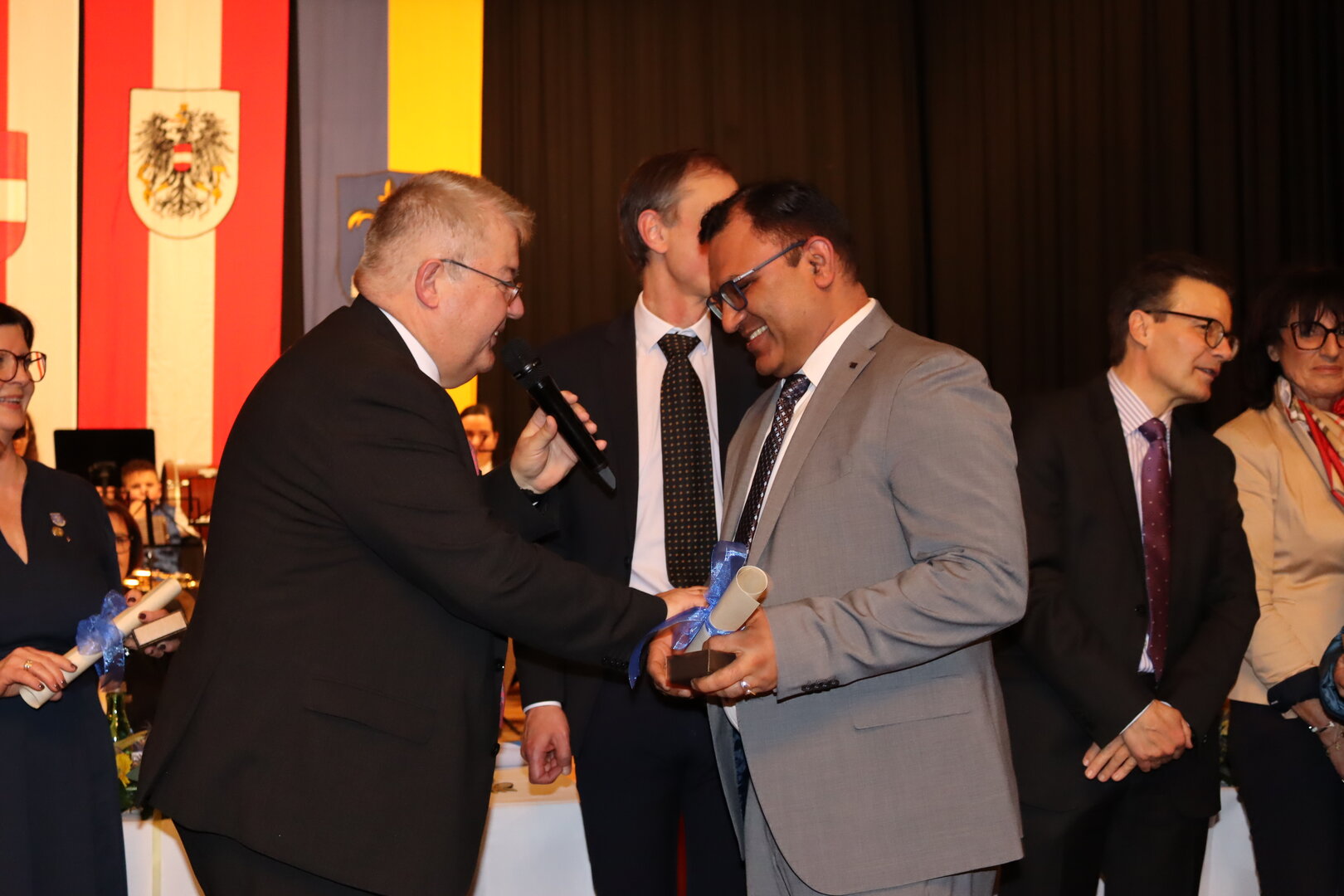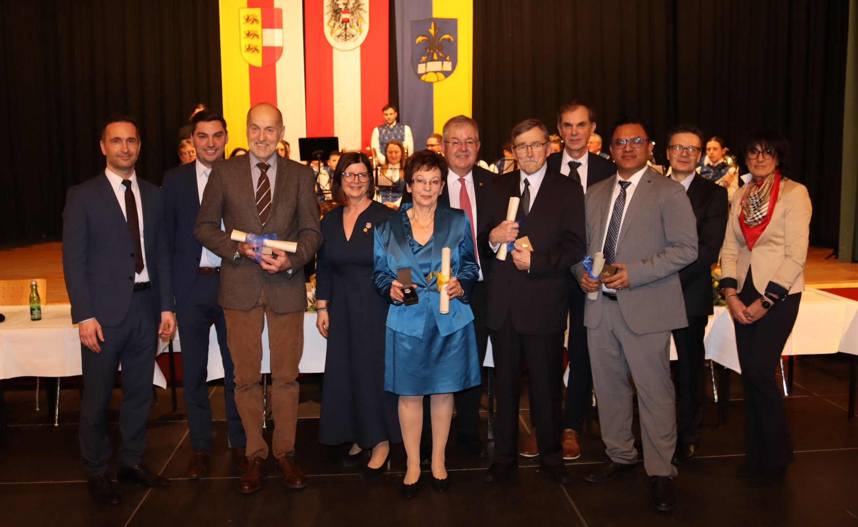 86 Persönlichkeiten wurden im Beisein zahlreicher Gäste auf die Bühne gebeten und erhielten aus den Händen von Bürgermeister Walter Zemrosser, der auch durch den Abend führte, der Vizebürgermeister Doris Hofstätter und Michael Baumgartner, der Stadträte Wolfgang Leitner und Philipp Strutz, Gemeinderätin Silvia Zeißler sowie Stadtamtsleiter Hubert Madrian die Auszeichnungen. Vergeben wurden Ehrenzeichen in Bronze und Silber für besondere Verdienste im Ehrenamt, Sportehrennadel in Gold für herausragende sportliche Leistungen sowie Ehrennadel in Gold für besondere Verdienste auf kommunalem, sozialem, wirtschaftlichem, kulturellem, wissenschaftlichem, medizinischem und sportlichem Gebiet.