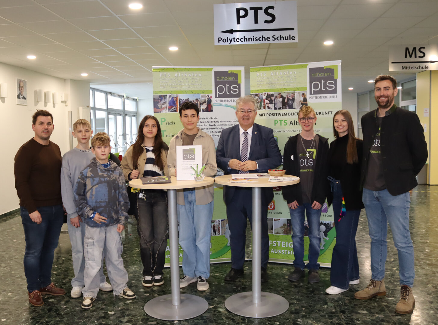 Auch Bürgermeister Walter Zemrosser besuchte den Tag der offenen Tür und gratulierte Schulleiter Mark Steinberger und seinem engagierten Team zu ihrem großartigen Einsatz und ihrer wertvollen Arbeit für die Jugendlichen.
