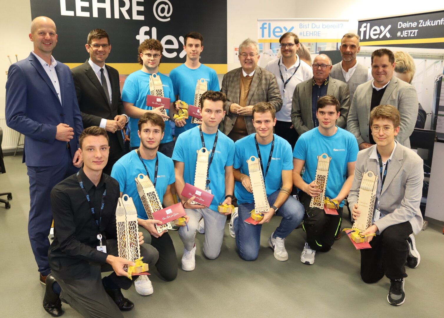 Vor Kurzem stellten sich LH-Stv. Martin Gruber und Bürgermeister Walter Zemrosser mit Präsenten bei FLEX ein, um den Lehrlingen zu gratulieren, die den ersten Platz bei einem Landeslehrlingswettbewerb erreicht haben beziehungsweise bei einem internationalen Bewerb mitgemacht haben. Herzliche Gratulation an die ausgezeichneten Lehrlingen Felix Perkonig, Kai Dzino, Dominik Ruhdorfer, Florian Napetschnig, Anton Kudrin, Romeo Oltean, Silviu Winter, Marcel Obersteiner und Lukas Unterhuber.