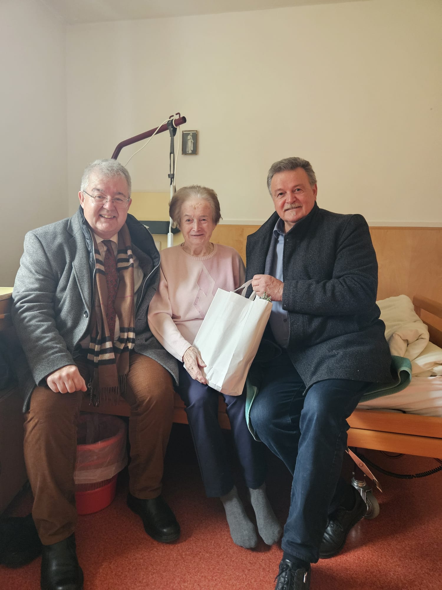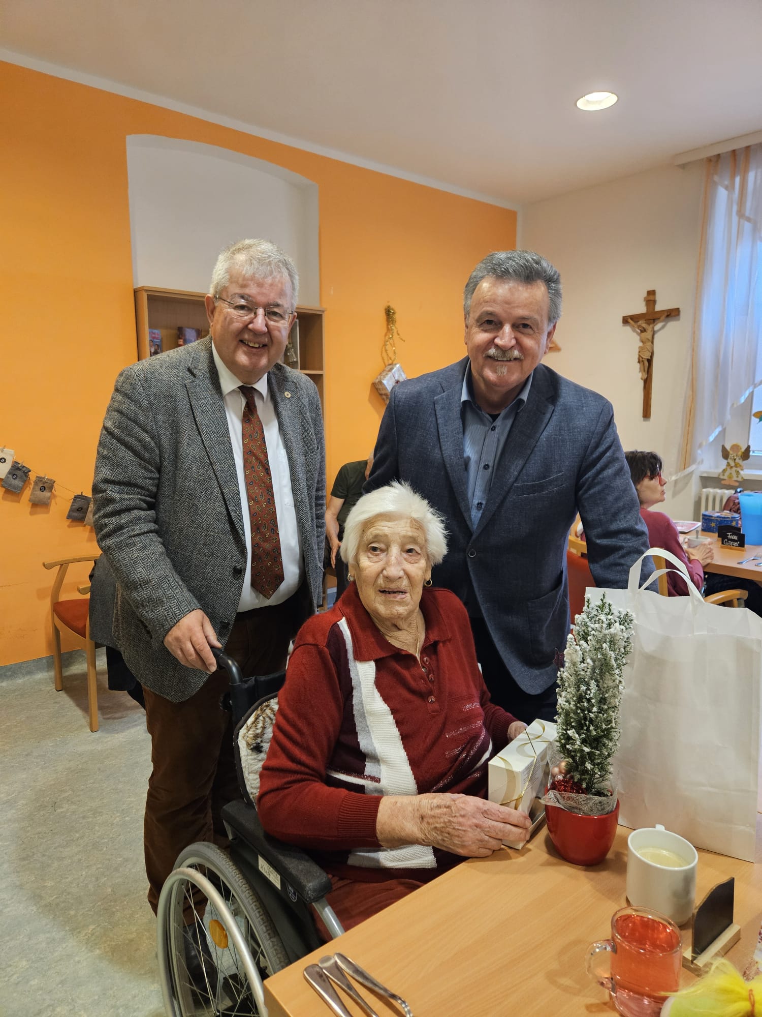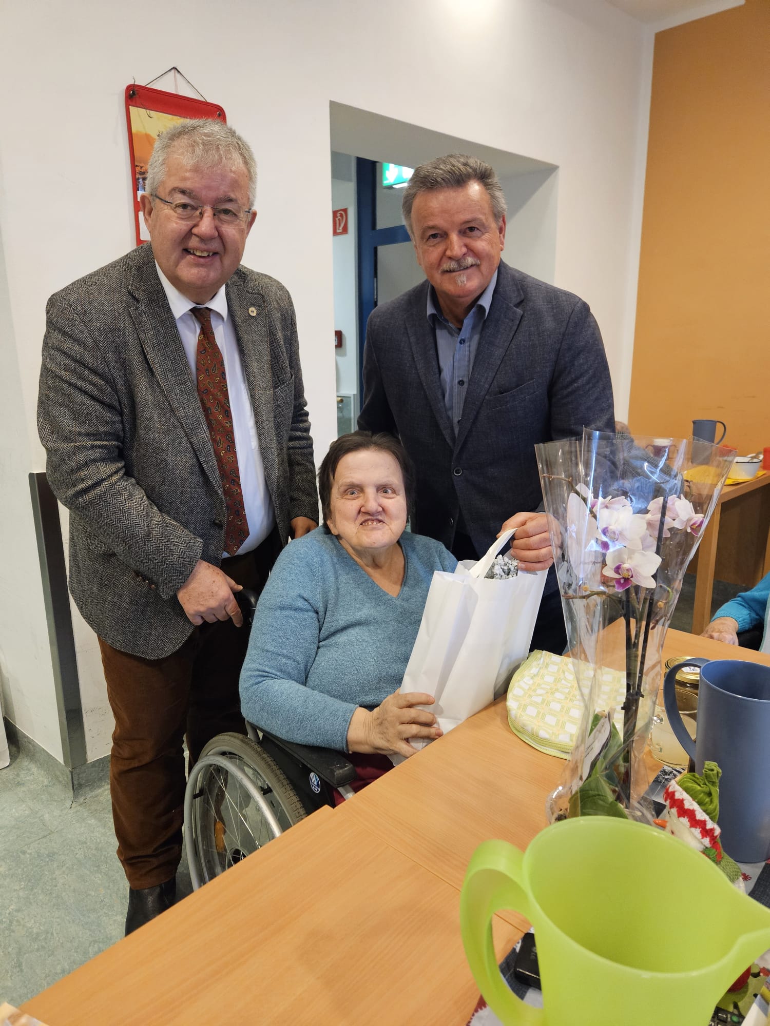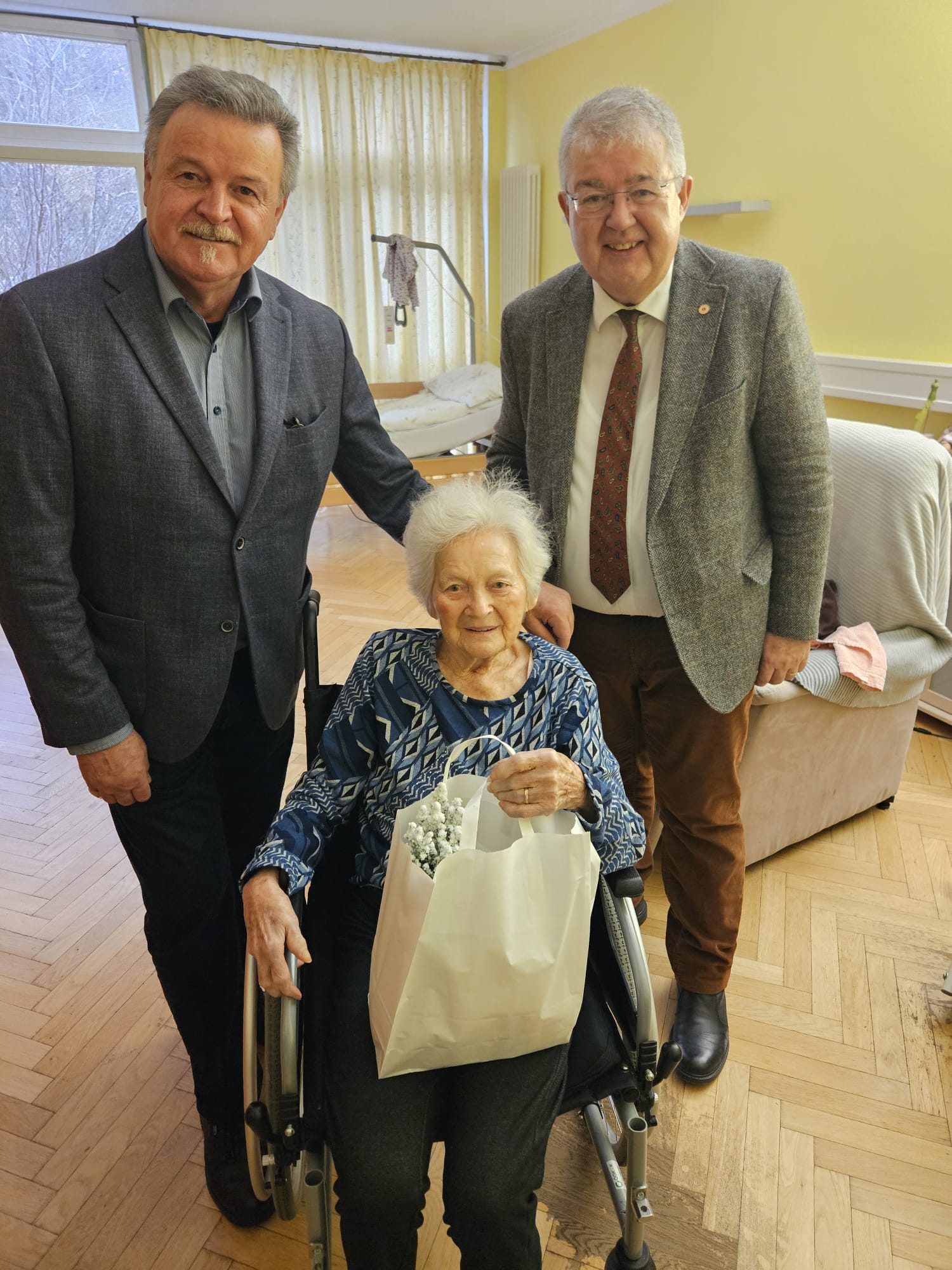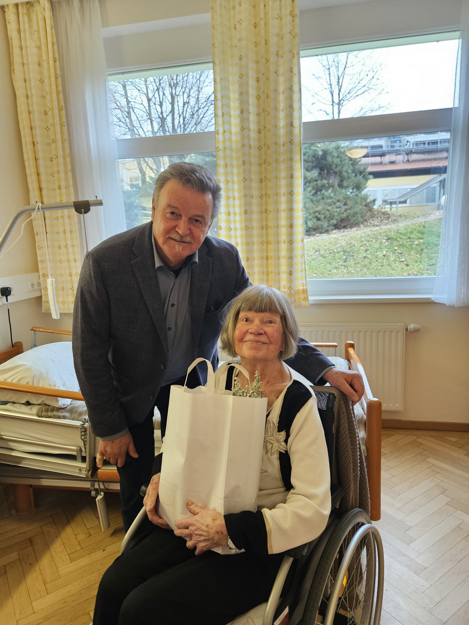 Eine schöne Weihnachtsaktion des Sozialreferenten der Stadtgemeinde Althofen: Sozialstadtrat Klaus Trampitsch besuchte wie jedes Jahr kurz vor dem Fest ehemalige Bewohnerinnen und Bewohner Althofens, die inzwischen in umliegenden Pflegeheimen leben – heuer in Begleitung von Bürgermeister Walter Zemrosser. Mehr als 40 Personen freuten sich über liebevoll überbrachte Weihnachtsgrüße und über ein kleines Geschenk in Form von Keksen, Honig und einer kleinen Zimmertanne. Persönliche Gespräche machten den Besuch zu etwas Besonderem.