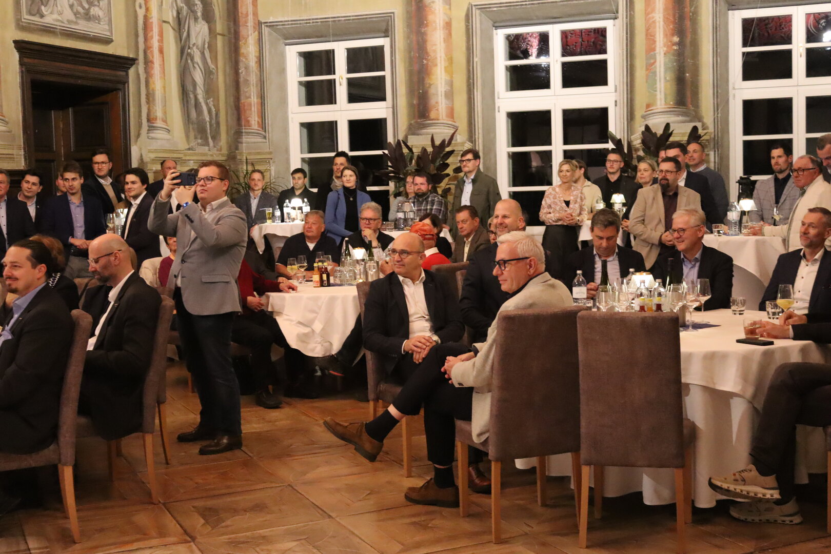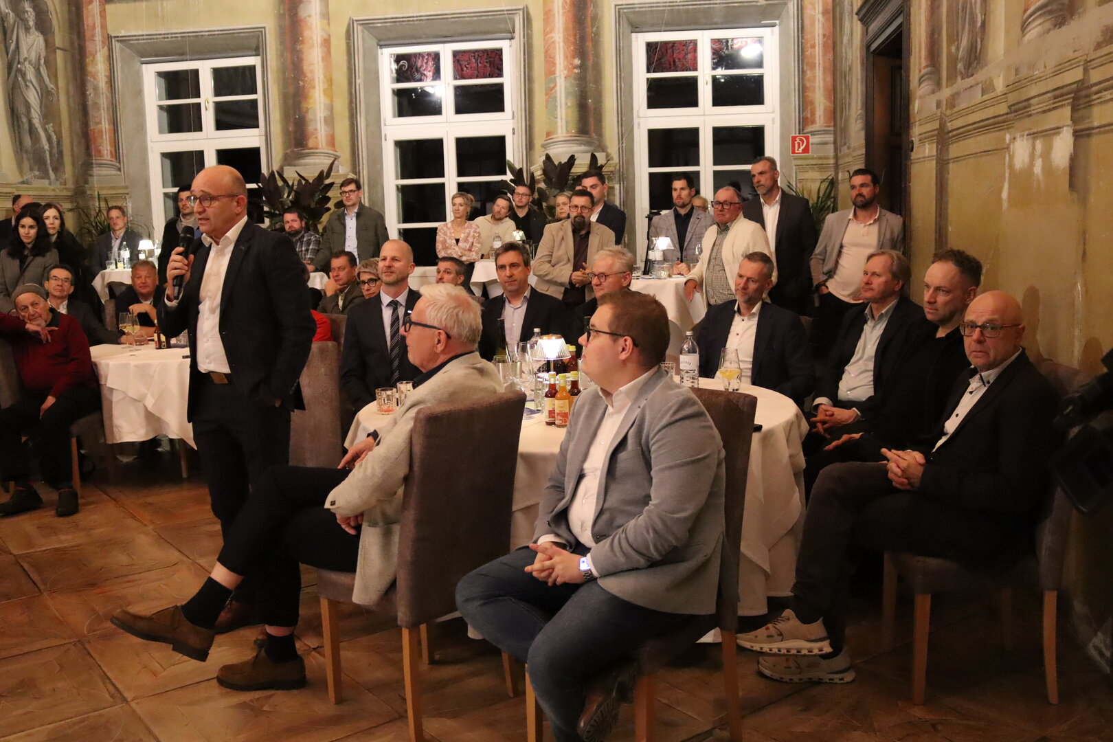 Veranstaltungsort war das Schloss Töscheldorf, wo sich eine große Anzahl an Unternehmerinnen und Unternehmern sowie interessierte Besucherinnen und Besucher aus dem gesamten Bezirk St. Veit einfanden. Nach der Begrüßung durch Bürgermeister Walter Zemrosser und Vizebürgermeister Michael Baumgartner sowie einleitenden Worten von Landeshauptmann-Stellvertreter Martin Gruber folgte die Keynote des Ministers. In seiner Rede ging Hattmannsdorfer auf aktuelle wirtschaftspolitische Themen ein und beleuchtete Herausforderungen und Chancen für die heimische Wirtschaft. Im Anschluss daran nutzte das Publikum die Gelegenheit, im Rahmen einer Fragerunde direkt mit dem Minister in Dialog zu treten. Dabei wurden vielfältige Anliegen und Fragestellungen eingebracht. Auch nach dem offiziellen Teil nahm sich der Minister Zeit, um persönlich mit den Gästen ins Gespräch zu kommen.