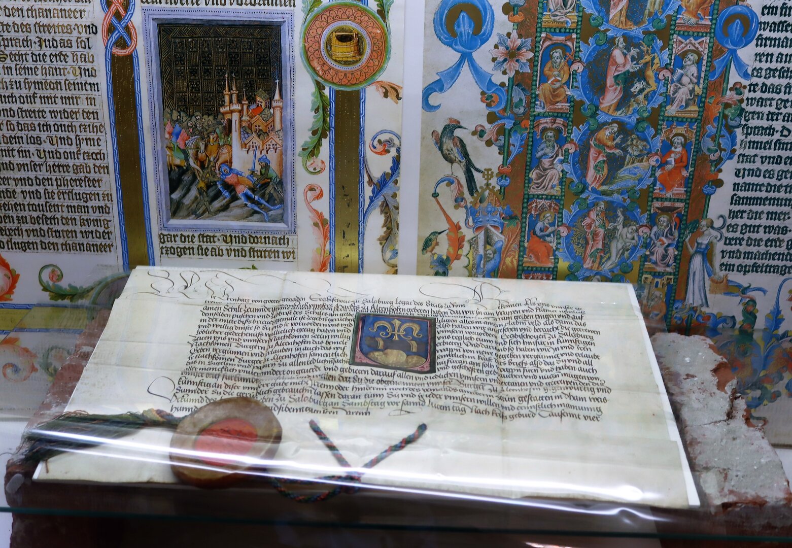 Eine Kostbarkeit konnte während der Festsitzung bewundert werden: Die Wappenurkunde vom 11. Dezember 1479. Sie ist das älteste erhaltene Kärntner Original mit Wappenbild. Diese besondere Leihgabe des Kärntner Landesarchives wurde im Kulturhaus von Kameraden der FF Althofen unter Kommandant Johann Delsnig bewacht. Umrahmt wurde die Festsitzung von der Stadtkapelle Althofen, Kapellmeister Armin Korak. Für die Bewirtung im Kulturhaus sorgten Mitarbeiterinnen und Mitarbeiter der Verwaltung sowie Schülerinnen und Schüler der Landwirtschaftlichen Fachschule Althofen. Um 22 Uhr erfolgte die Lichterprobe im neuen Stadtpark, bei dem Lichtplaner Wilhelm Egger das neue Lichtdesign am Hauptplatz vorstellte.
