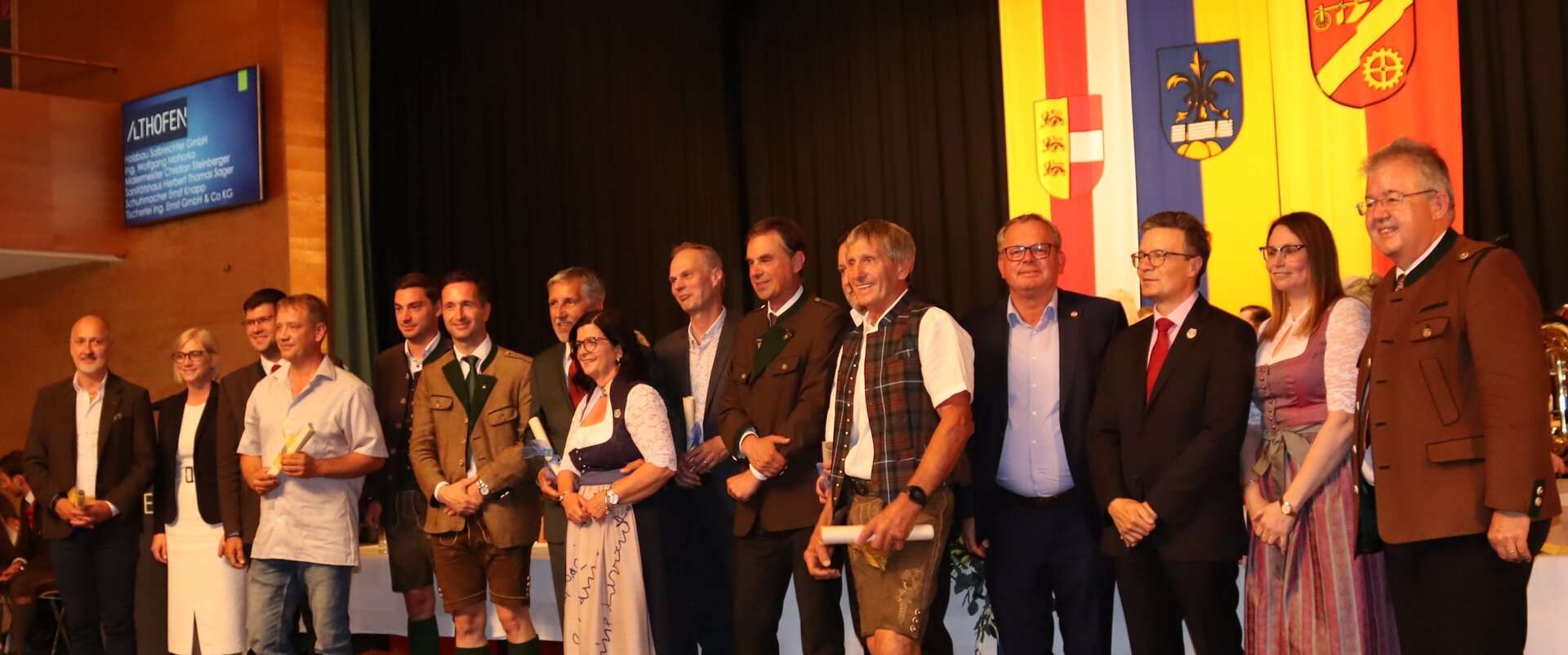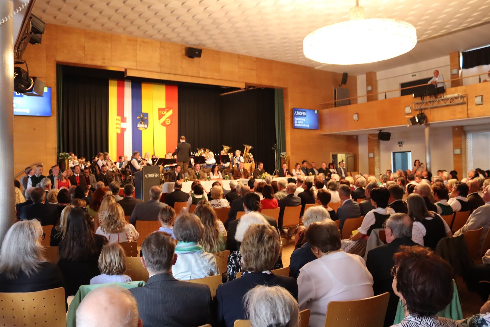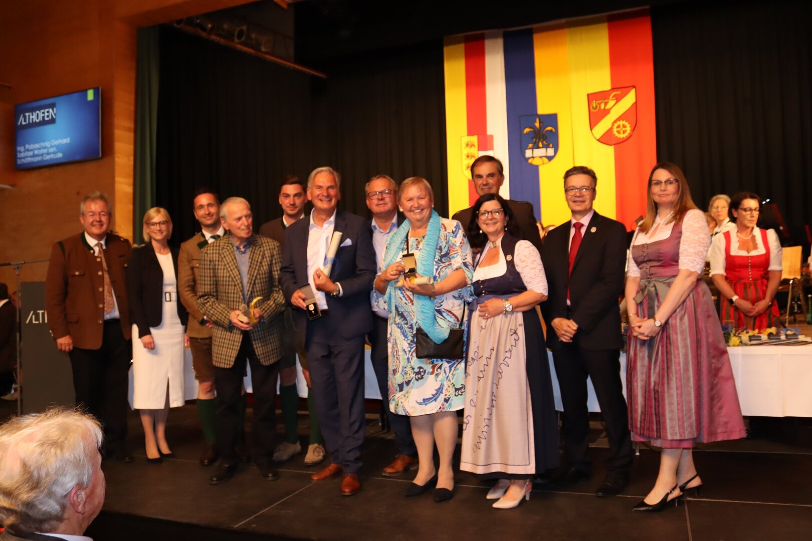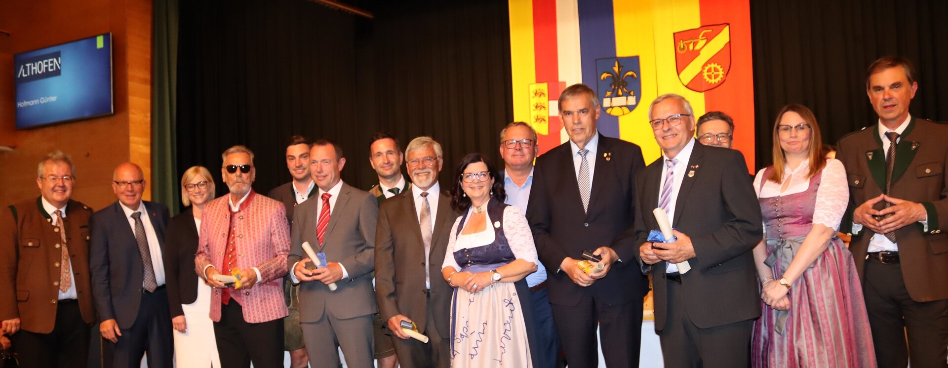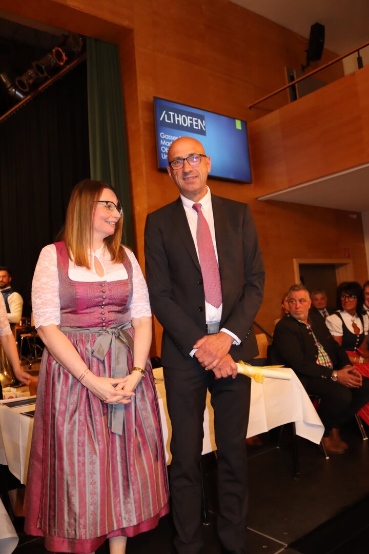 Vorne am Podium Platz genommen haben neben Bürgermeister Walter Zemrosser auch die Vize-Bürgermeister Doris Hofstätter und Michael Baumgartner, die Stadträte Philipp Strutz und Wolfgang Leitner, Gemeinderätin Corina Spendier sowie Stadtamtsleiter Hubert Madrian. Eröffnet wurde der Abend durch Bürgermeister Zemrosser, der auch die Moderation übernahm. Die Festrede hielt Alfred Ogris. Der damalige Landesarchiv-Direktor blickte in seiner Ansprache auf die Ereignisse 1993 zurück und gab einen Einblick in das heutige Althofen. Eine Grußbotschaft per Video übermittelte der Landeshauptmann von 1993, Christof Zernatto. Festansprachen hielten LH-Stv. Martin Gruber, NR Bgm. Klaus Köchl und Bezirkshauptfrau Claudia Egger-Grillitsch. Sie hoben in ihren Lobreden die Bedeutung der „Krappfeld-Metropole“ hervor. Martin Bernhard, Bürgermeister der Partnerstadt Tamm in Baden-Württemberg (Deutschland), überraschte mit der Ankündigung, dass es künftig in Tamm eine „Althofener Straße“ geben wird. Zudem würdigten die Fraktionssprecher Vize-Bürgermeisterin Doris Hofstätter, Stadtrat Wolfgang Leitner und Gemeinderätin Corina Spendier „ihre“ Stadt.