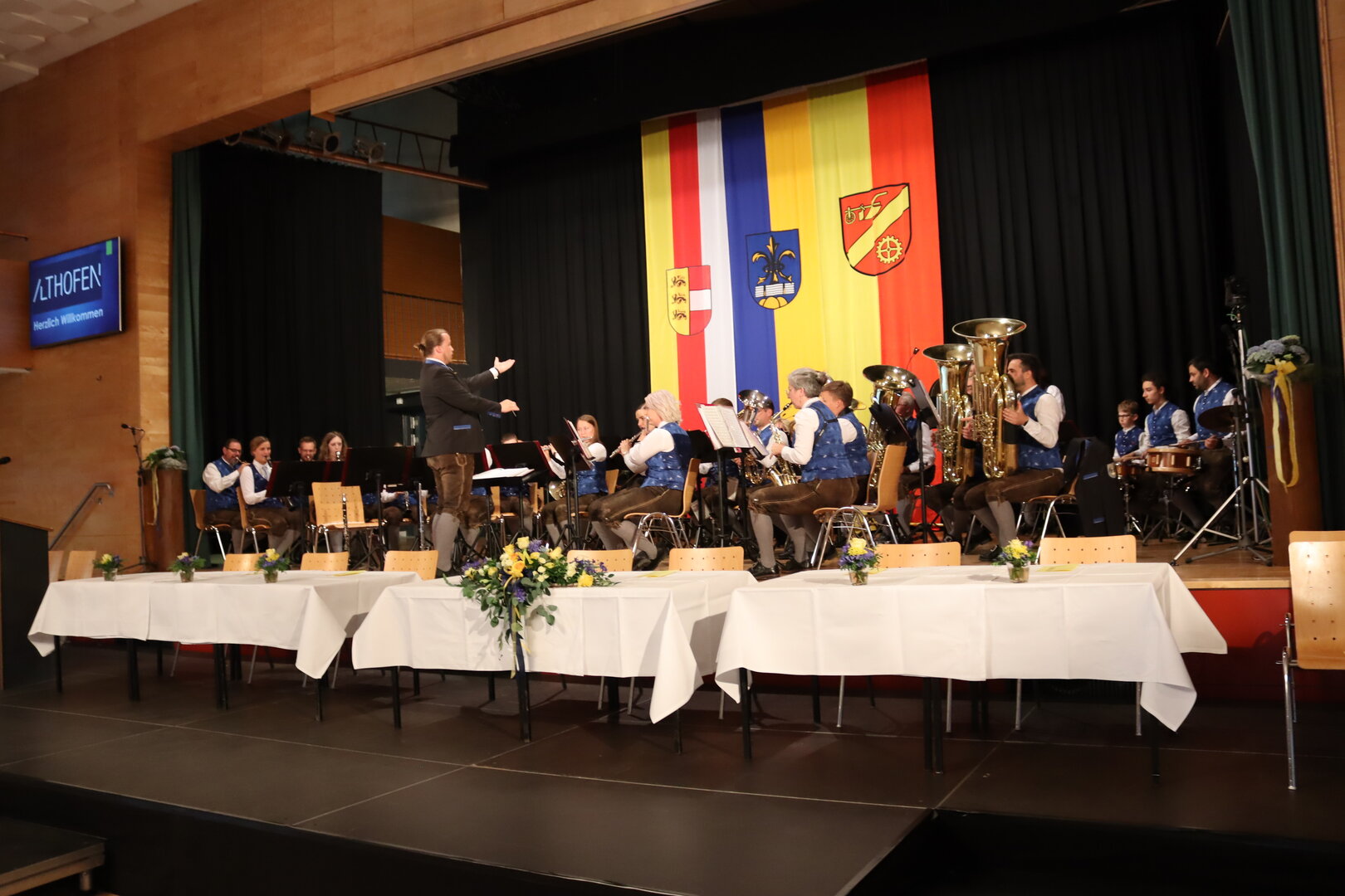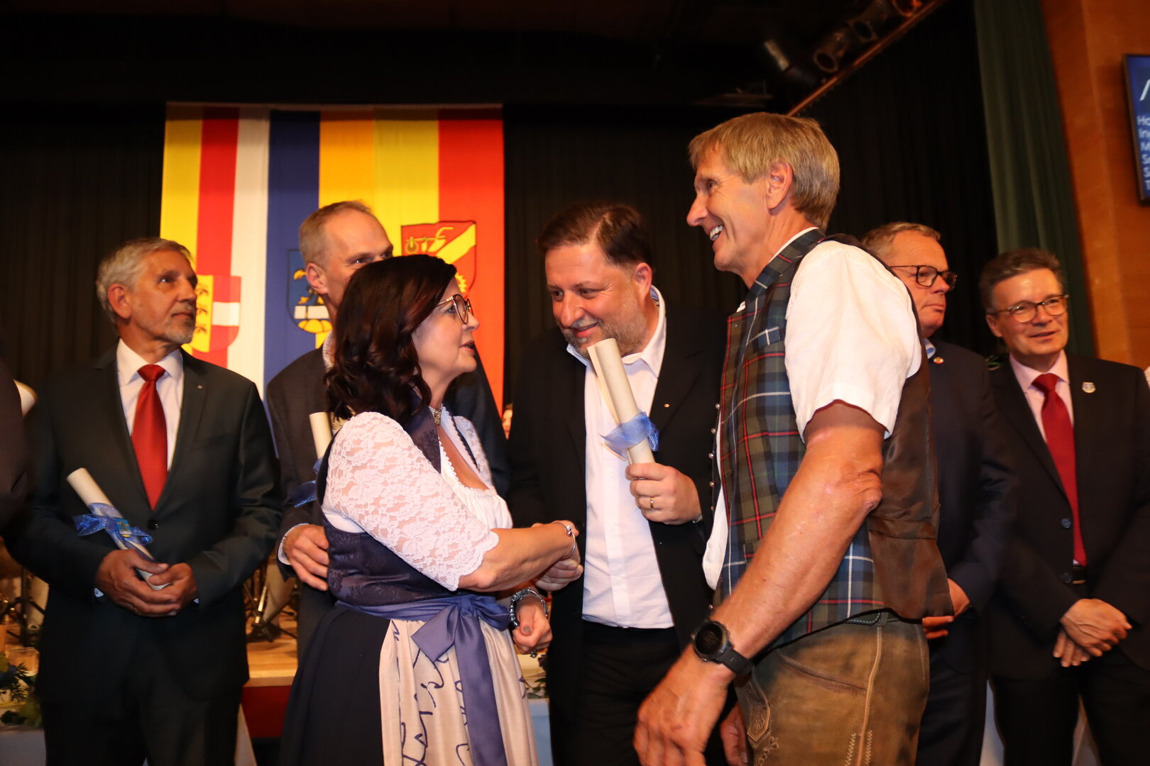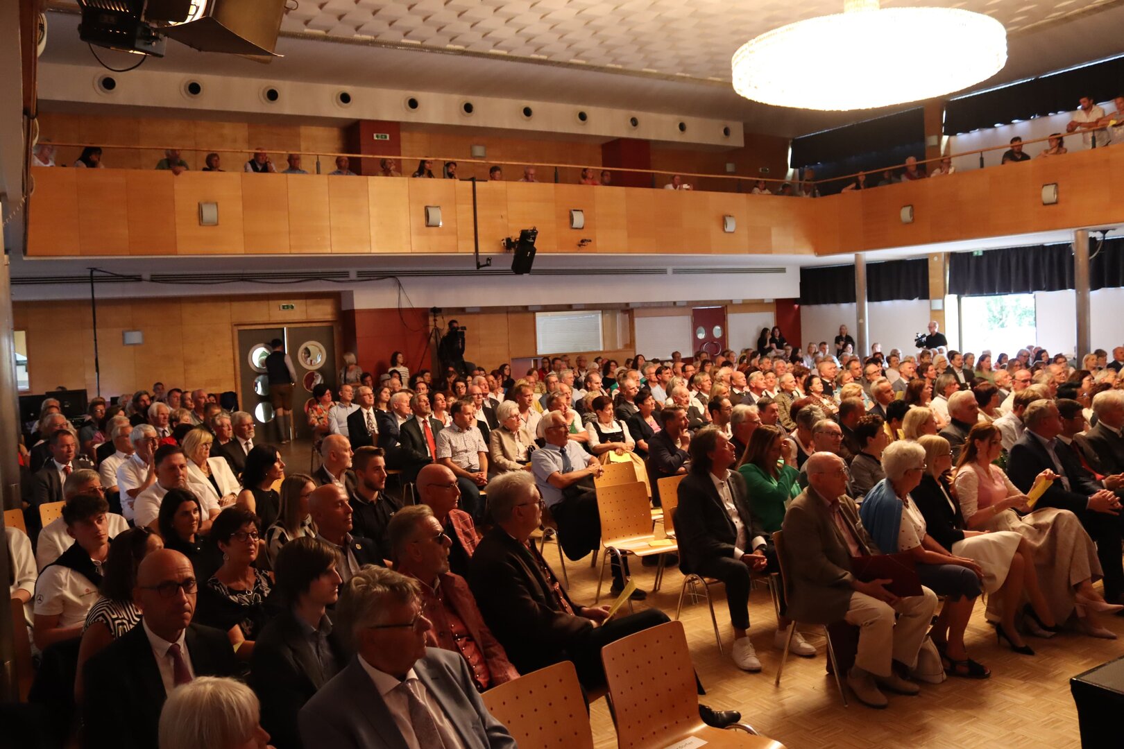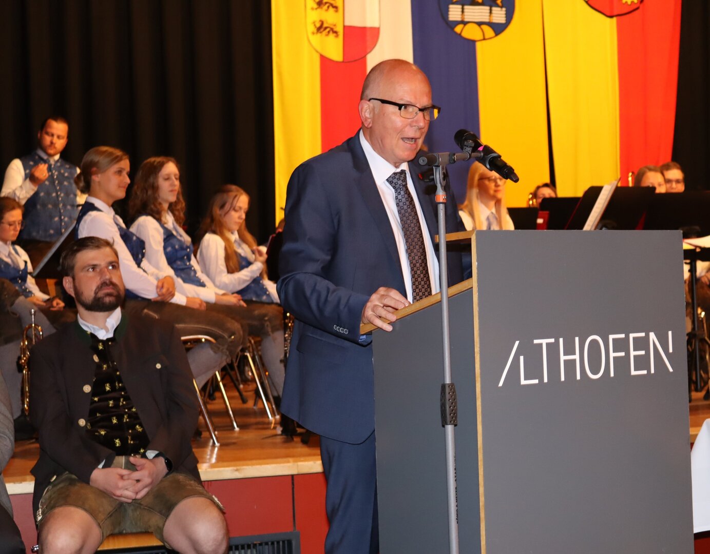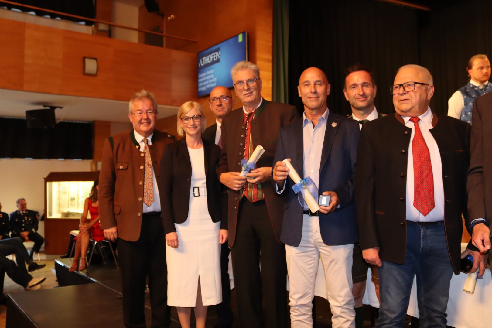 Vorne am Podium Platz genommen haben neben Bürgermeister Walter Zemrosser auch die Vize-Bürgermeister Doris Hofstätter und Michael Baumgartner, die Stadträte Philipp Strutz und Wolfgang Leitner, Gemeinderätin Corina Spendier sowie Stadtamtsleiter Hubert Madrian. Eröffnet wurde der Abend durch Bürgermeister Zemrosser, der auch die Moderation übernahm. Die Festrede hielt Alfred Ogris. Der damalige Landesarchiv-Direktor blickte in seiner Ansprache auf die Ereignisse 1993 zurück und gab einen Einblick in das heutige Althofen. Eine Grußbotschaft per Video übermittelte der Landeshauptmann von 1993, Christof Zernatto. Festansprachen hielten LH-Stv. Martin Gruber, NR Bgm. Klaus Köchl und Bezirkshauptfrau Claudia Egger-Grillitsch. Sie hoben in ihren Lobreden die Bedeutung der „Krappfeld-Metropole“ hervor. Martin Bernhard, Bürgermeister der Partnerstadt Tamm in Baden-Württemberg (Deutschland), überraschte mit der Ankündigung, dass es künftig in Tamm eine „Althofener Straße“ geben wird. Zudem würdigten die Fraktionssprecher Vize-Bürgermeisterin Doris Hofstätter, Stadtrat Wolfgang Leitner und Gemeinderätin Corina Spendier „ihre“ Stadt.