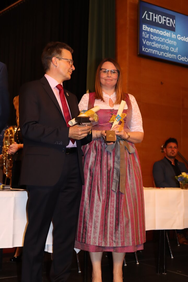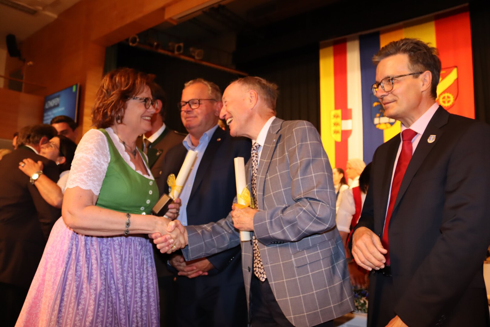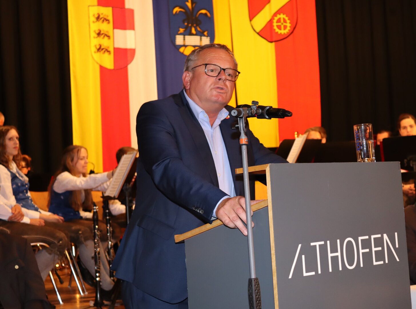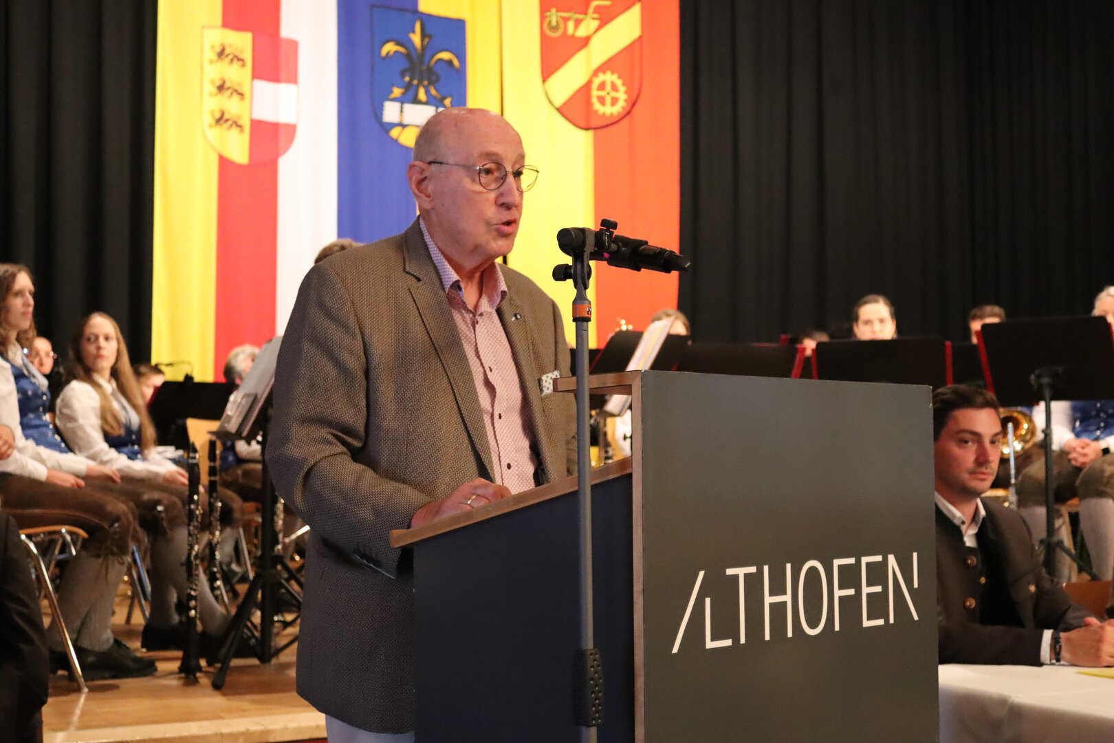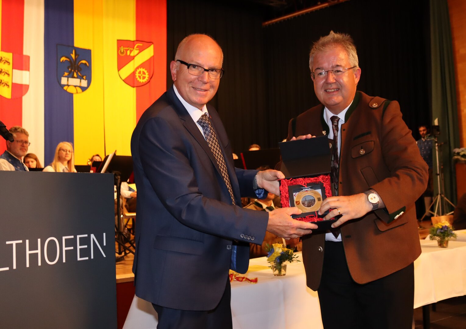 Vorne am Podium Platz genommen haben neben Bürgermeister Walter Zemrosser auch die Vize-Bürgermeister Doris Hofstätter und Michael Baumgartner, die Stadträte Philipp Strutz und Wolfgang Leitner, Gemeinderätin Corina Spendier sowie Stadtamtsleiter Hubert Madrian. Eröffnet wurde der Abend durch Bürgermeister Zemrosser, der auch die Moderation übernahm. Die Festrede hielt Alfred Ogris. Der damalige Landesarchiv-Direktor blickte in seiner Ansprache auf die Ereignisse 1993 zurück und gab einen Einblick in das heutige Althofen. Eine Grußbotschaft per Video übermittelte der Landeshauptmann von 1993, Christof Zernatto. Festansprachen hielten LH-Stv. Martin Gruber, NR Bgm. Klaus Köchl und Bezirkshauptfrau Claudia Egger-Grillitsch. Sie hoben in ihren Lobreden die Bedeutung der „Krappfeld-Metropole“ hervor. Martin Bernhard, Bürgermeister der Partnerstadt Tamm in Baden-Württemberg (Deutschland), überraschte mit der Ankündigung, dass es künftig in Tamm eine „Althofener Straße“ geben wird. Zudem würdigten die Fraktionssprecher Vize-Bürgermeisterin Doris Hofstätter, Stadtrat Wolfgang Leitner und Gemeinderätin Corina Spendier „ihre“ Stadt.