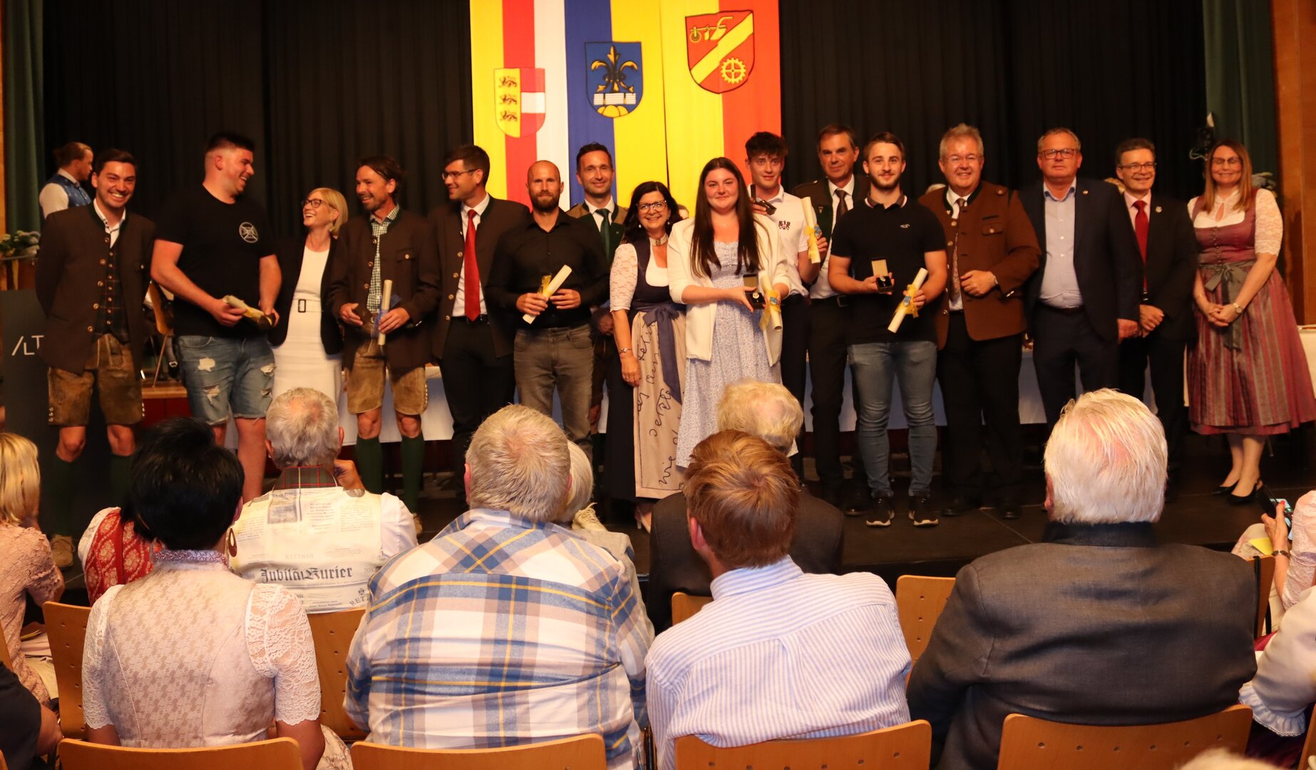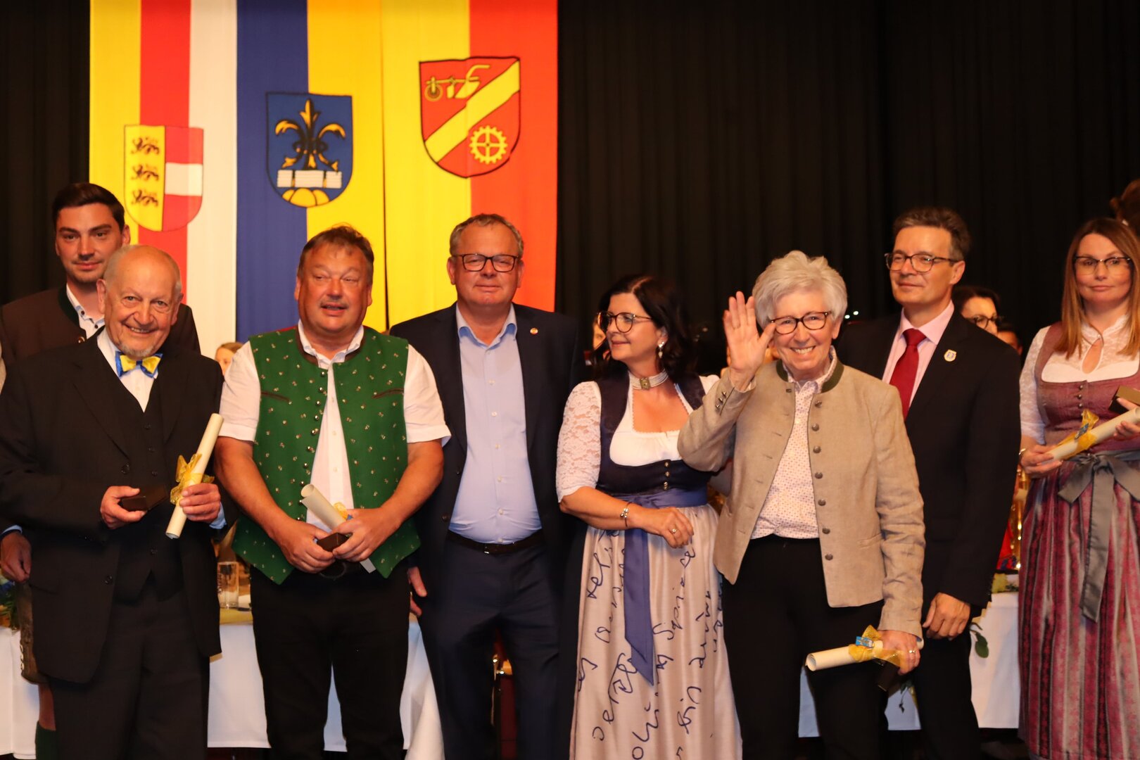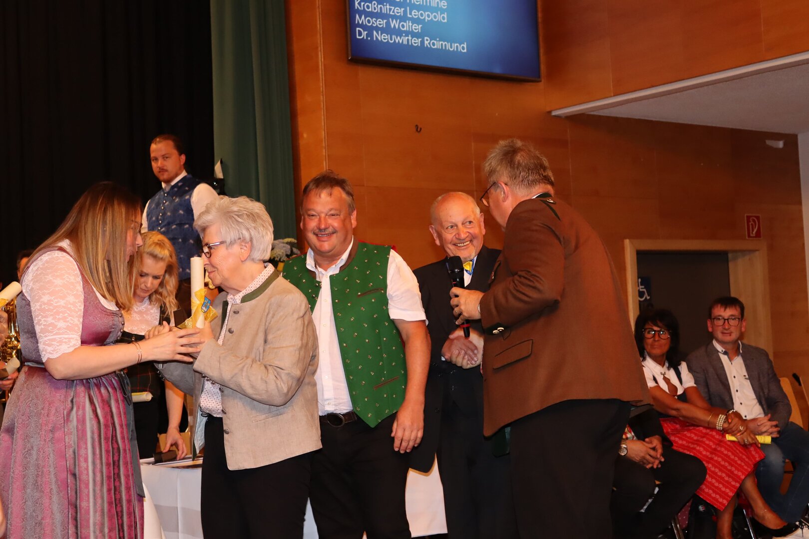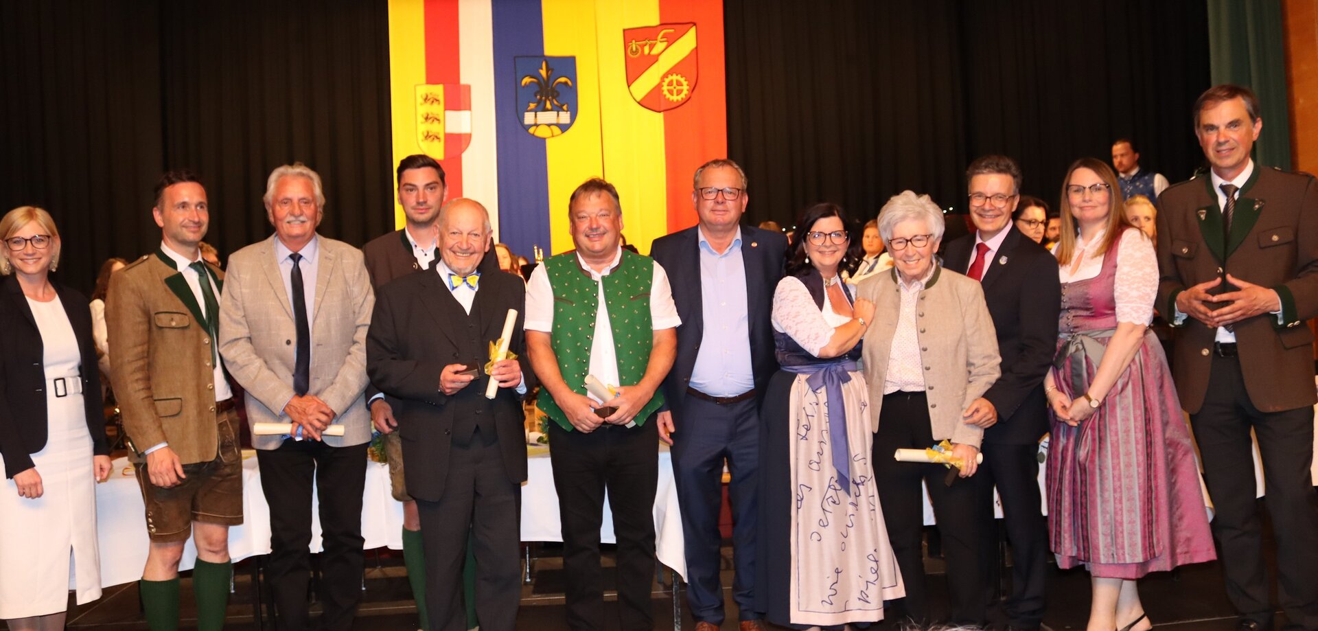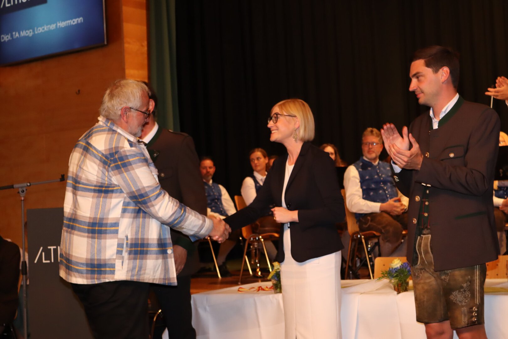 Vorne am Podium Platz genommen haben neben Bürgermeister Walter Zemrosser auch die Vize-Bürgermeister Doris Hofstätter und Michael Baumgartner, die Stadträte Philipp Strutz und Wolfgang Leitner, Gemeinderätin Corina Spendier sowie Stadtamtsleiter Hubert Madrian. Eröffnet wurde der Abend durch Bürgermeister Zemrosser, der auch die Moderation übernahm. Die Festrede hielt Alfred Ogris. Der damalige Landesarchiv-Direktor blickte in seiner Ansprache auf die Ereignisse 1993 zurück und gab einen Einblick in das heutige Althofen. Eine Grußbotschaft per Video übermittelte der Landeshauptmann von 1993, Christof Zernatto. Festansprachen hielten LH-Stv. Martin Gruber, NR Bgm. Klaus Köchl und Bezirkshauptfrau Claudia Egger-Grillitsch. Sie hoben in ihren Lobreden die Bedeutung der „Krappfeld-Metropole“ hervor. Martin Bernhard, Bürgermeister der Partnerstadt Tamm in Baden-Württemberg (Deutschland), überraschte mit der Ankündigung, dass es künftig in Tamm eine „Althofener Straße“ geben wird. Zudem würdigten die Fraktionssprecher Vize-Bürgermeisterin Doris Hofstätter, Stadtrat Wolfgang Leitner und Gemeinderätin Corina Spendier „ihre“ Stadt.
