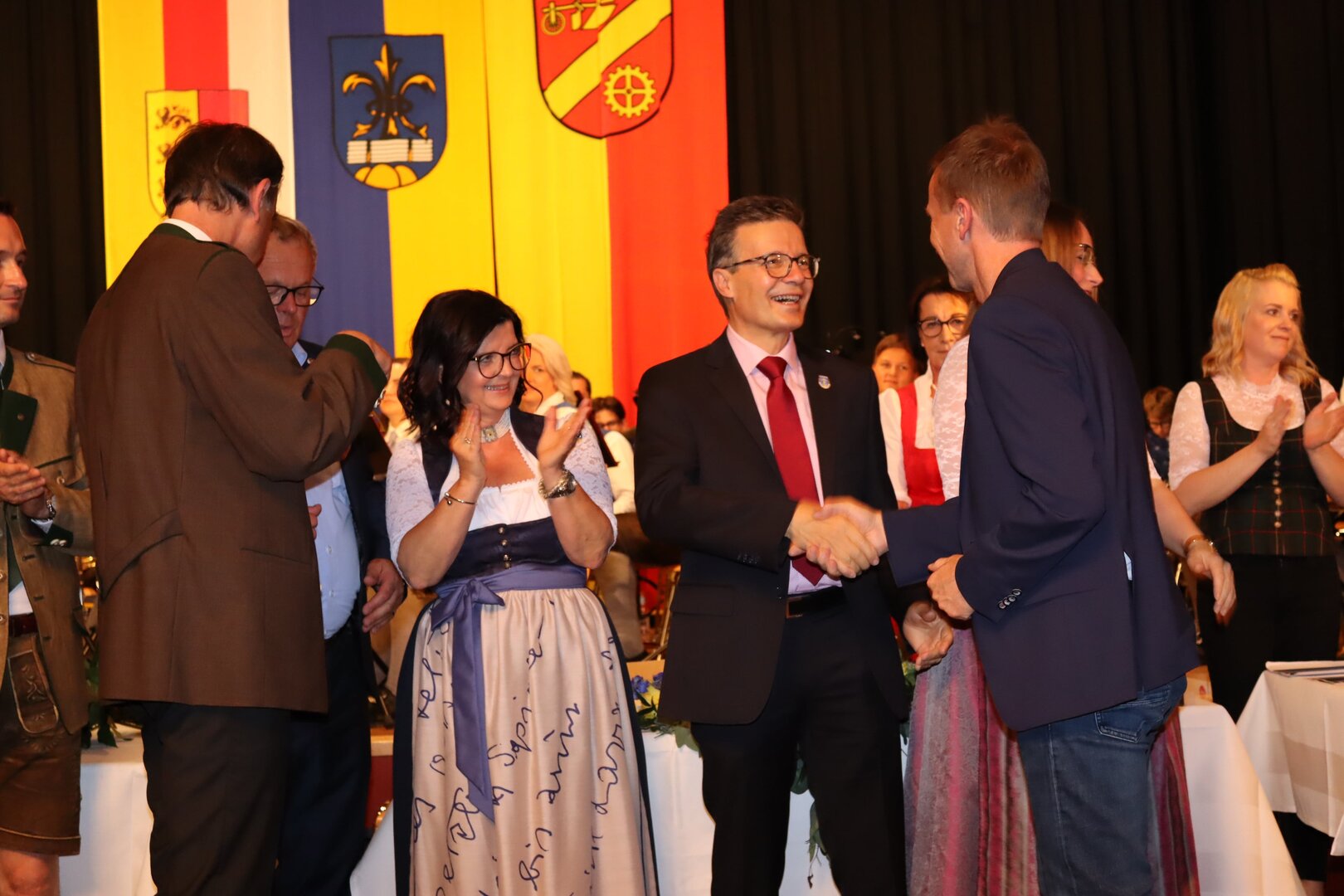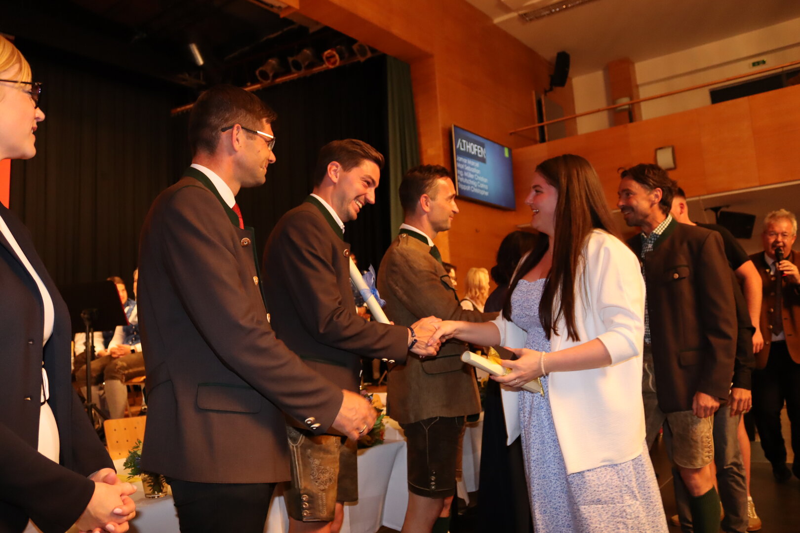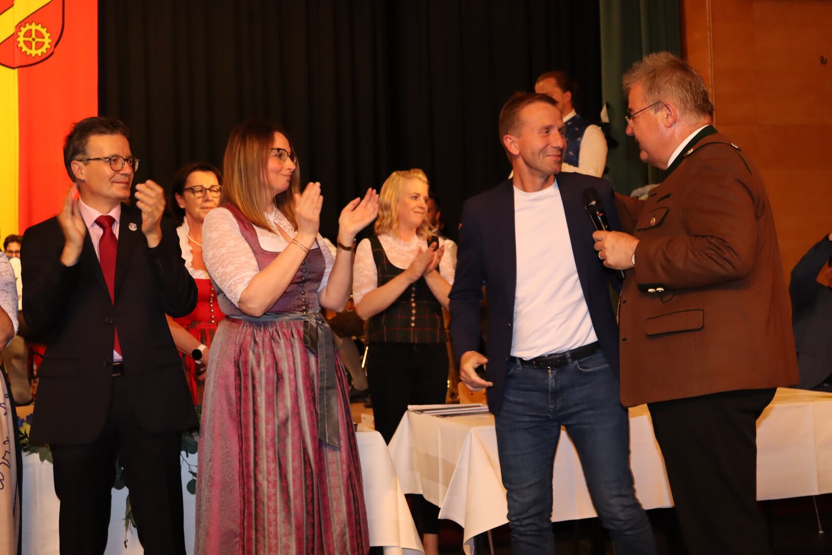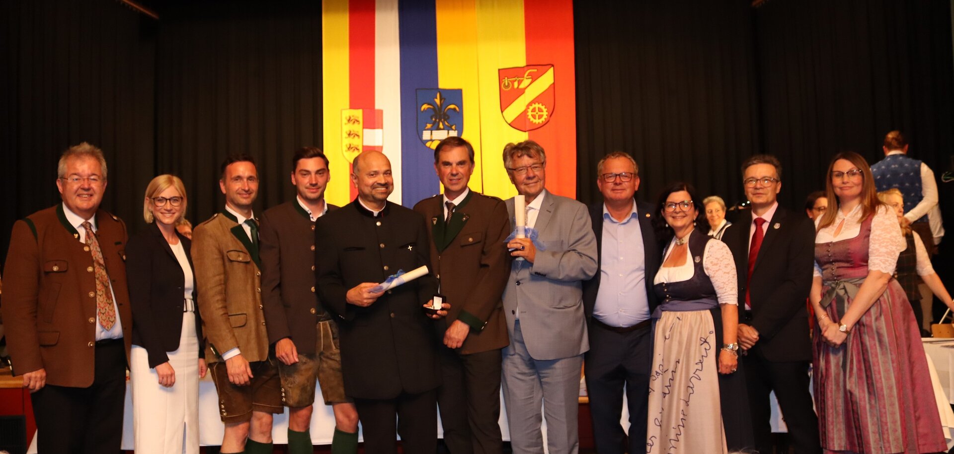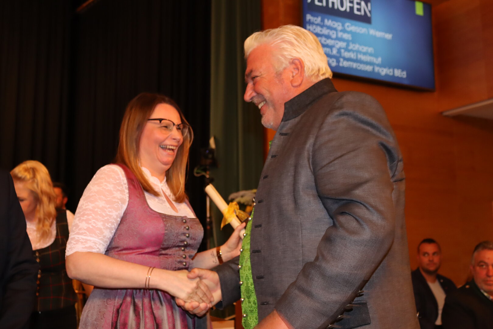 Vorne am Podium Platz genommen haben neben Bürgermeister Walter Zemrosser auch die Vize-Bürgermeister Doris Hofstätter und Michael Baumgartner, die Stadträte Philipp Strutz und Wolfgang Leitner, Gemeinderätin Corina Spendier sowie Stadtamtsleiter Hubert Madrian. Eröffnet wurde der Abend durch Bürgermeister Zemrosser, der auch die Moderation übernahm. Die Festrede hielt Alfred Ogris. Der damalige Landesarchiv-Direktor blickte in seiner Ansprache auf die Ereignisse 1993 zurück und gab einen Einblick in das heutige Althofen. Eine Grußbotschaft per Video übermittelte der Landeshauptmann von 1993, Christof Zernatto. Festansprachen hielten LH-Stv. Martin Gruber, NR Bgm. Klaus Köchl und Bezirkshauptfrau Claudia Egger-Grillitsch. Sie hoben in ihren Lobreden die Bedeutung der „Krappfeld-Metropole“ hervor. Martin Bernhard, Bürgermeister der Partnerstadt Tamm in Baden-Württemberg (Deutschland), überraschte mit der Ankündigung, dass es künftig in Tamm eine „Althofener Straße“ geben wird. Zudem würdigten die Fraktionssprecher Vize-Bürgermeisterin Doris Hofstätter, Stadtrat Wolfgang Leitner und Gemeinderätin Corina Spendier „ihre“ Stadt.